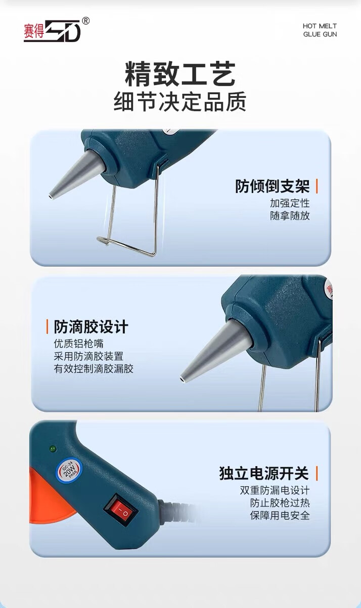 Saide Hot Melt Glue Gun Manual DIY Hot Melt Glue Gun 7mm Glue Strip Glue Stick Industrial Grade Hot Melt Gun Douyin Same as 20w Saide Small Glue Gun Random Color