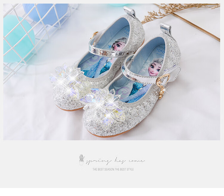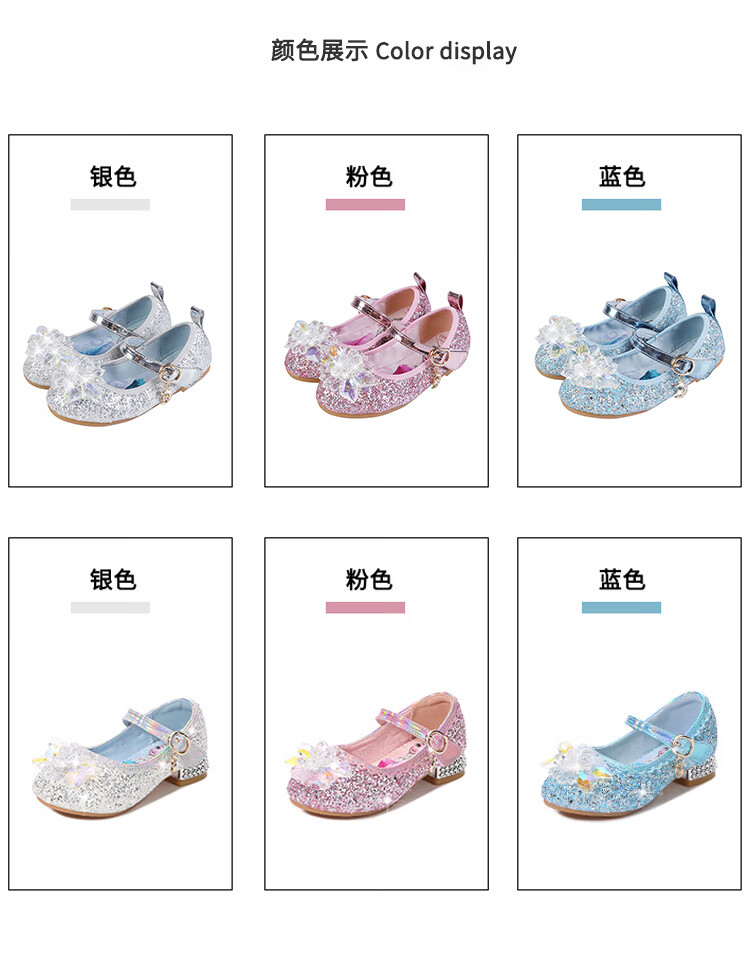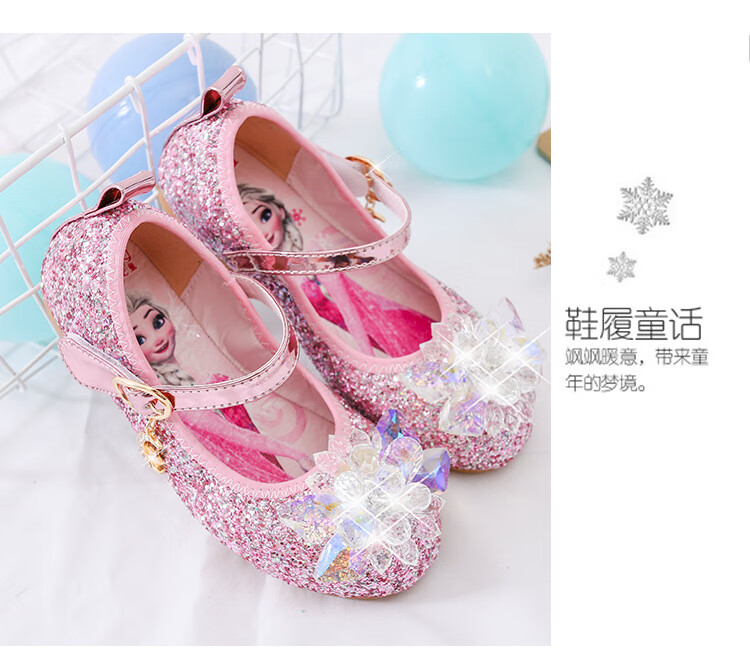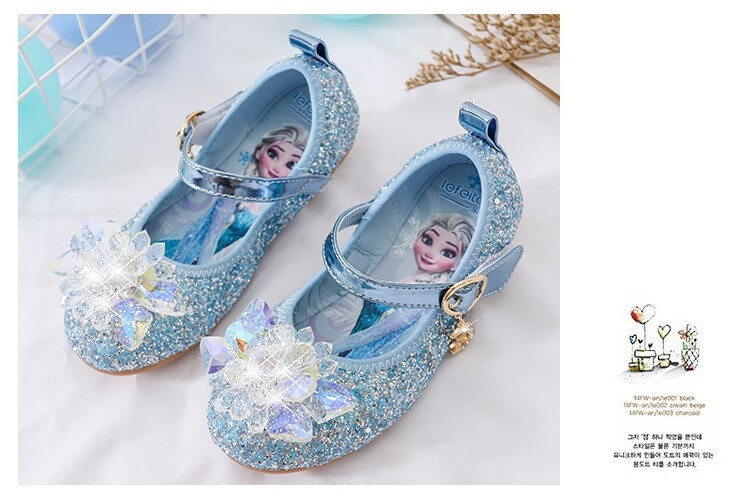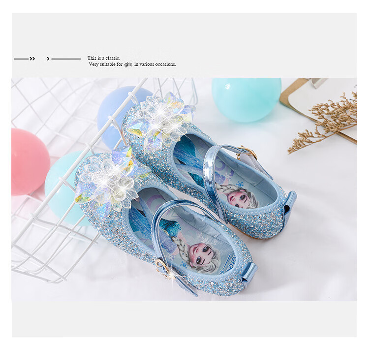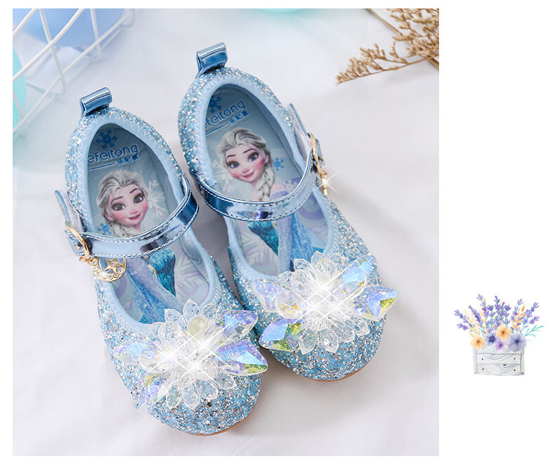 Mei Yi Tong 2025 New Autumn Elsa Princess Shoes Children's Shoes Blue High Heels Girls Baby Children Girls Water Flat Bottom Crystal-Blue Size 29 Inner Length 18CM