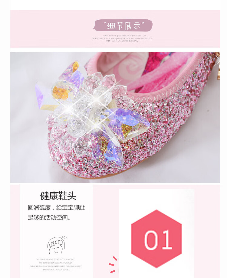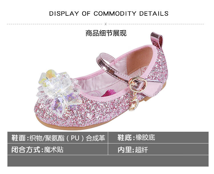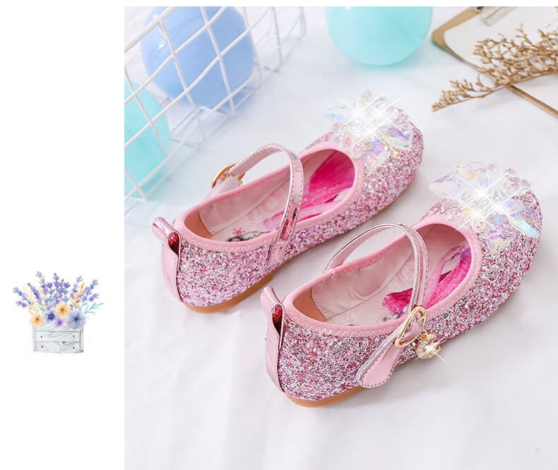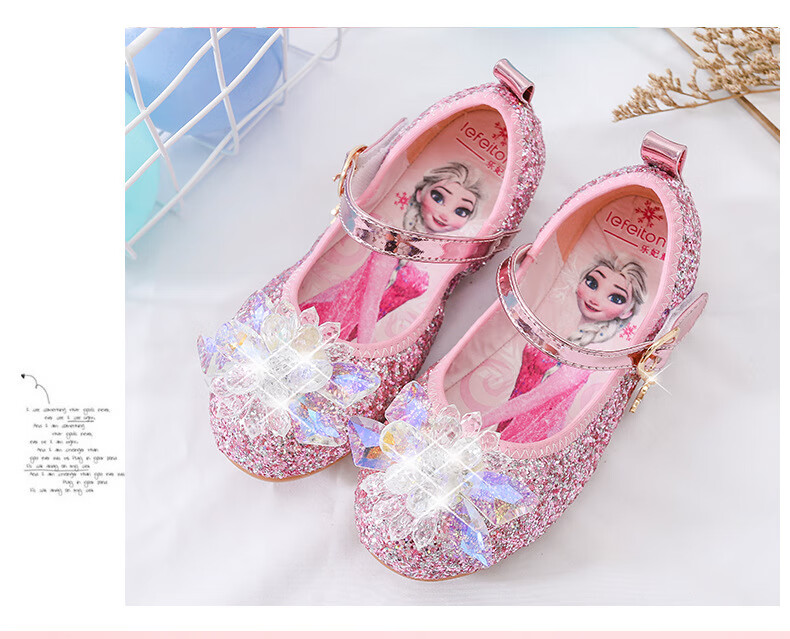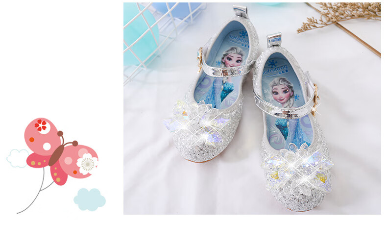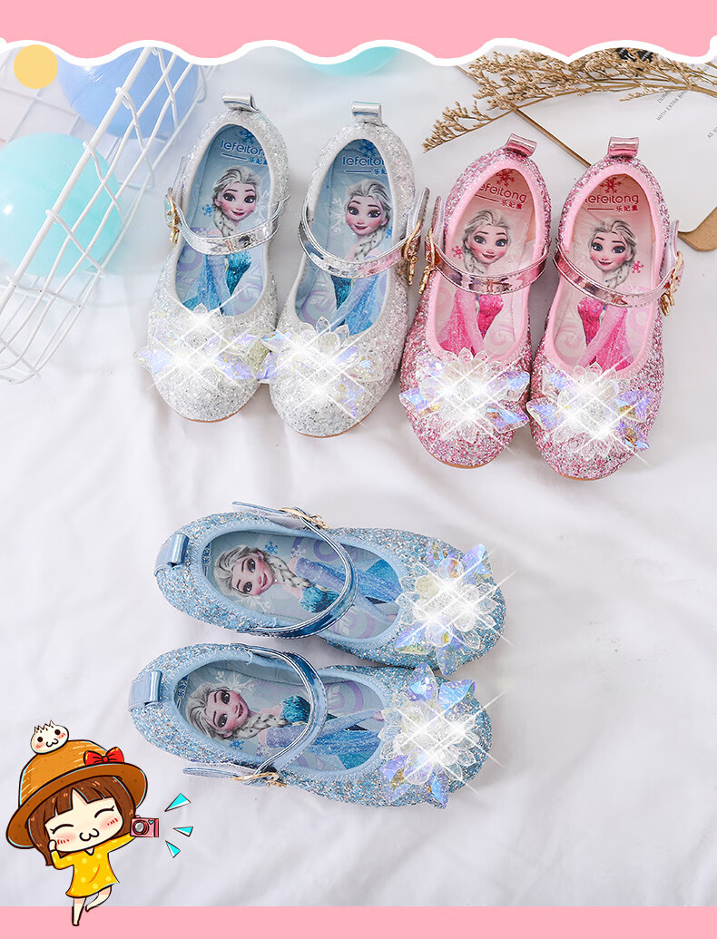 Mei Yi Tong 2025 New Autumn Elsa Princess Shoes Children's Shoes Blue High Heels Girls Baby Children Girls Water Flat Bottom Crystal-Blue Size 29 Inner Length 18CM