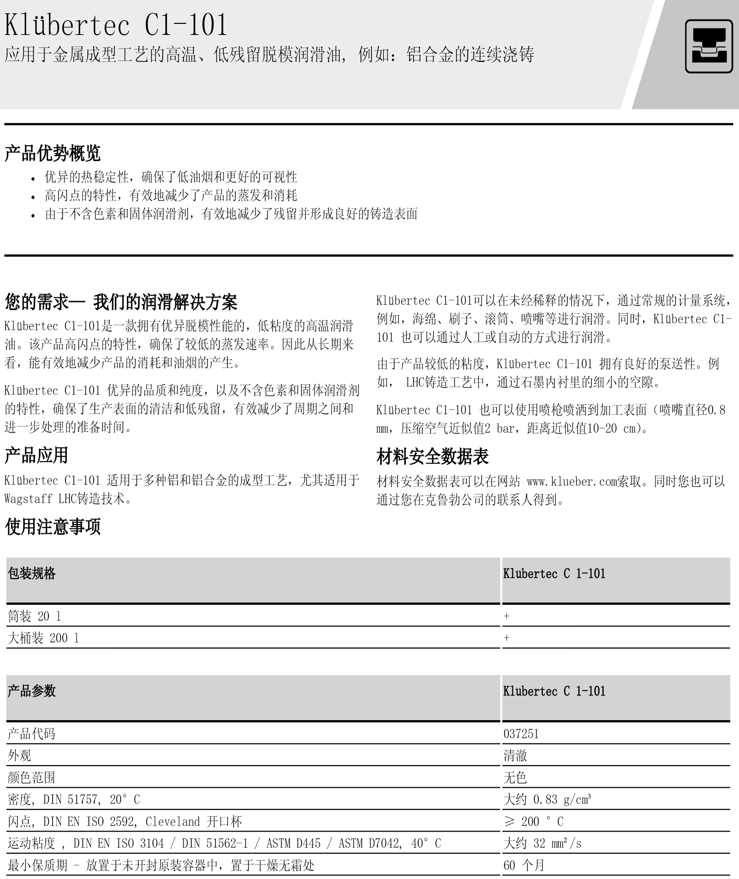 Kluber KlubertecC1-101 9R100 assembly oil low residue release metal release agent lubricant Klbertec ST 4-702 (25KG)