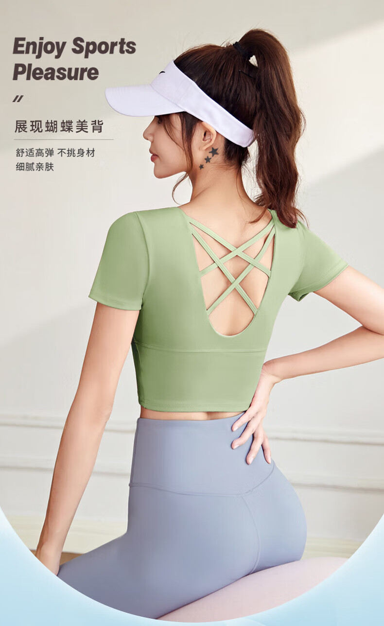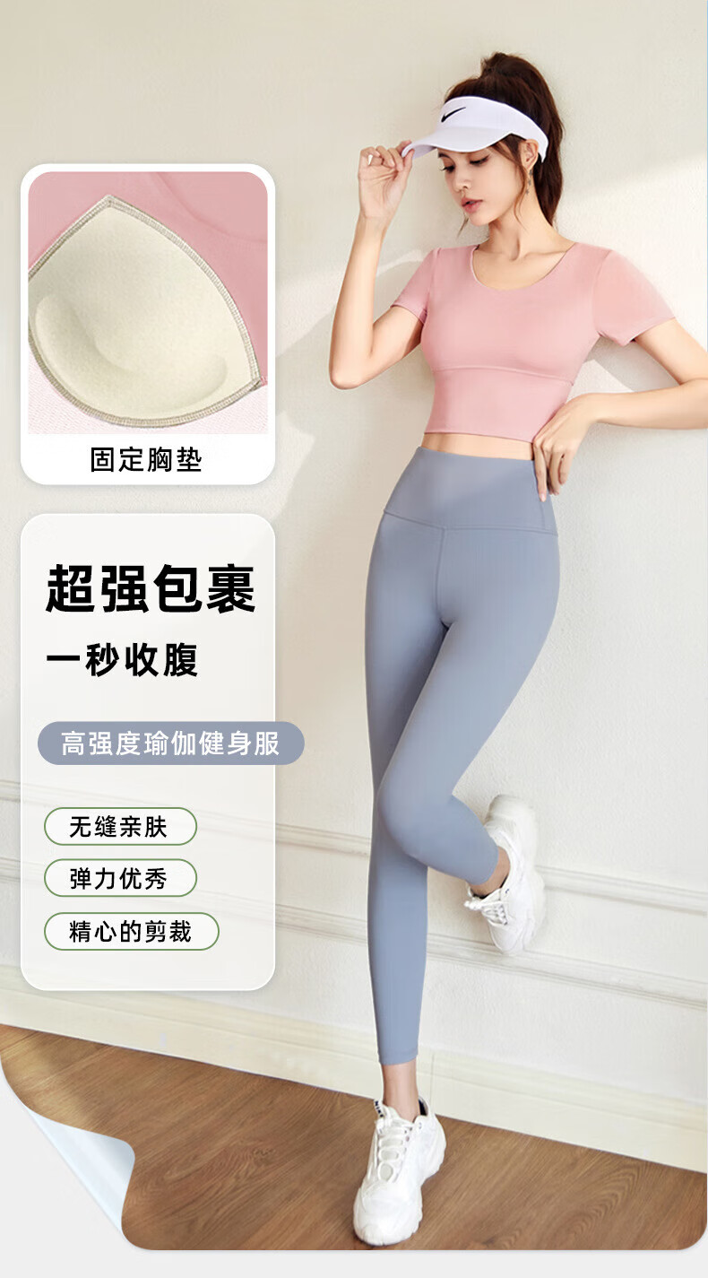 LULUUVTTOH yoga suit for women with slim back, running sports, nude fitness, Pilates training clothes, quick-drying tight dance clothes, Barbie pink top + star black trousers M (95-105Jin Jin is equal to 0.5kg)