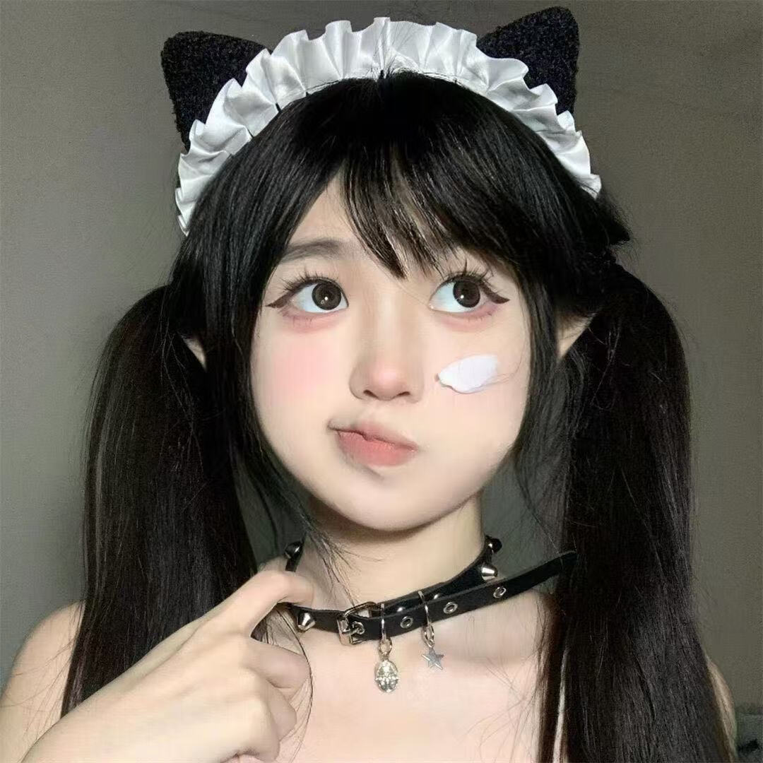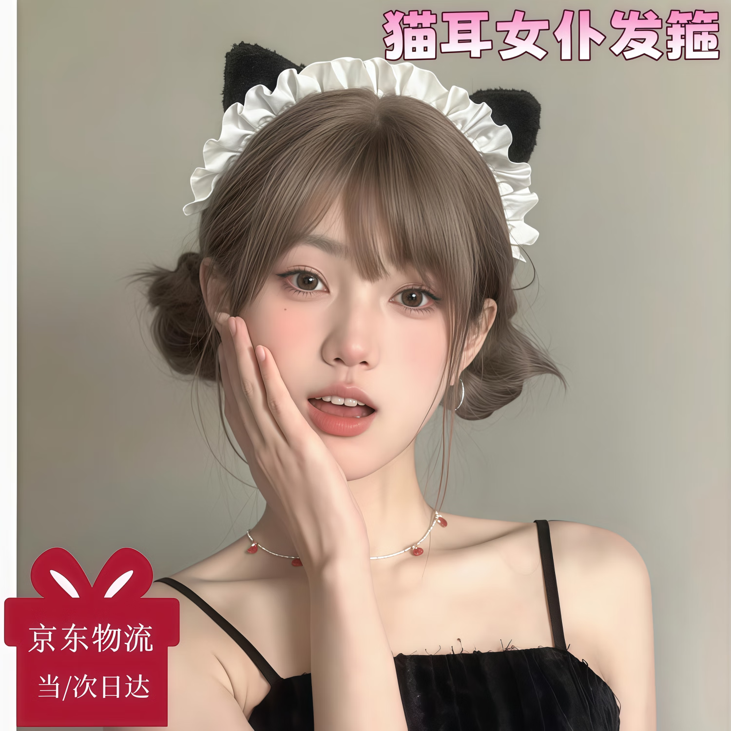 SNQP cat maid headband double-sided Lolita cute hair accessories Lolita catwoman kc accessories girl cat ear headband lace bell collar black 1 piece circumference 31-40cm