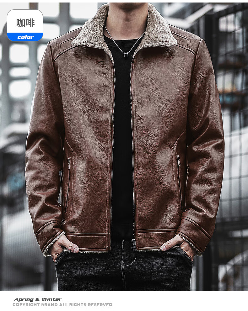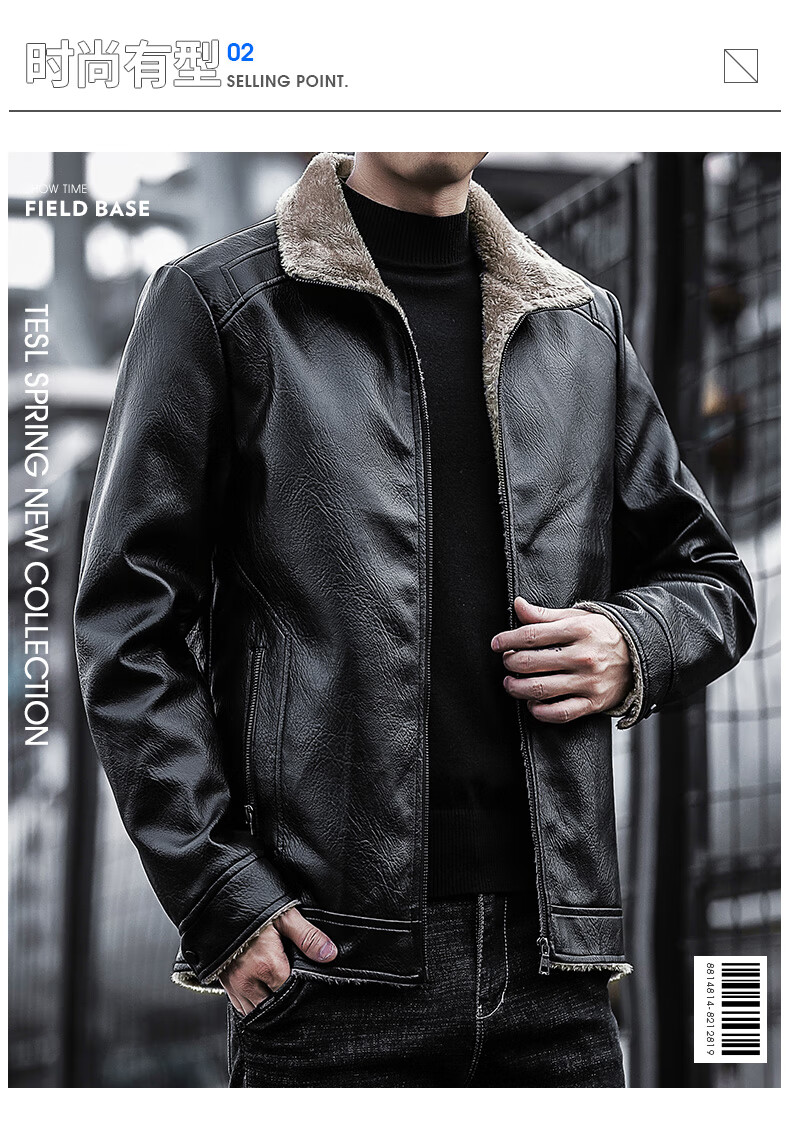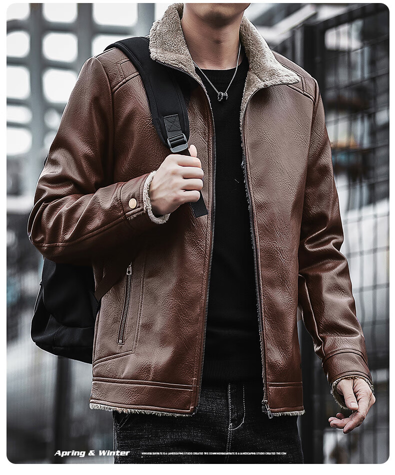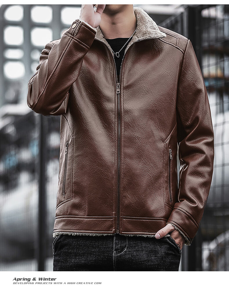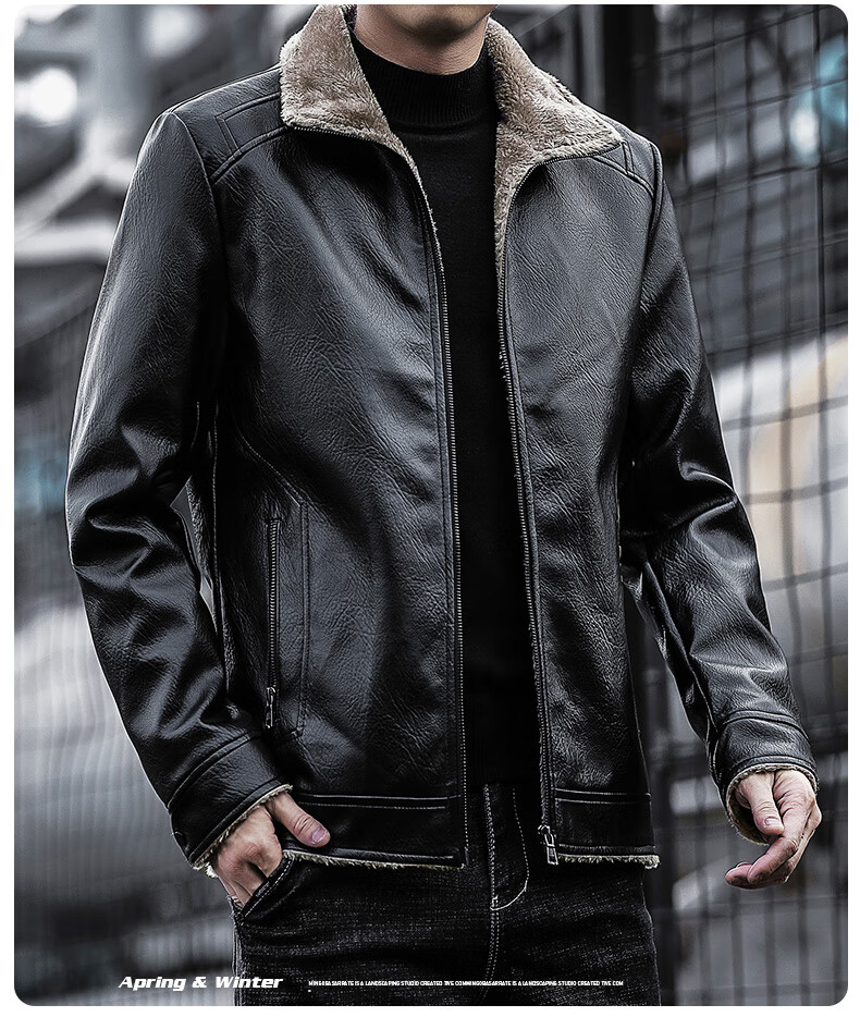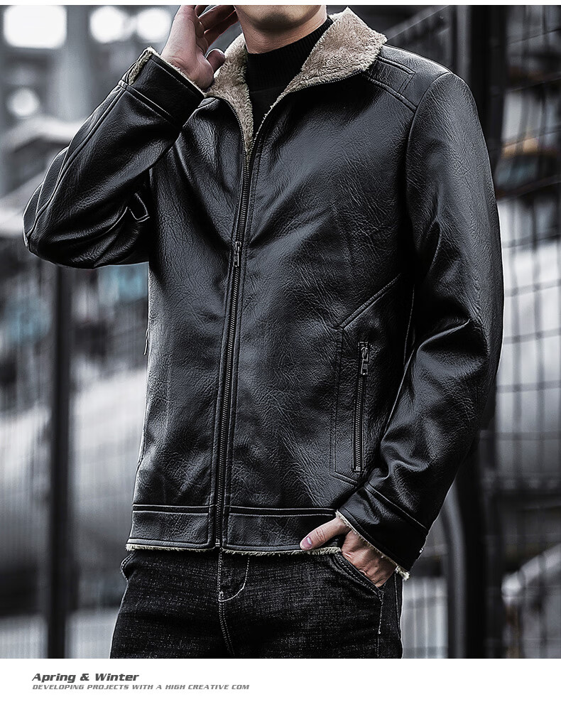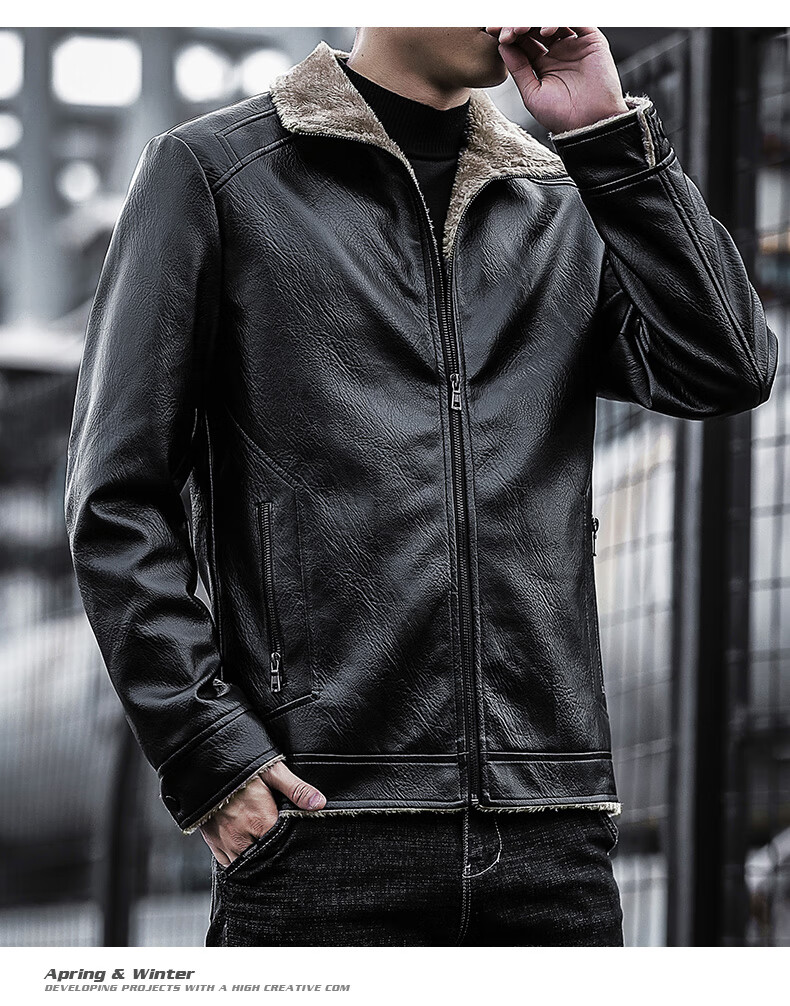 JEEP SPIRIT Jeep Leather Jacket Men's Autumn and Winter Leather Jacket Motorcycle Leather Retro Harley Motorcycle Riding Suit Pilot Black 2XL