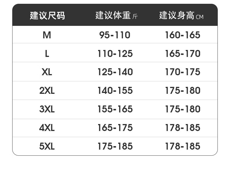 China (cm) 165 / 88-90 170 / 96-98 175 / 108-110 180 / 118-122 185 / 126-130