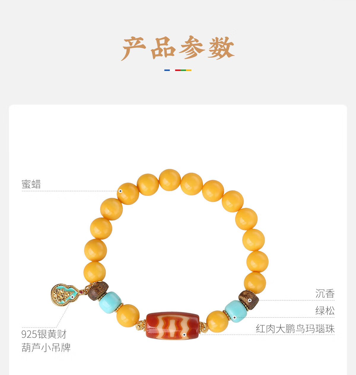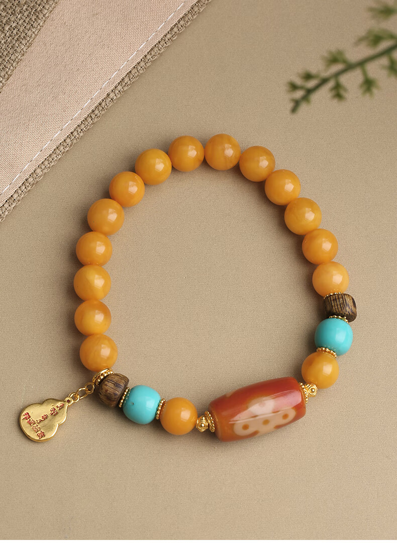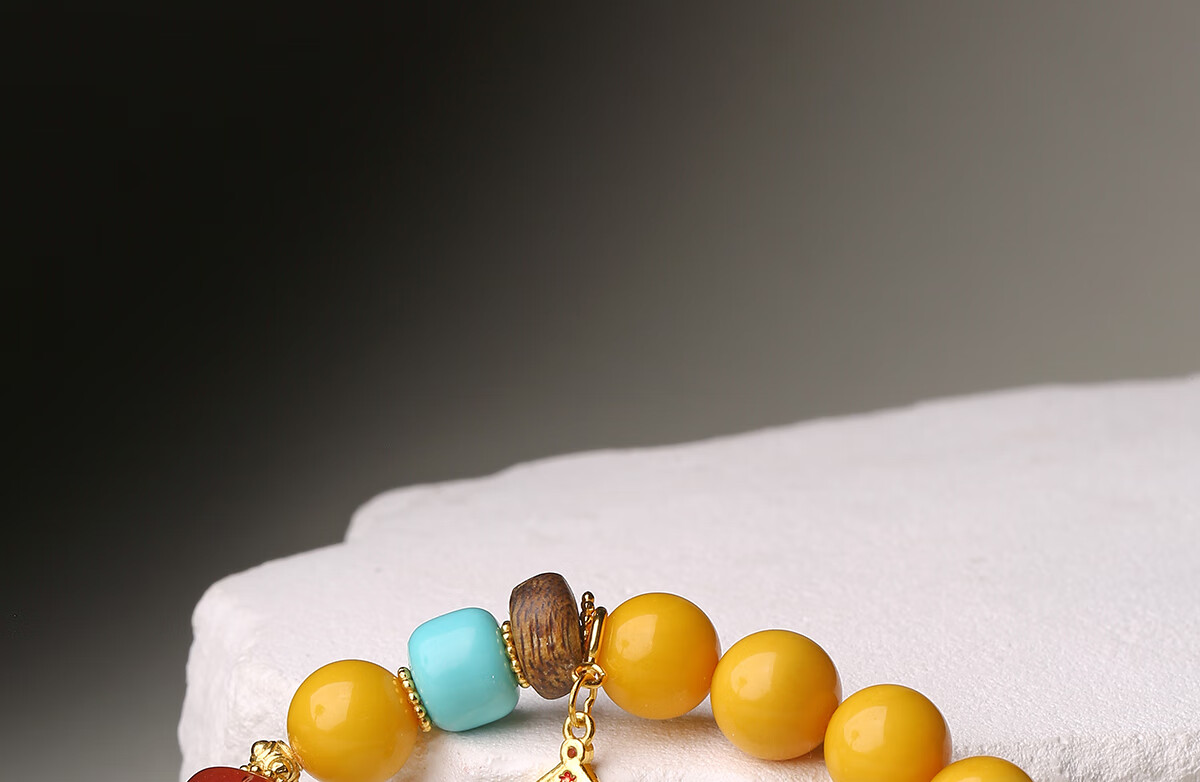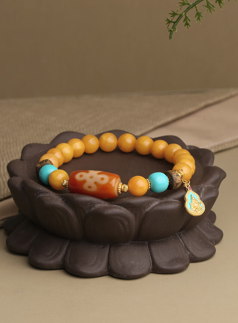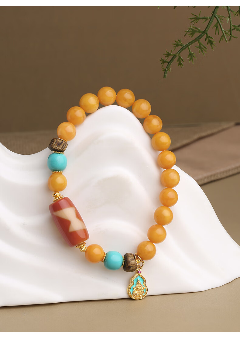 Potala Palace Beeswax Red Flesh Dzi Bead Bracelet Green Pine Agarwood 925 Silver Yellow Wealth Amber Bracelet for Men and Women as a Gift for Boyfriend Beeswax Red Flesh Agate Bead Bracelet