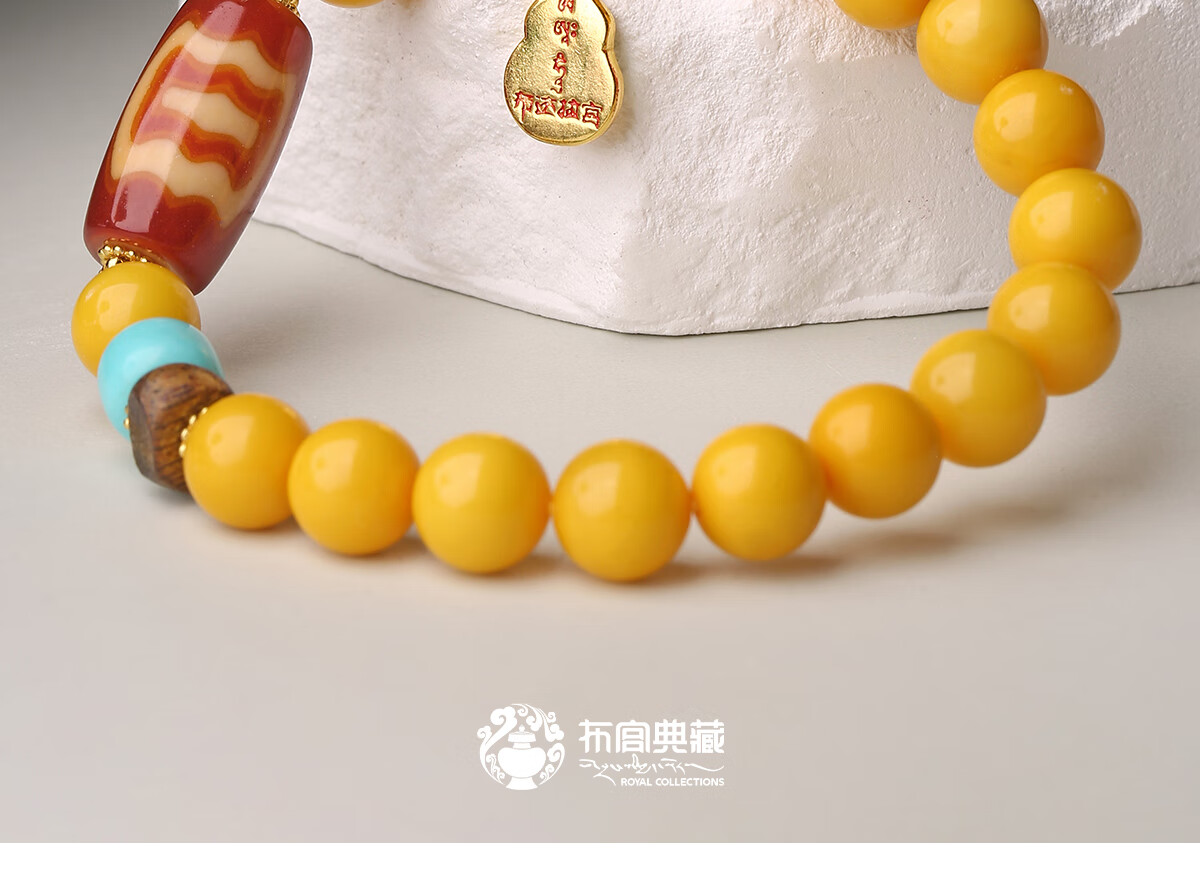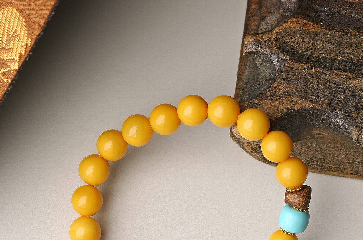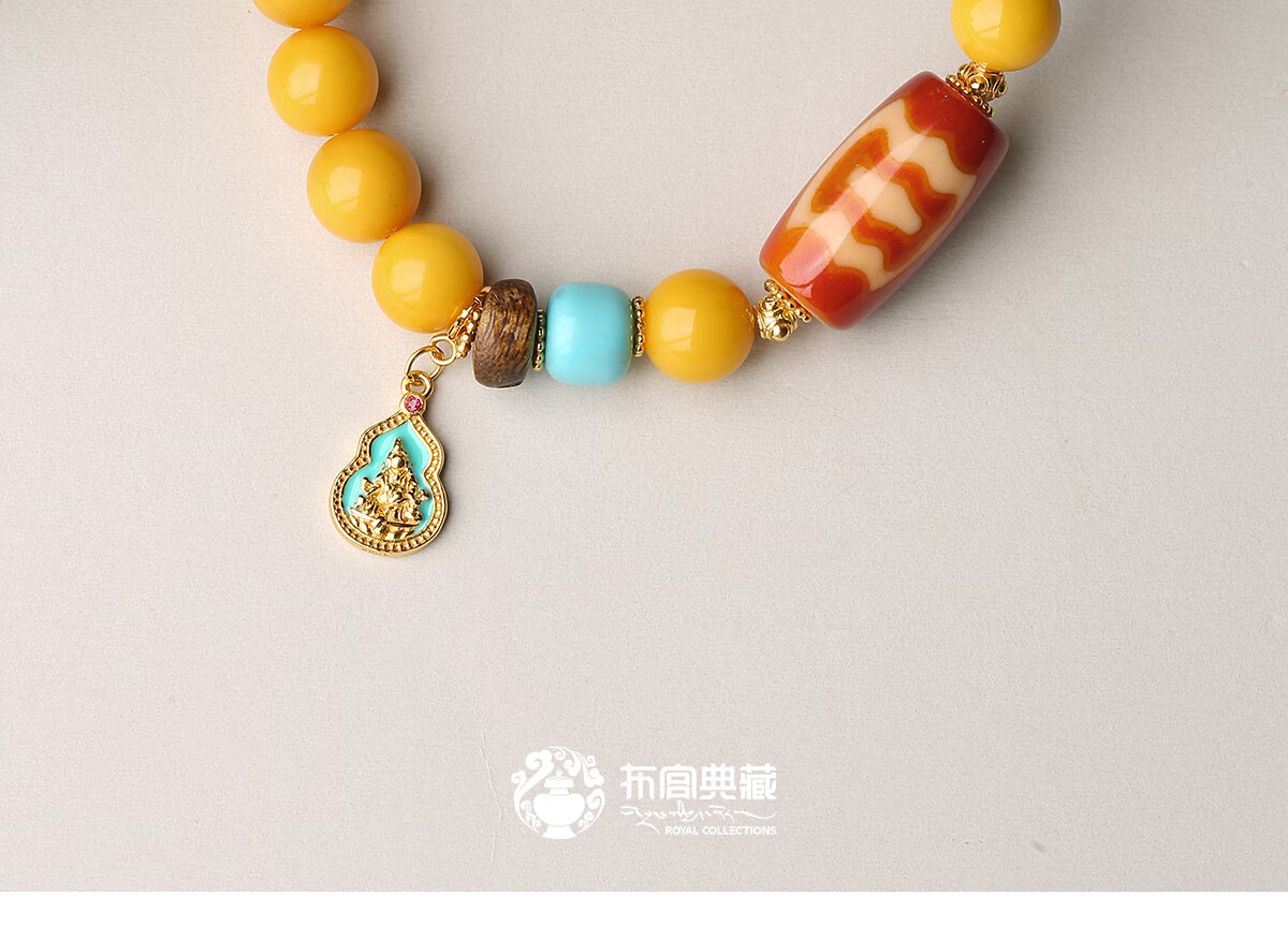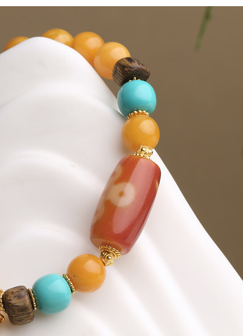 Potala Palace Beeswax Red Flesh Dzi Bead Bracelet Green Pine Agarwood 925 Silver Yellow Wealth Amber Bracelet for Men and Women as a Gift for Boyfriend Beeswax Red Flesh Agate Bead Bracelet