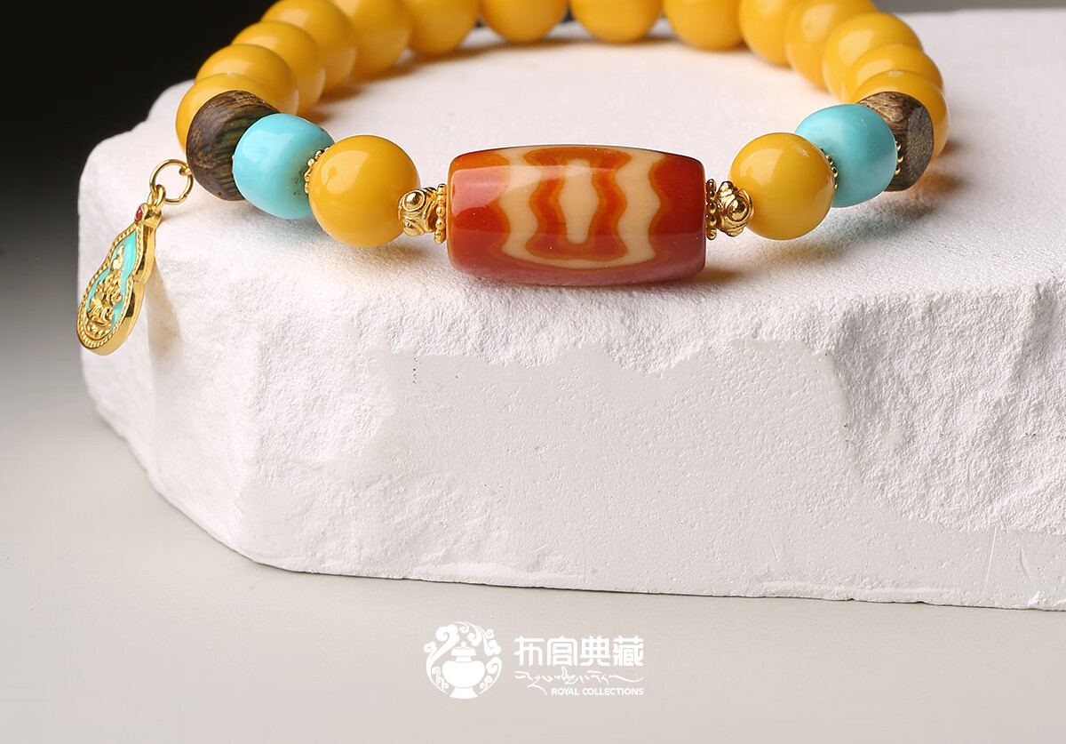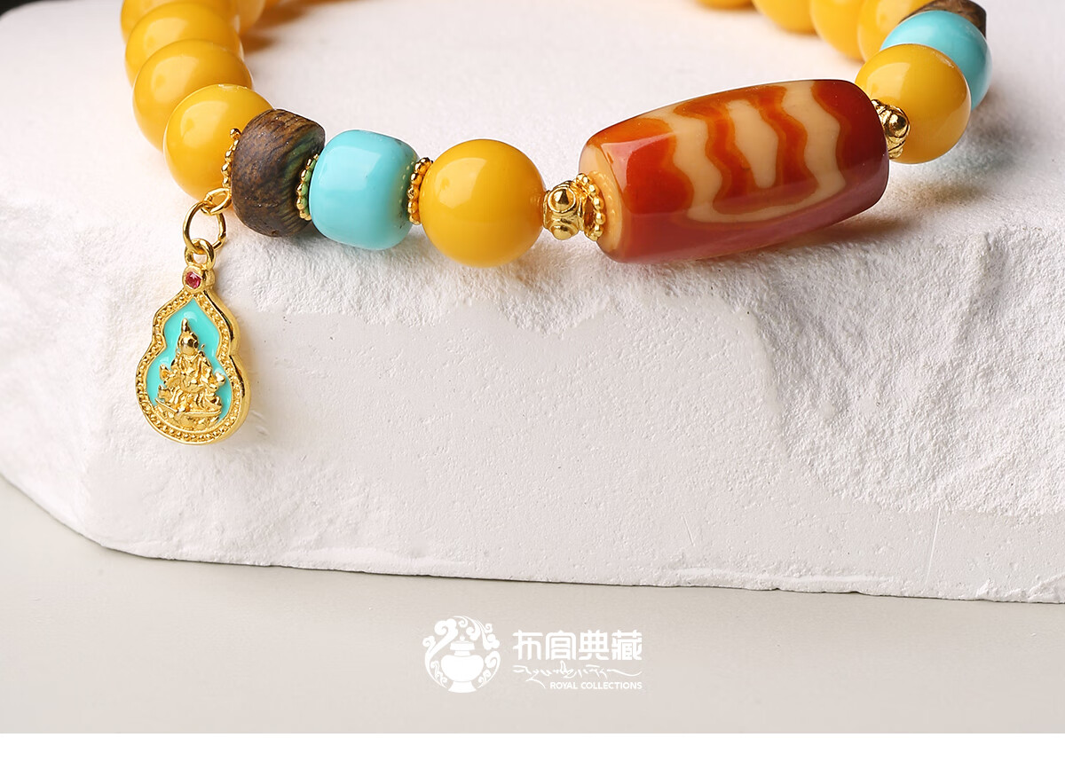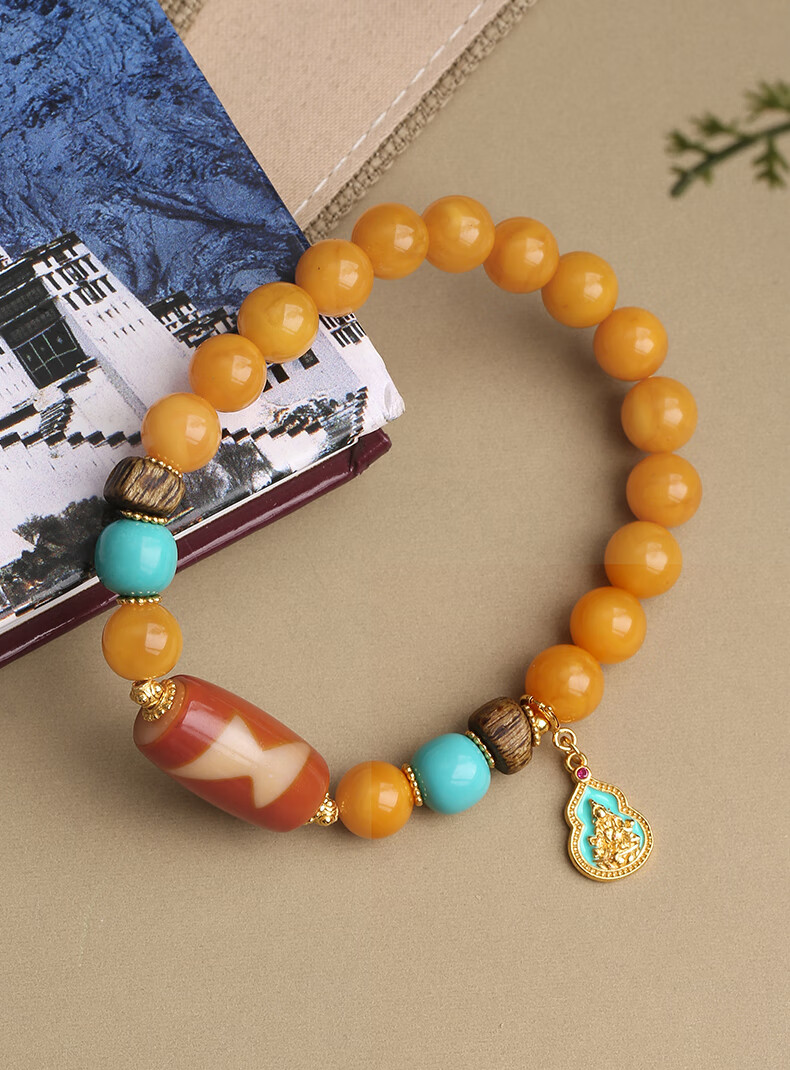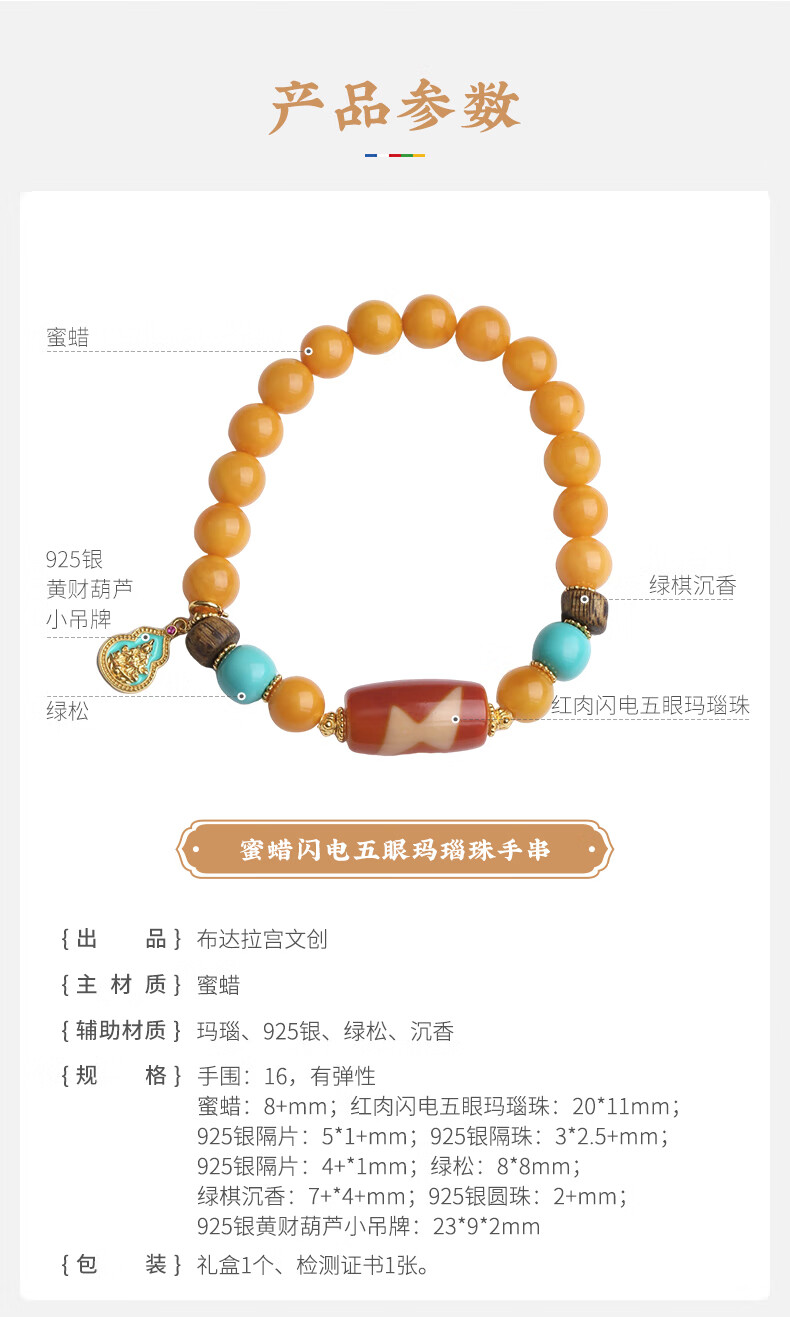 Potala Palace Beeswax Red Flesh Dzi Bead Bracelet Green Pine Agarwood 925 Silver Yellow Wealth Amber Bracelet for Men and Women as a Gift for Boyfriend Beeswax Red Flesh Agate Bead Bracelet