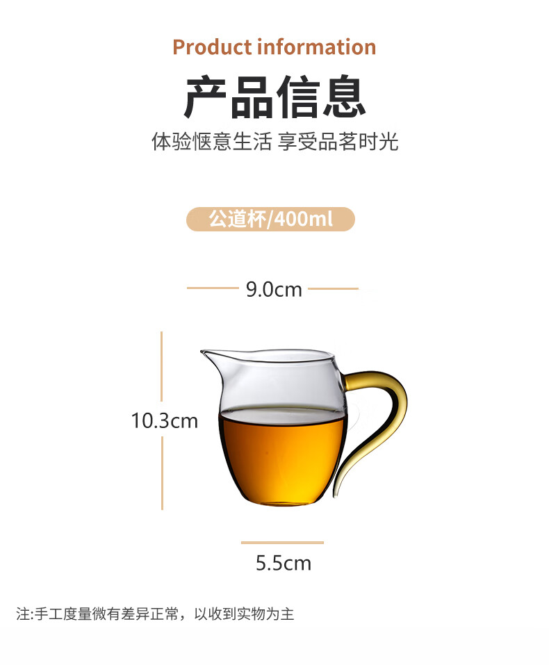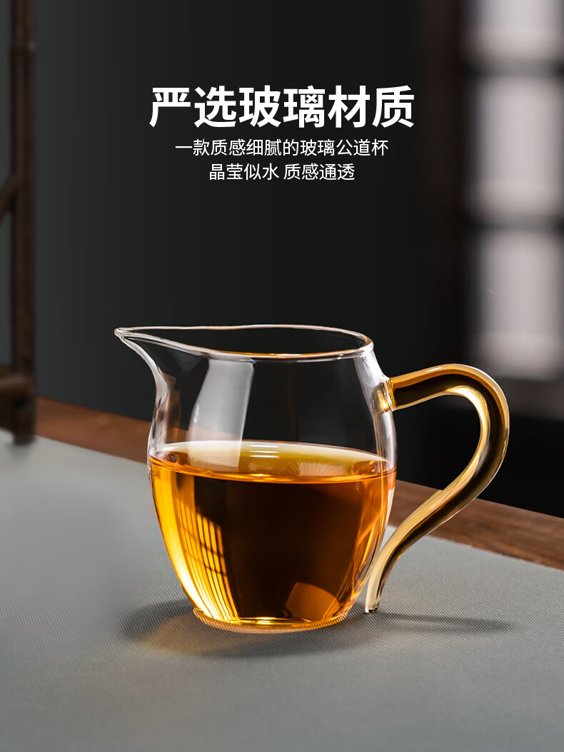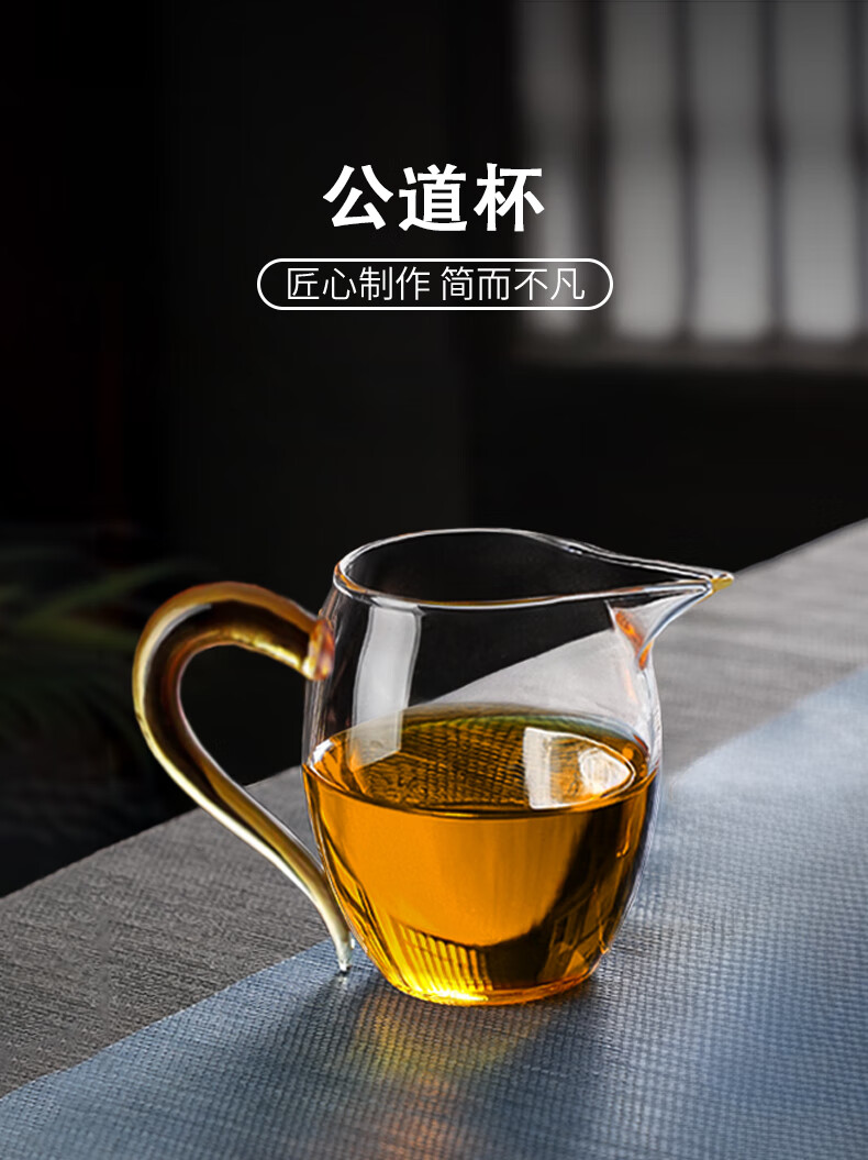 Gaoming Japanese-style fair cup thickened high borosilicate glass high temperature resistant tea divider simple transparent tea sea single tea set accessories gold handle-Linglong male cup