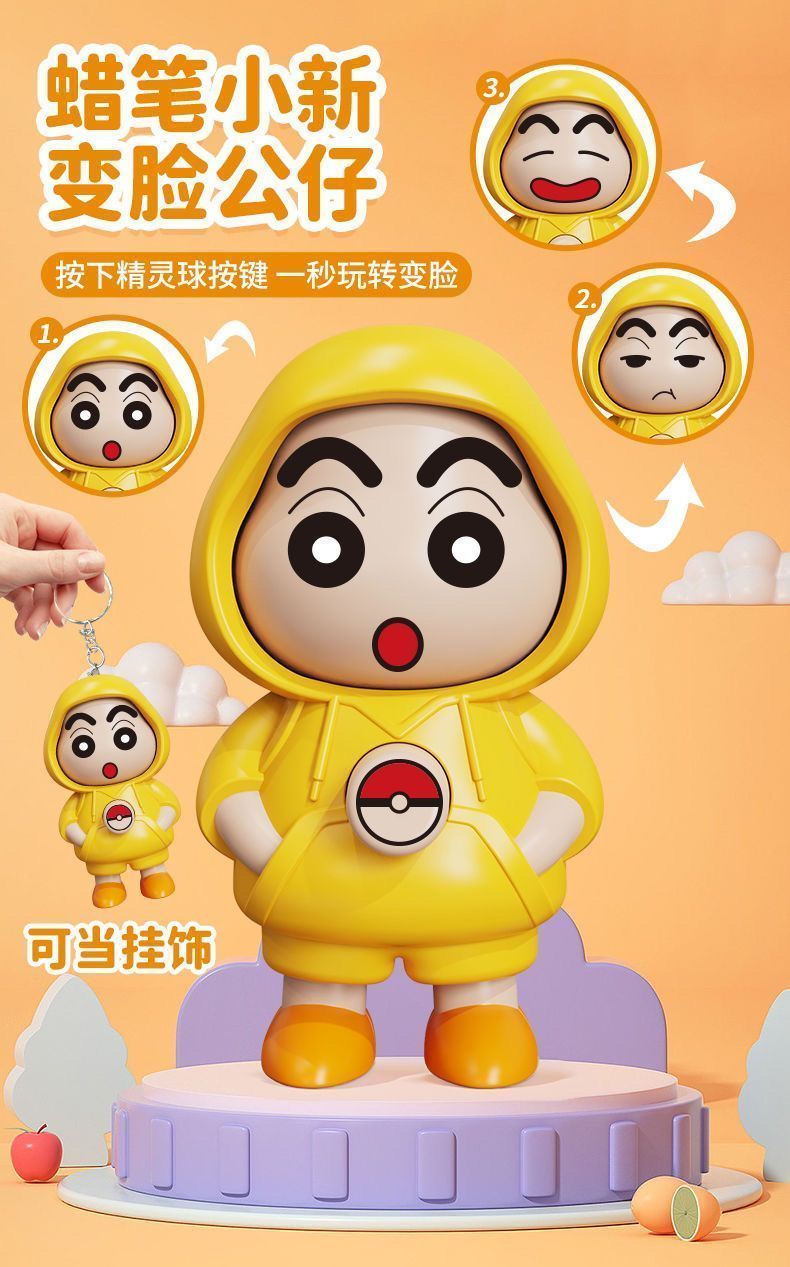 New Crayon Shin-chan stand-alone face-changing Pikachu transformation toy trendy cartoon doll gift keychain ornament Crayon Shin-chan face-changing one pack