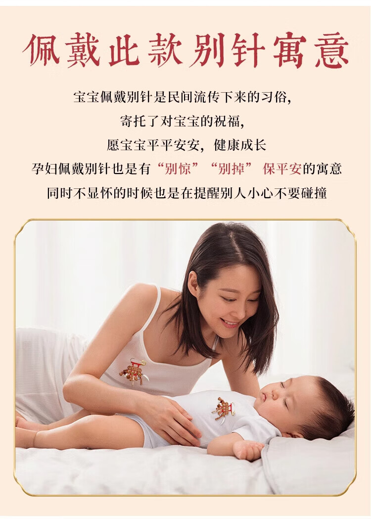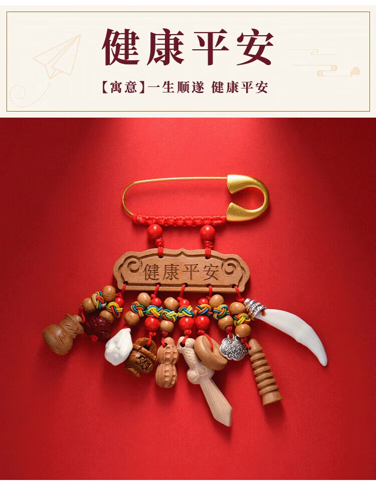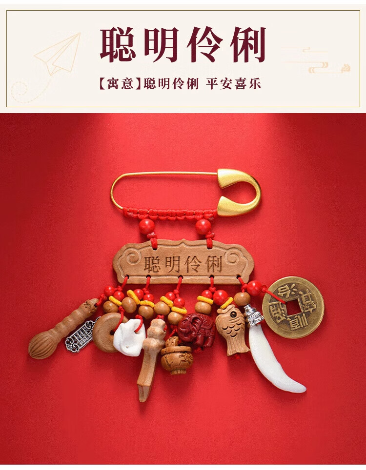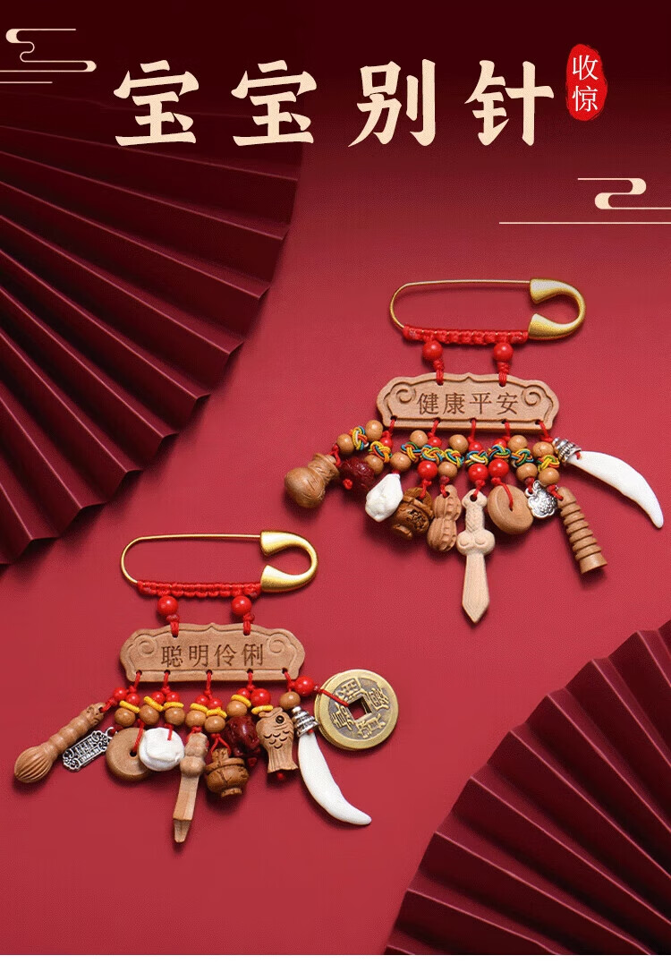 Putuo Mountain Straight Hair Baby Pin Baby Peach Wood Sword Children's Protective Suppression and Anti-frightening Cinnabar Pendant Baby Shockproof Pin Healthy and Safe Style
