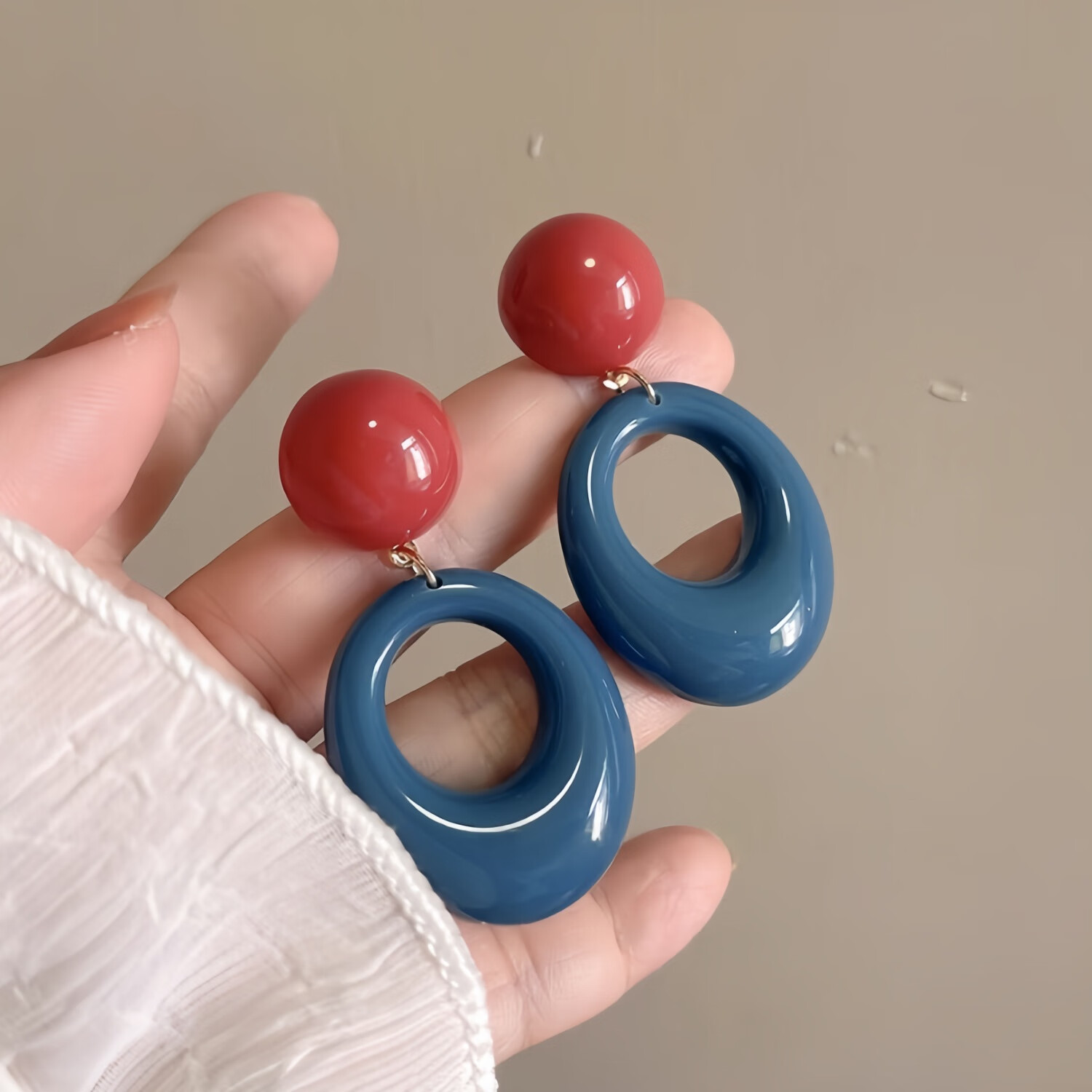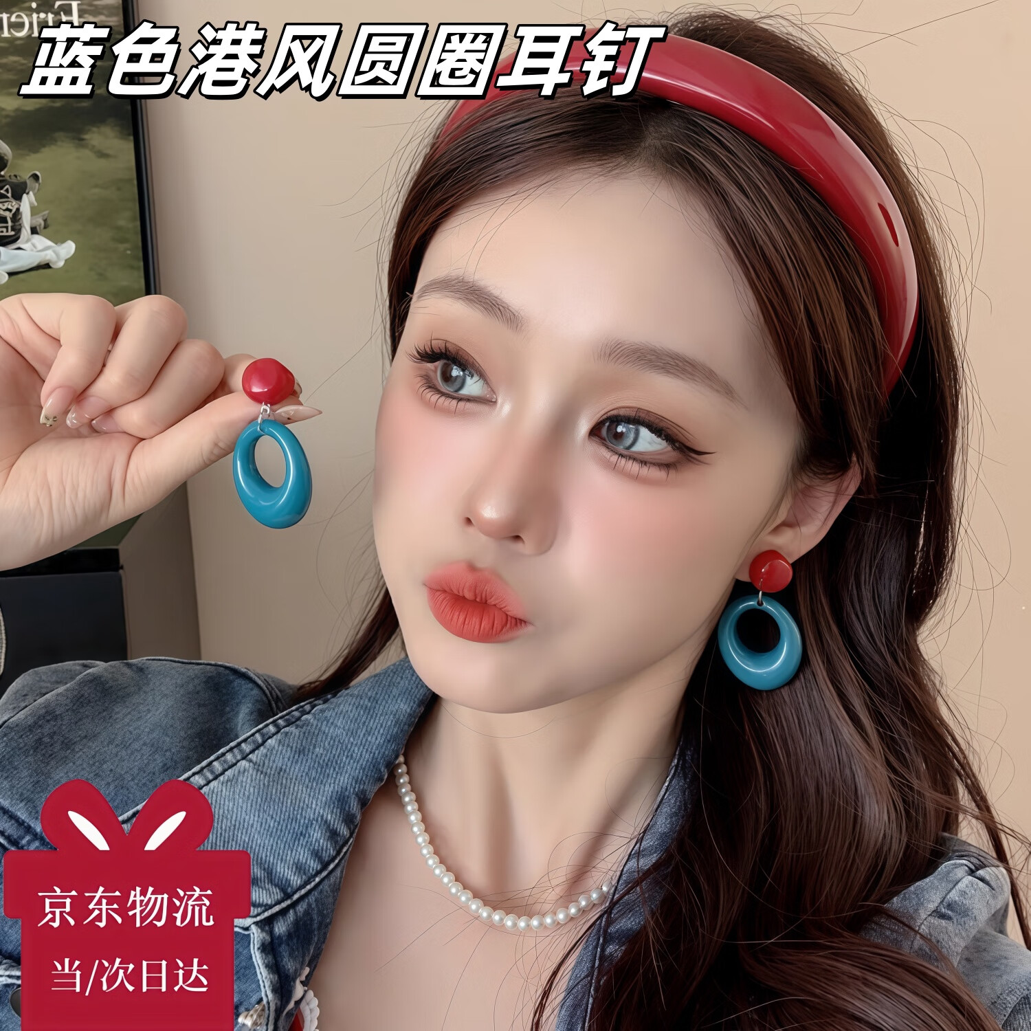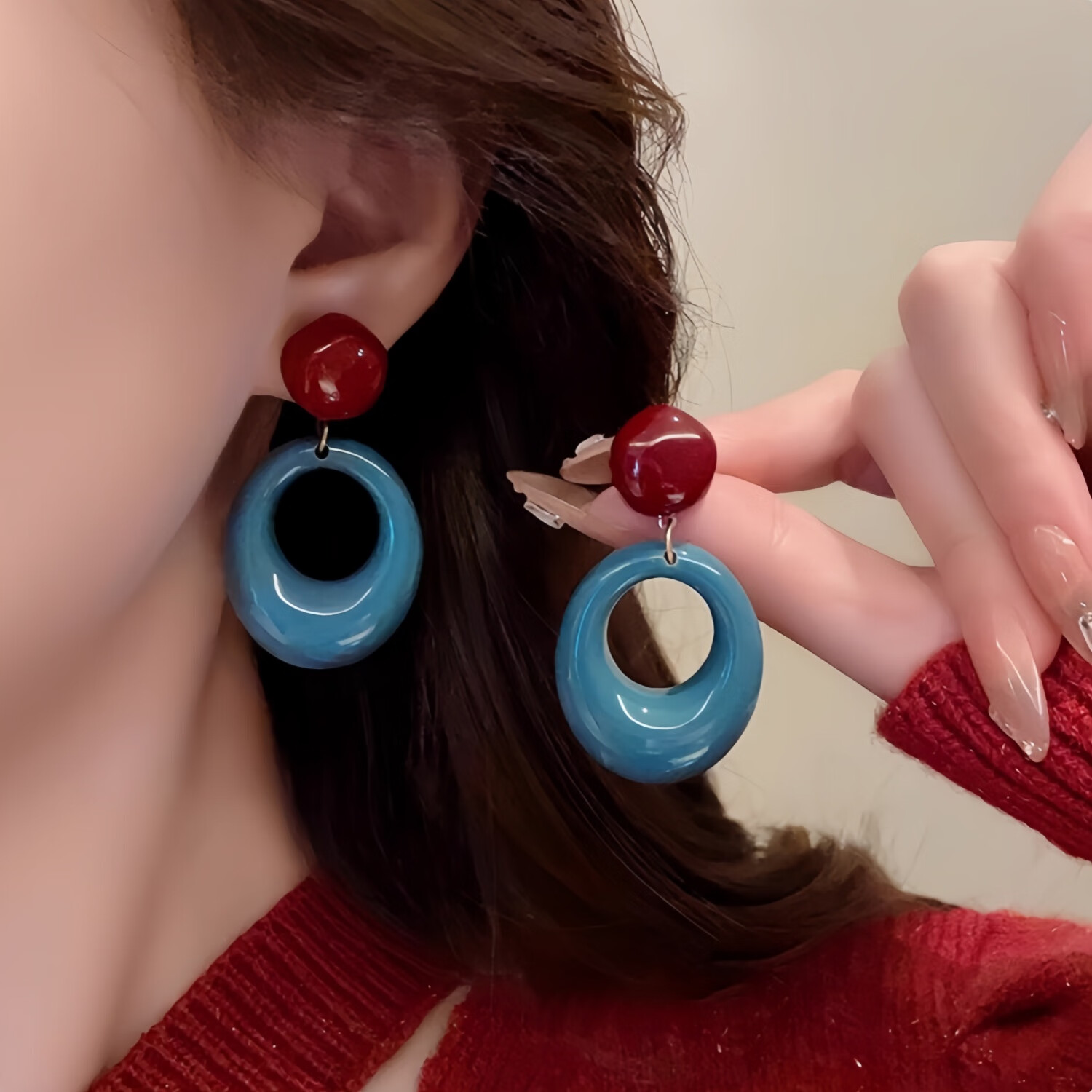 SNQP seaside Hong Kong style blue earrings for women dopamine holiday style earrings niche design retro exaggerated ear clip earrings 1 pair of leopard print hoop earrings about 4cm