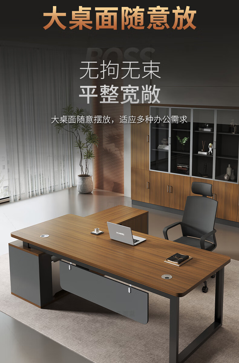 Qujia office desk boss desk and chair combination simple modern office furniture executive desk president desk manager desk executive desk including side cabinet 1.2*0.6 meter boss desk