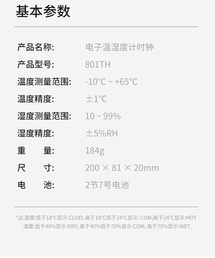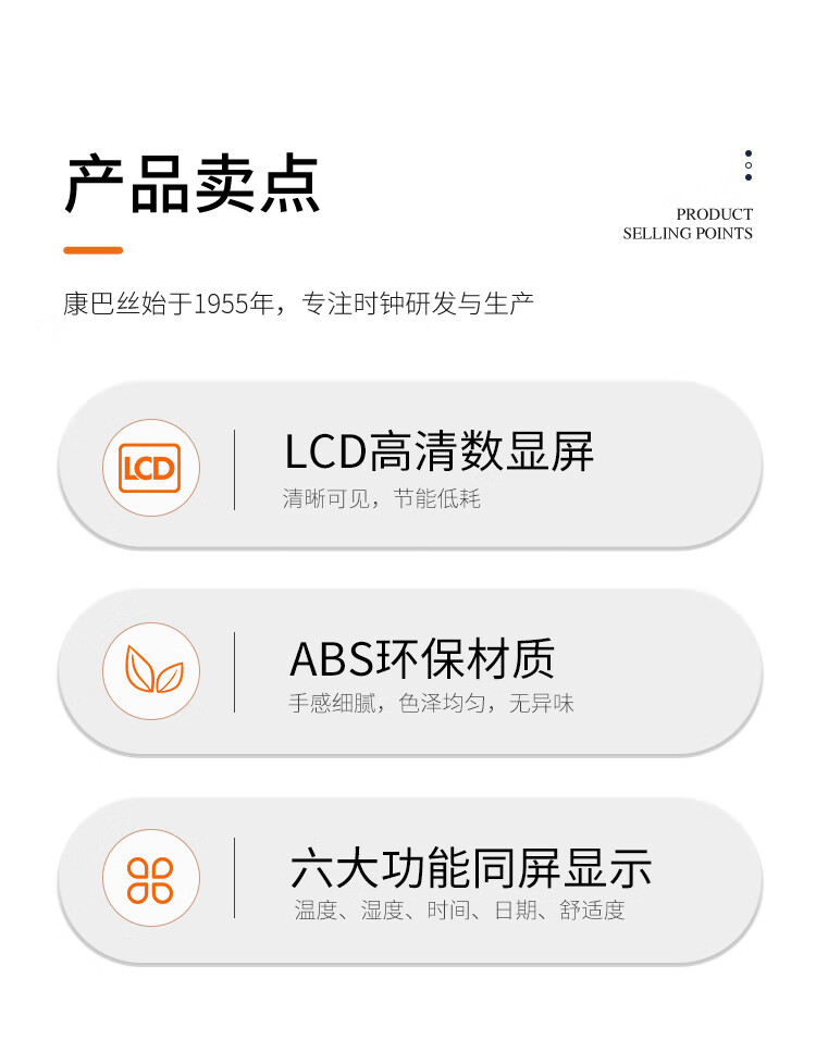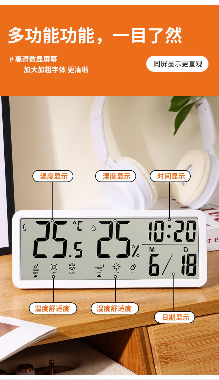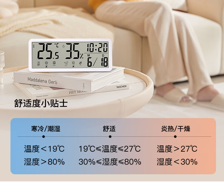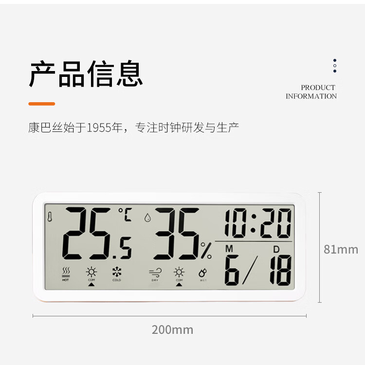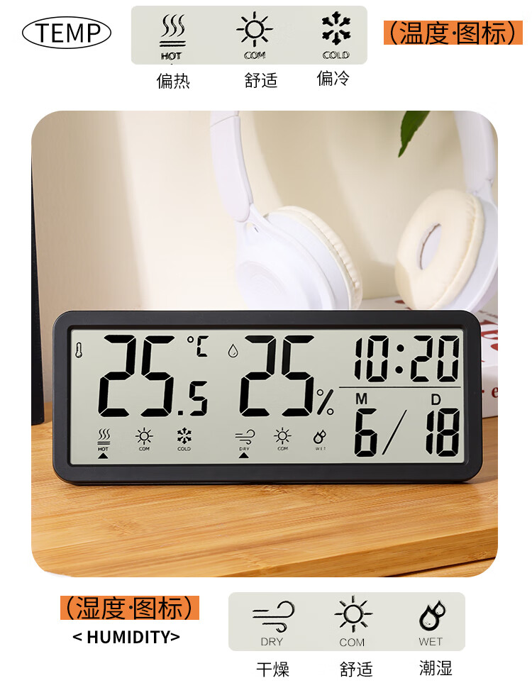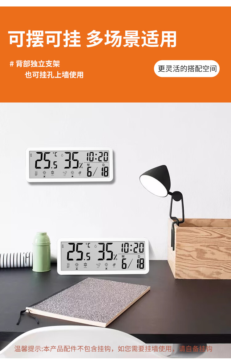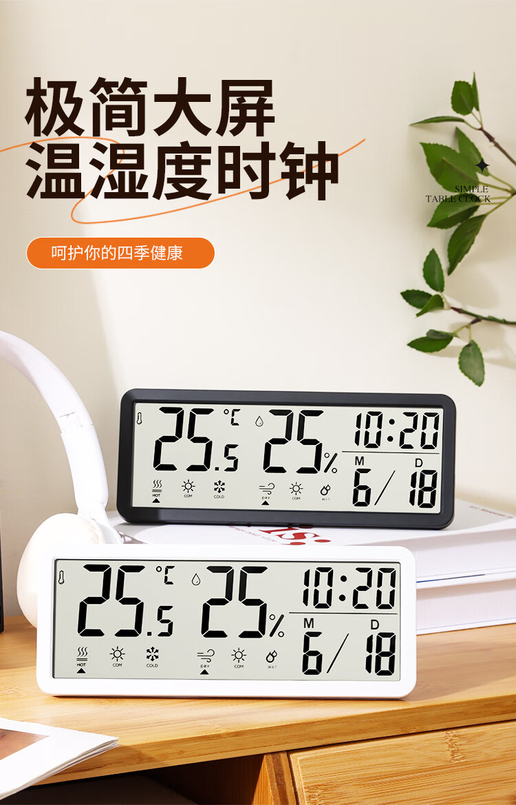 Combas Electronic Table Clock Temperature and Humidity Living Room Bedroom Desktop Clock Pendulum Table Clock Simple Table Clock 801TH White