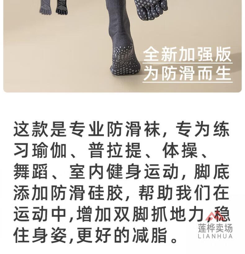 DEATKN German non-slip Pilates yoga special socks training stockings sports fitness split toe five fingers gray