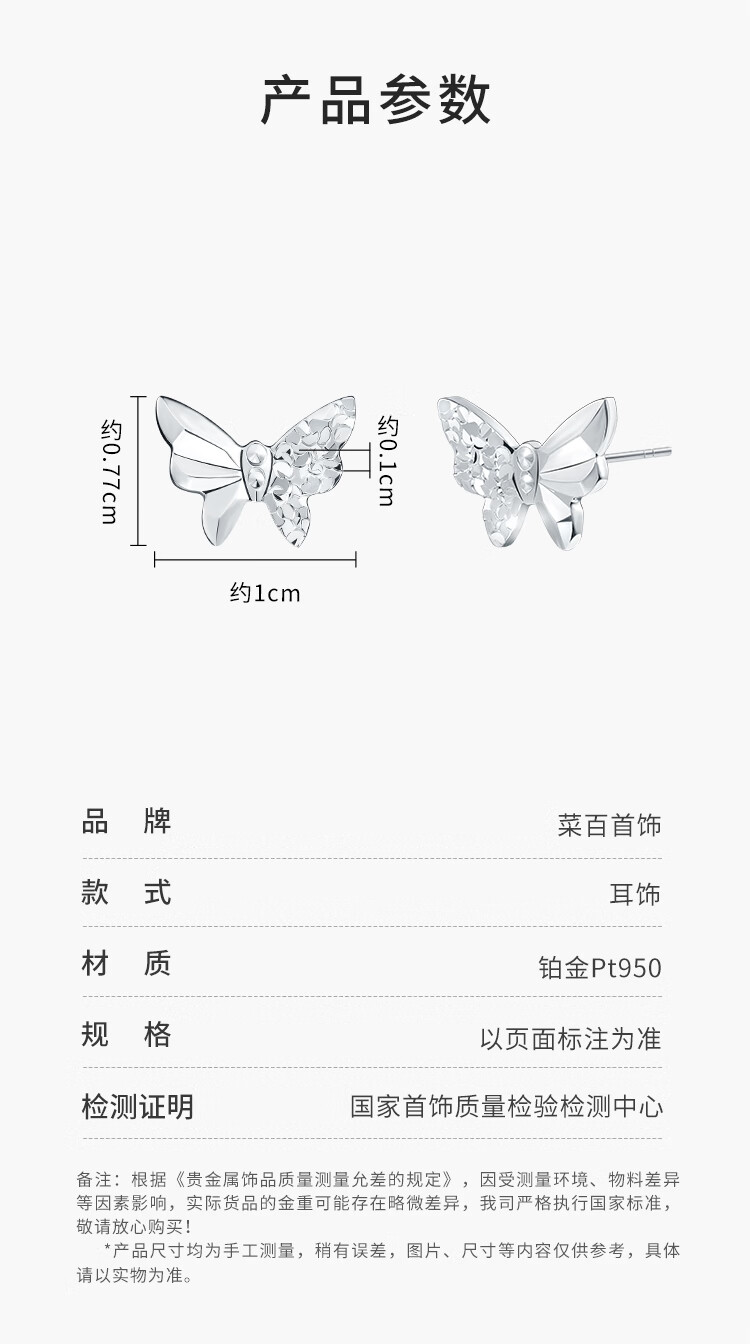 Caibai Jewelry Platinum Earrings Pt950 Platinum Fashion Sparkling Ice Butterfly Earrings Price BJ Platinum Earrings About 2.15g
