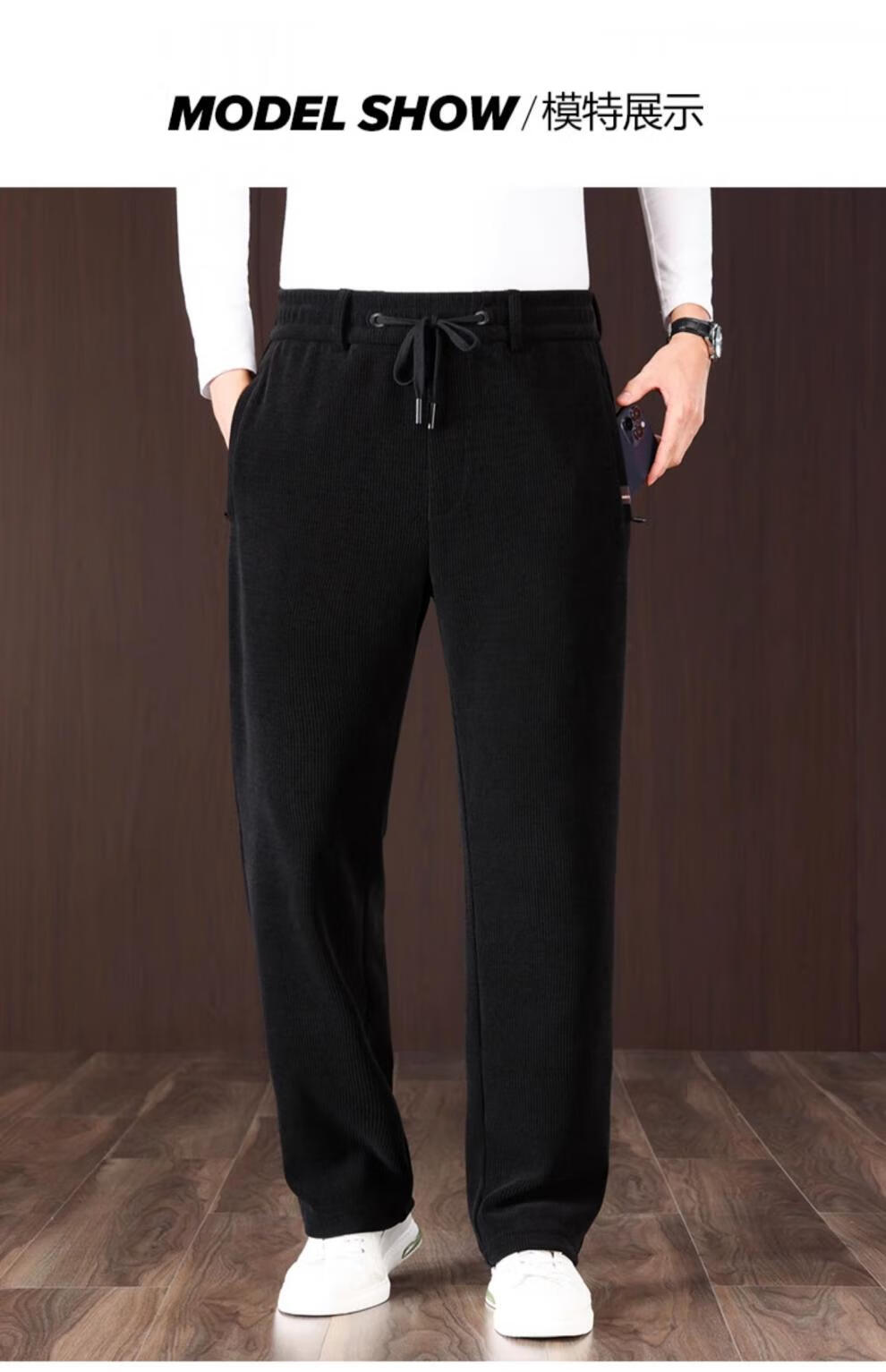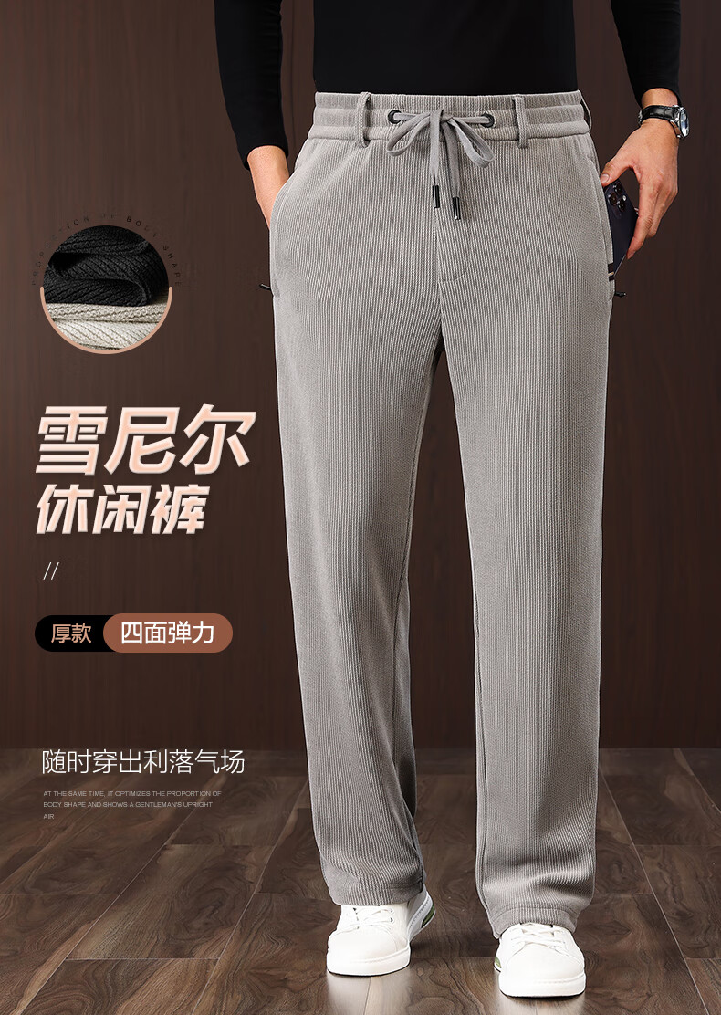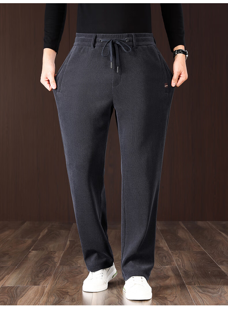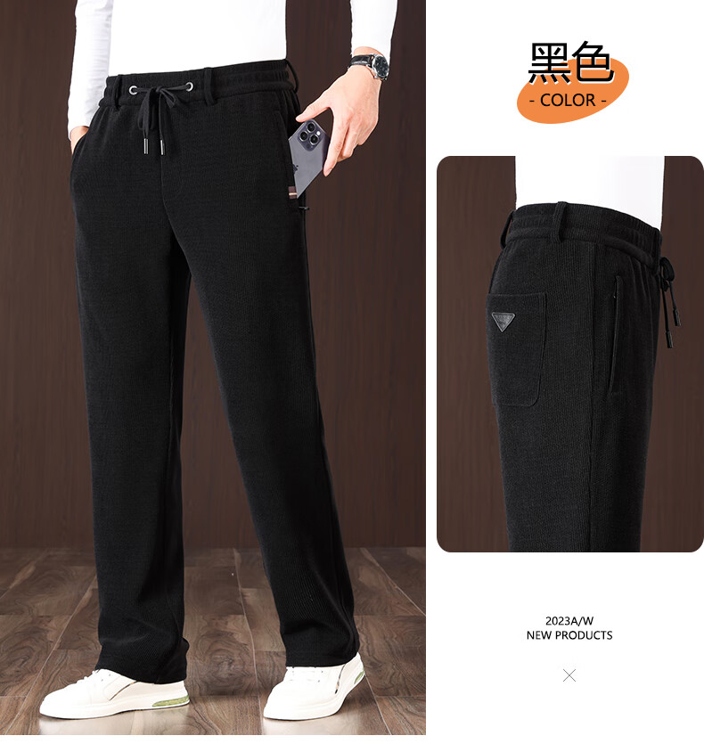 International Miller high-end thickened chenille autumn and winter men's casual pants, loose sports pants, middle-aged winter velvet trousers, spot Suda, black, no velvet, thick section 2XL