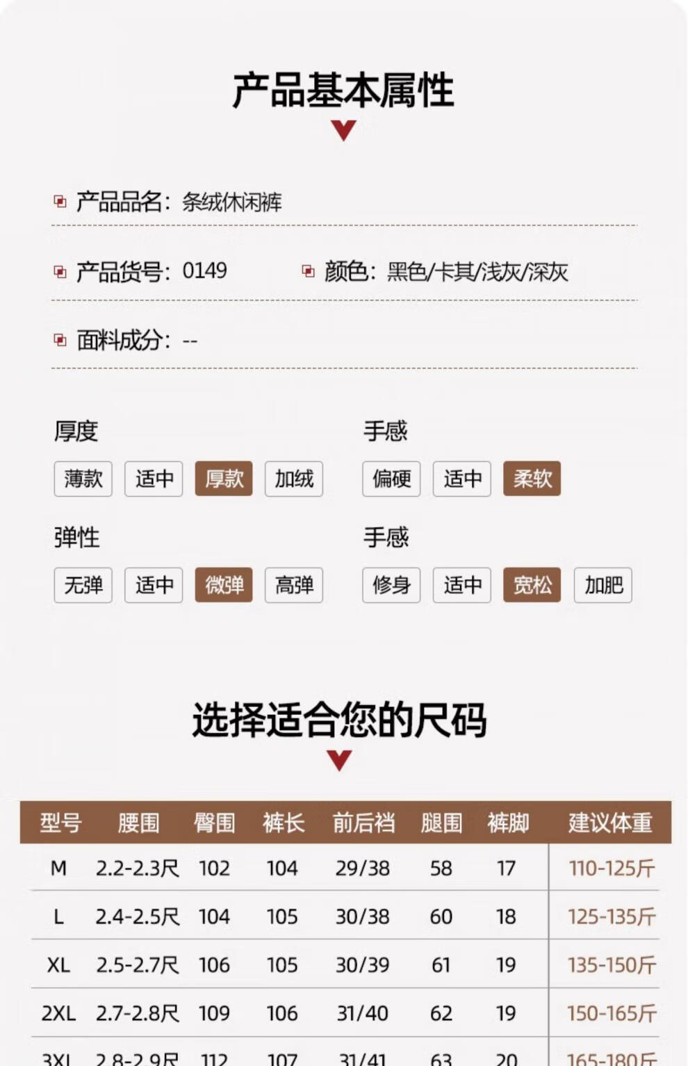China (cm) 165 / 88-90 170 / 96-98 175 / 108-110 180 / 118-122 185 / 126-130