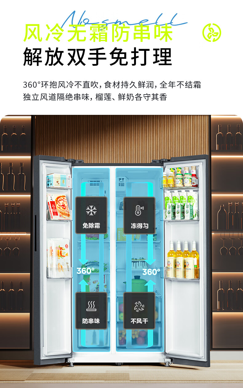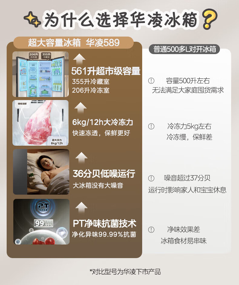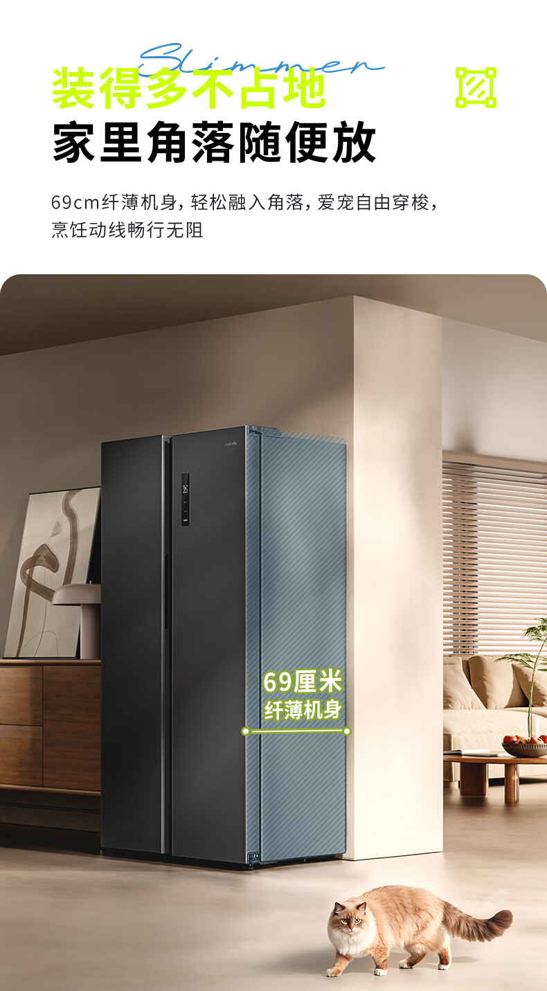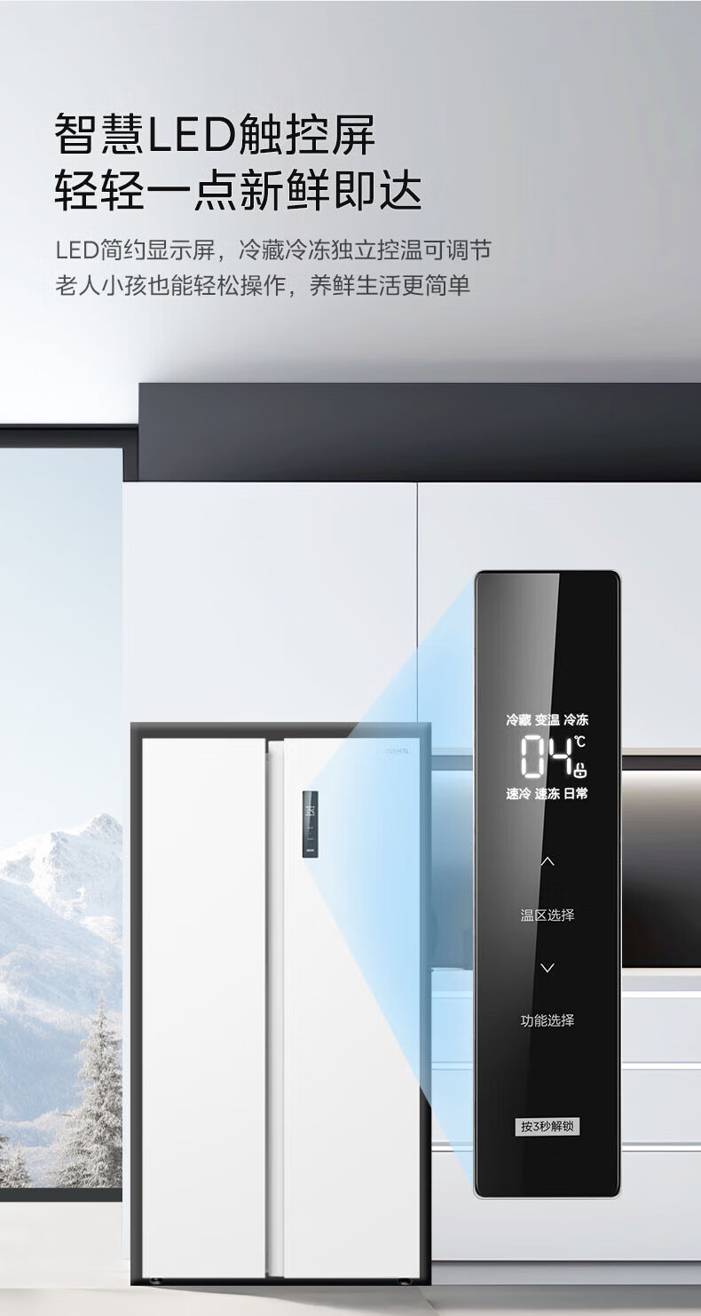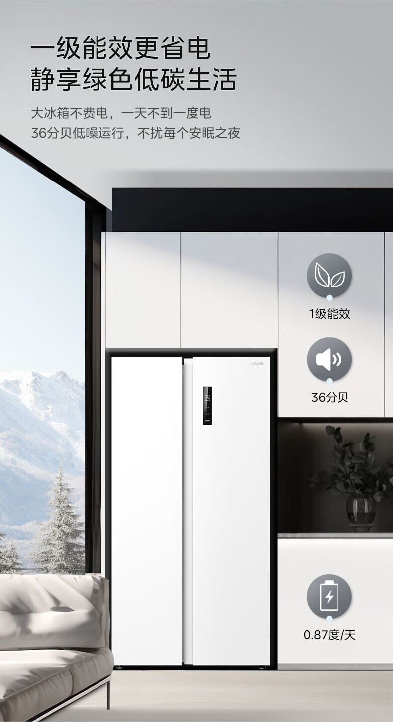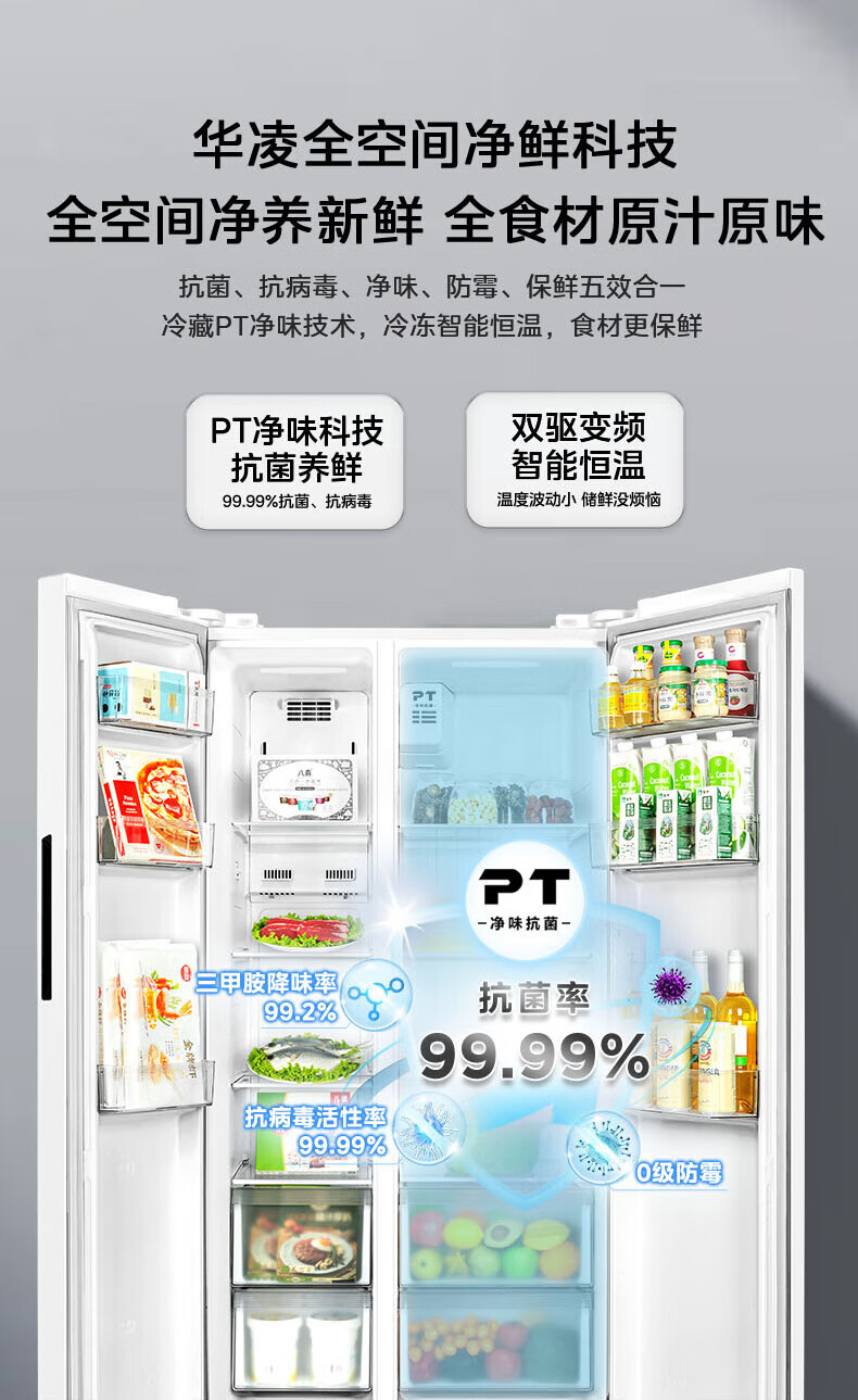 Hualing 589/588 ultra-thin large-capacity double-door refrigerator produced by Midea for home dual-frequency first-class energy-efficiency air-cooled frost-free, odor-free and sterilizing refrigerator has a national subsidy of 20% HR-589WKP