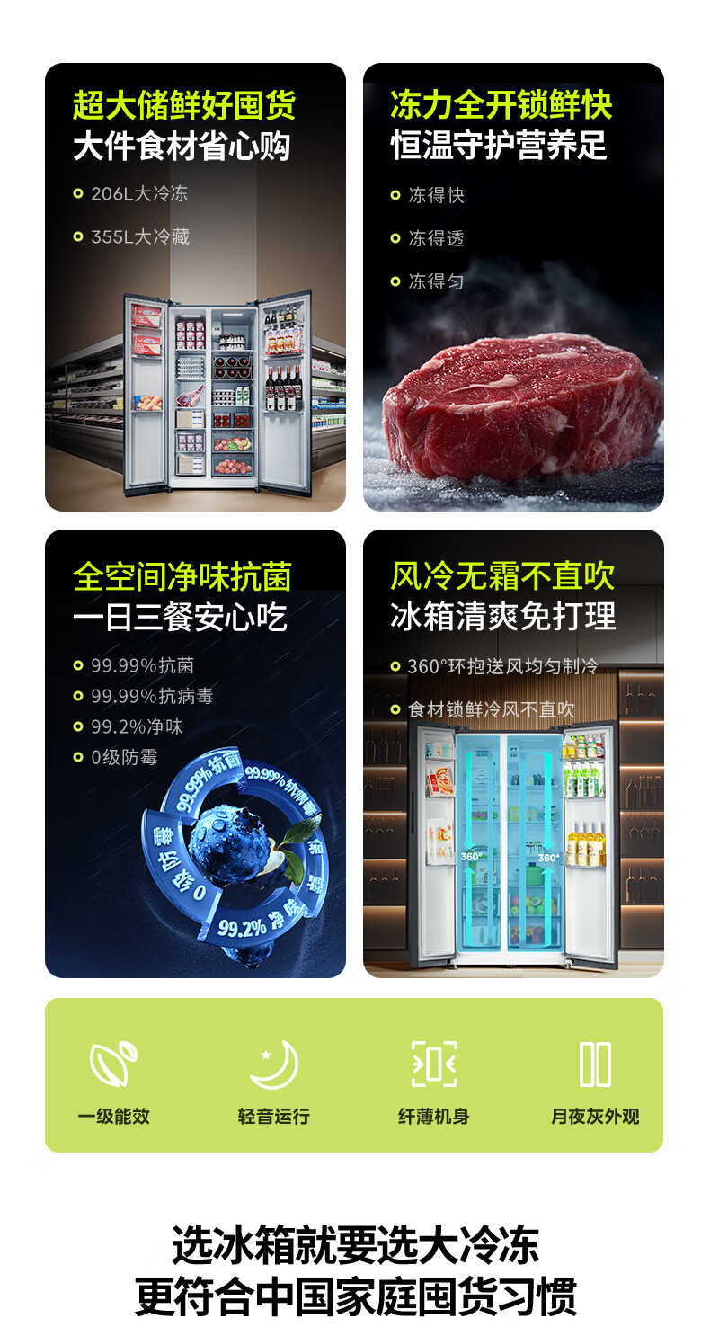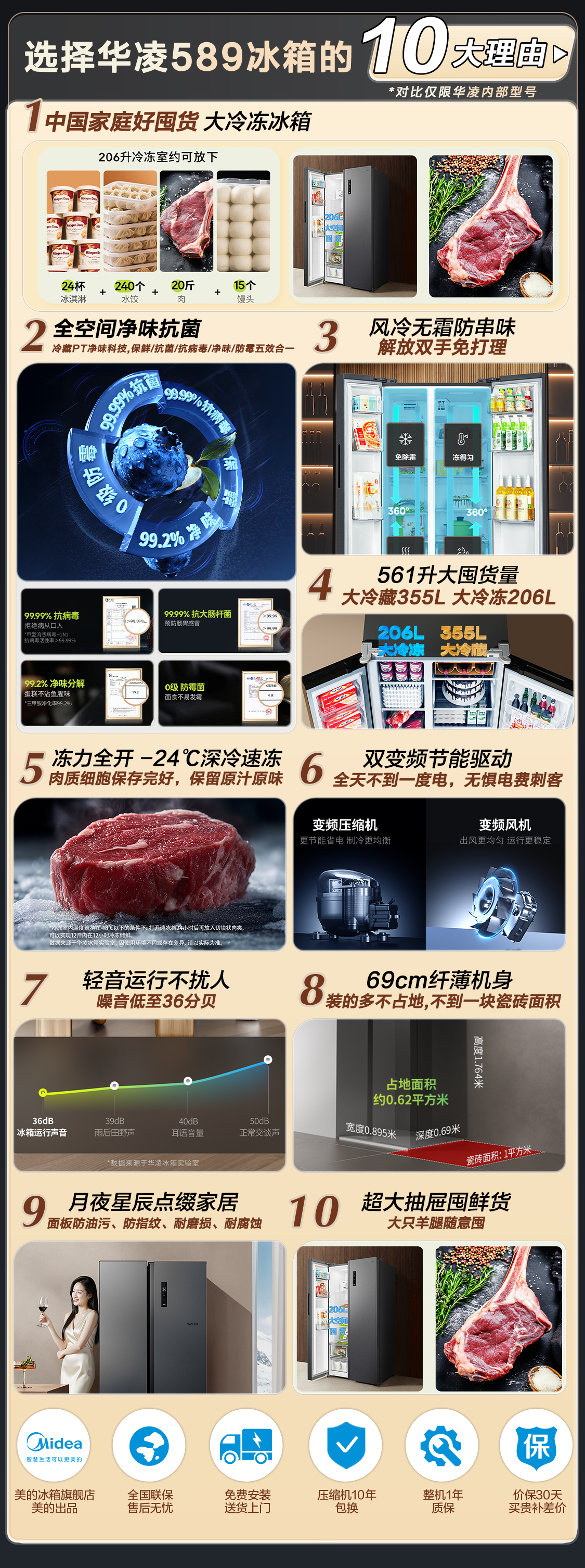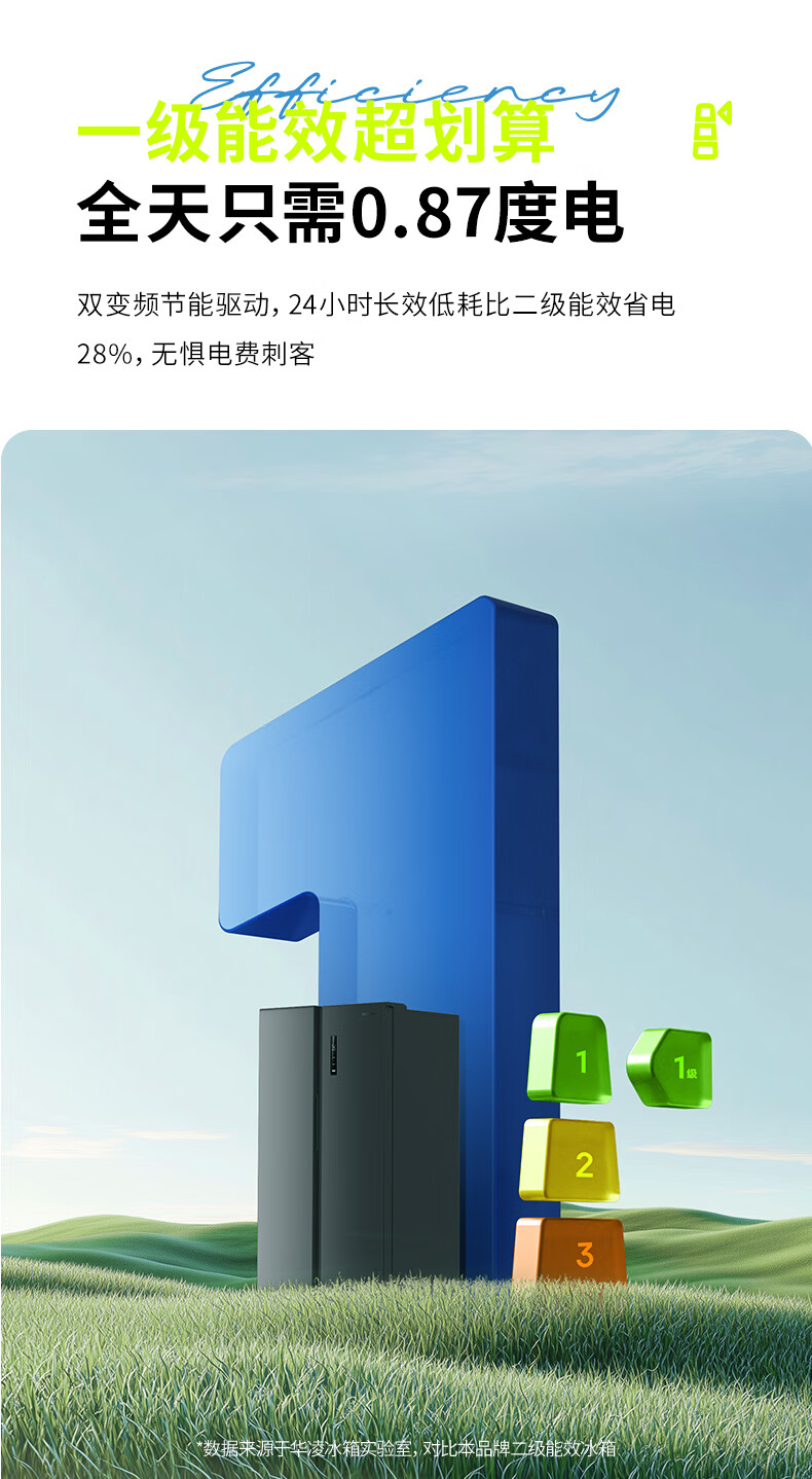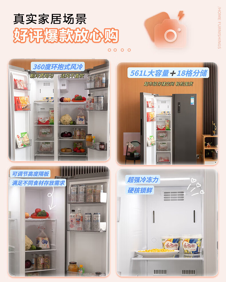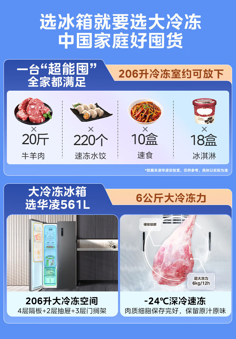Hualing 589/588 ultra-thin large-capacity double-door refrigerator produced by Midea for home dual-frequency first-class energy-efficiency air-cooled frost-free, odor-free and sterilizing refrigerator has a national subsidy of 20% HR-589WKP