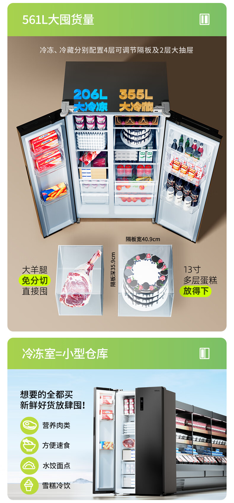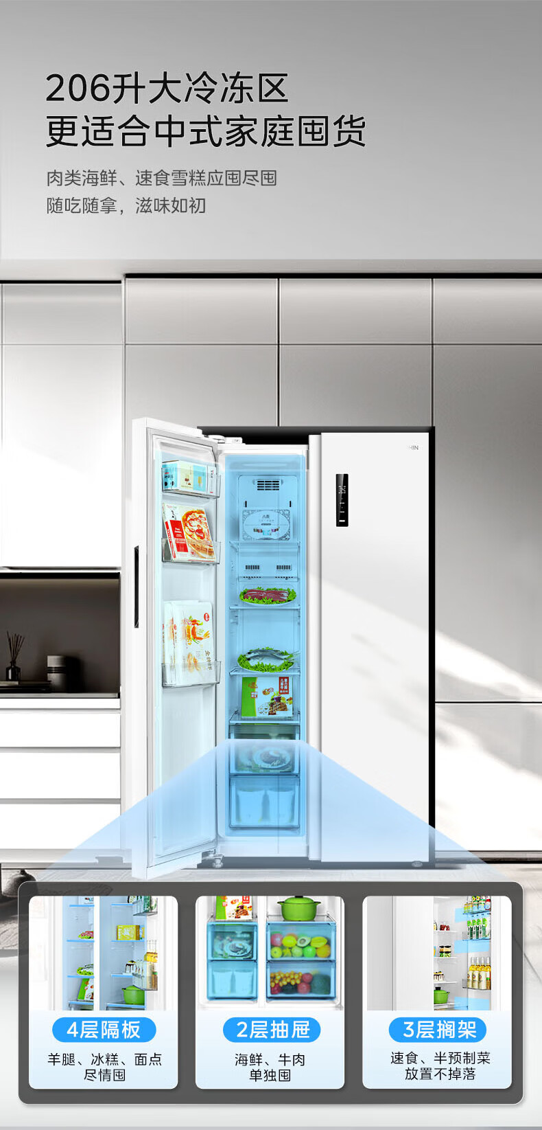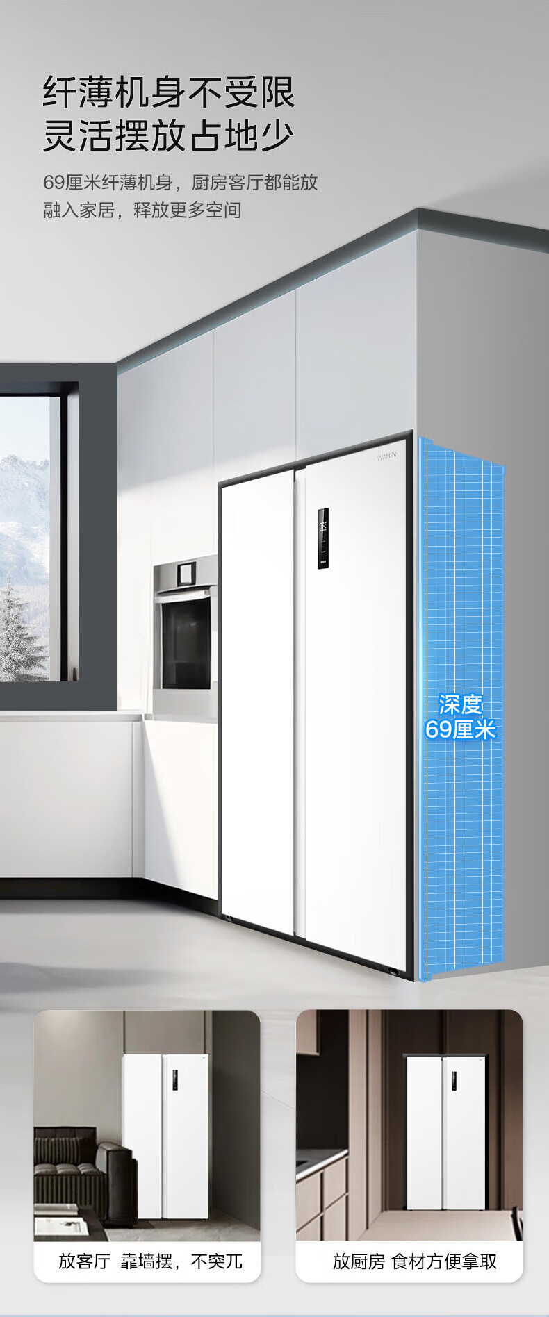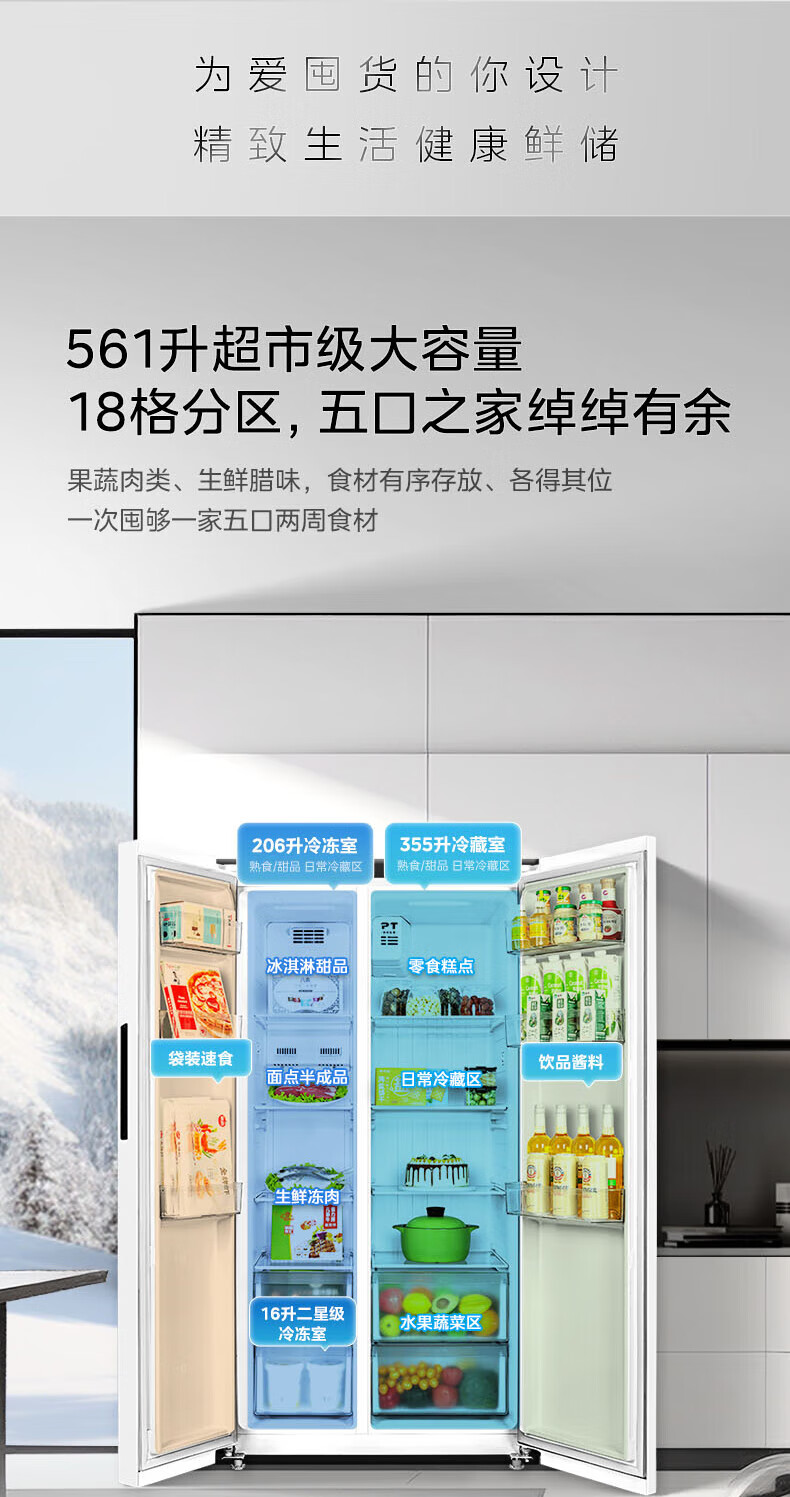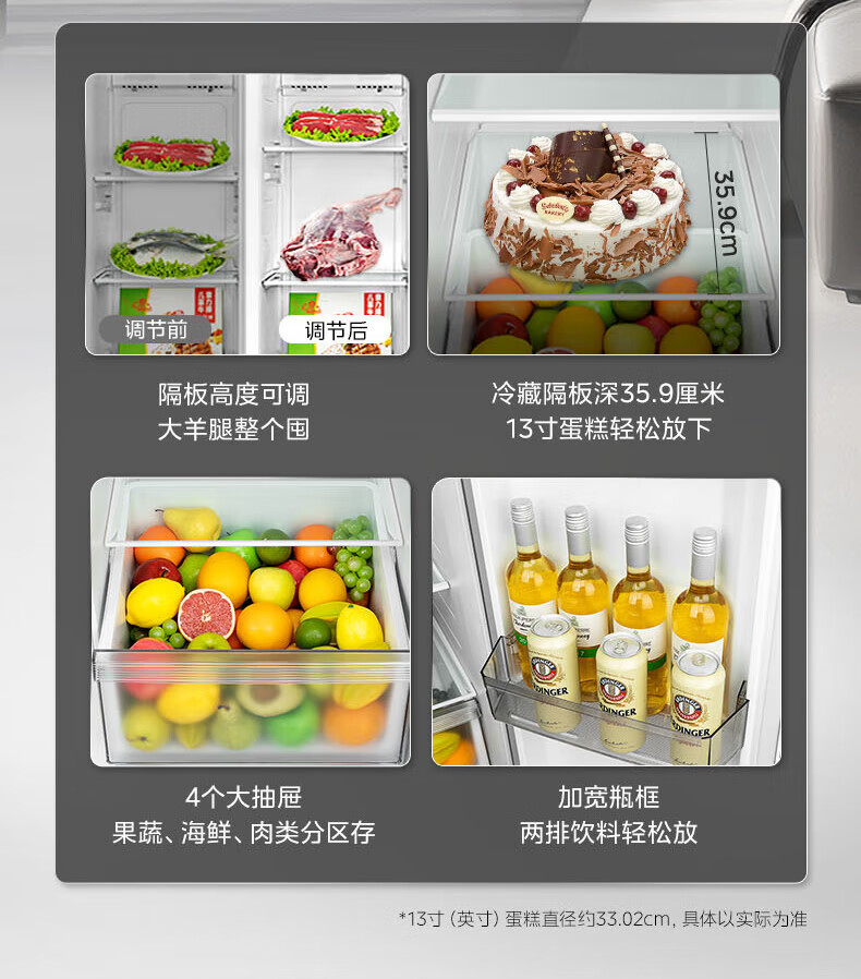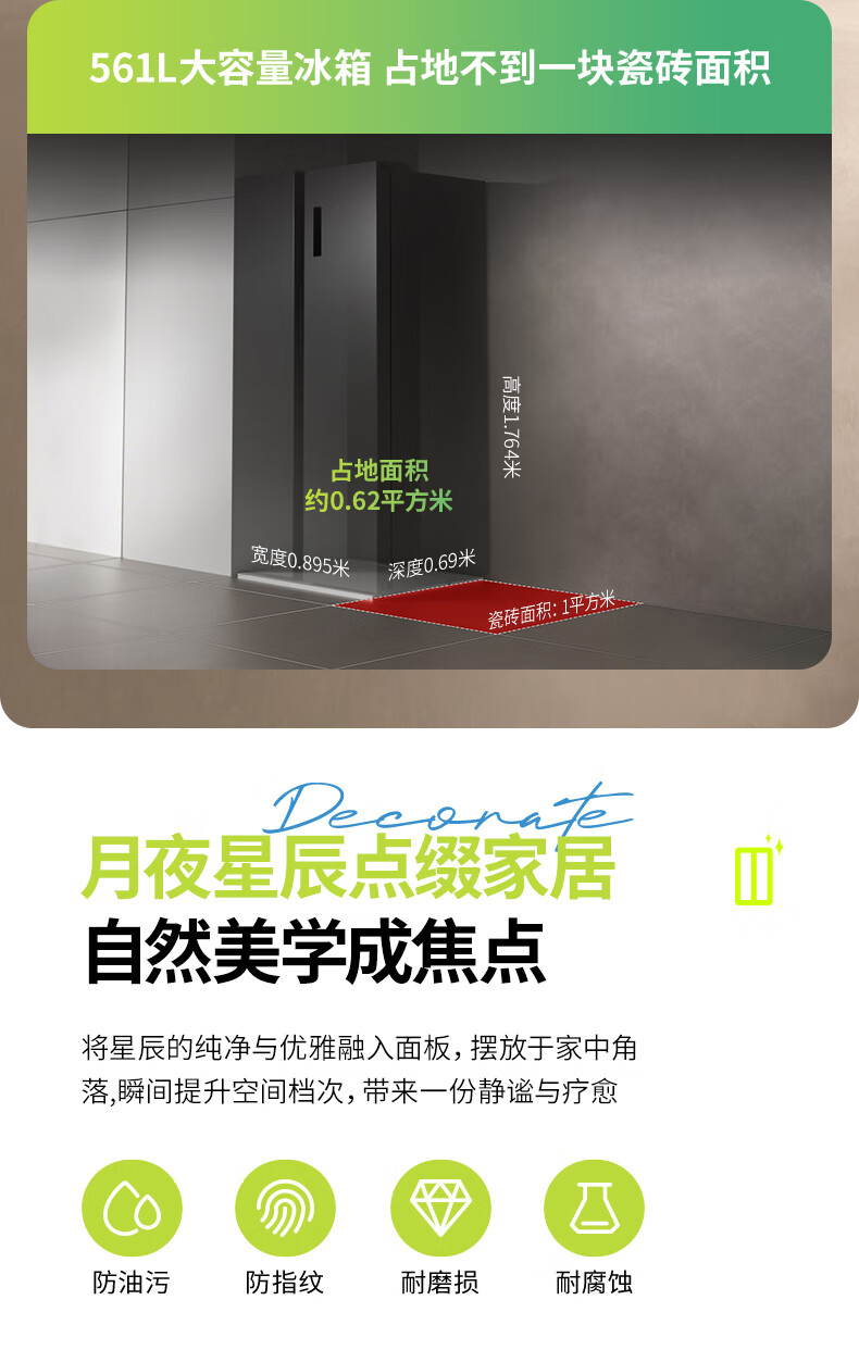 Hualing 589/588 ultra-thin large-capacity double-door refrigerator produced by Midea for home dual-frequency first-class energy-efficiency air-cooled frost-free, odor-free and sterilizing refrigerator has a national subsidy of 20% HR-589WKP