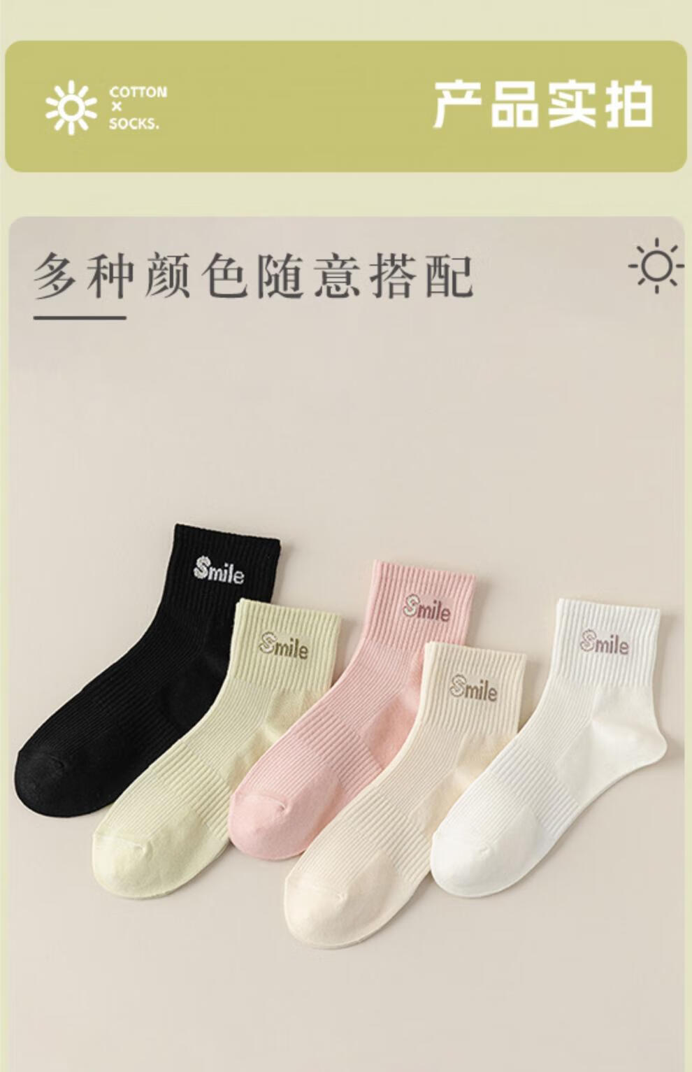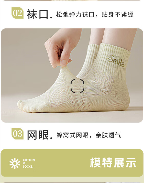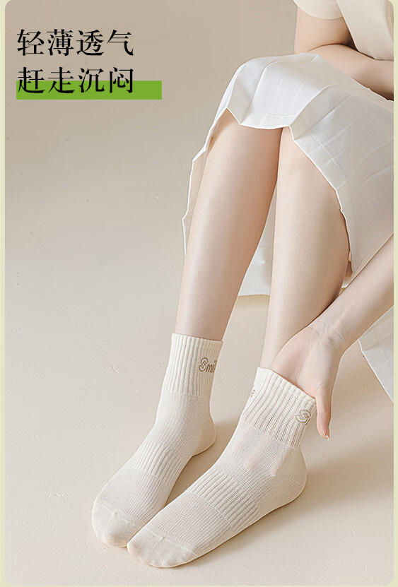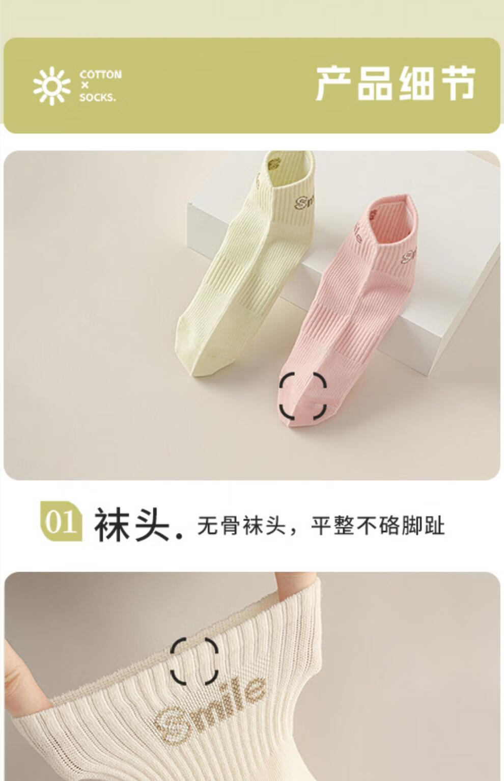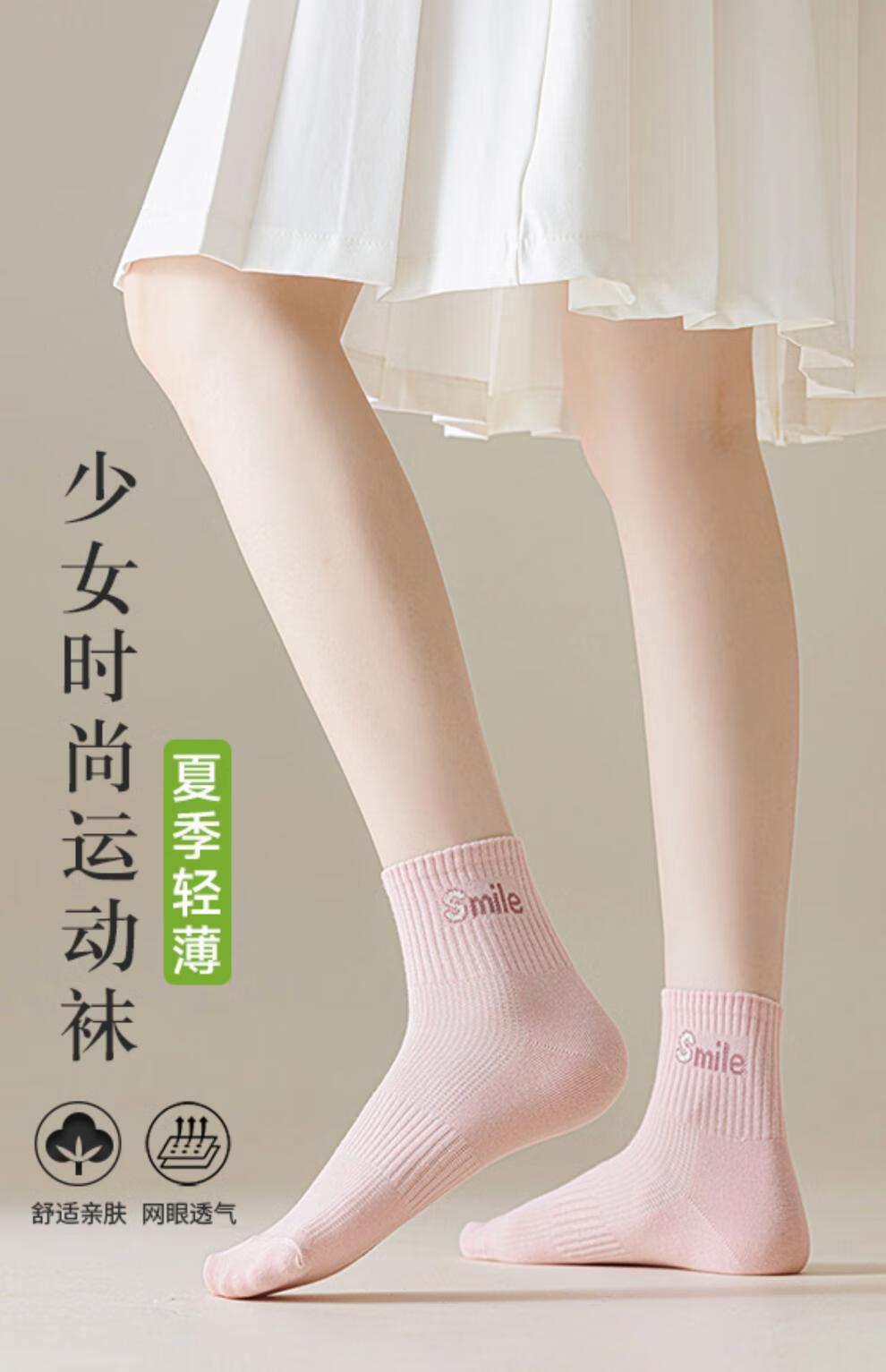 Shupao socks, summer thin children's socks, mesh breathable moisture-wicking socks, white invisible socks, summer women's cotton socks, 5 colors, 1 pair each, one size fits all, women (34-39)