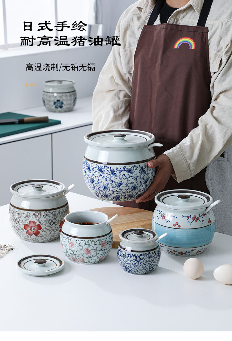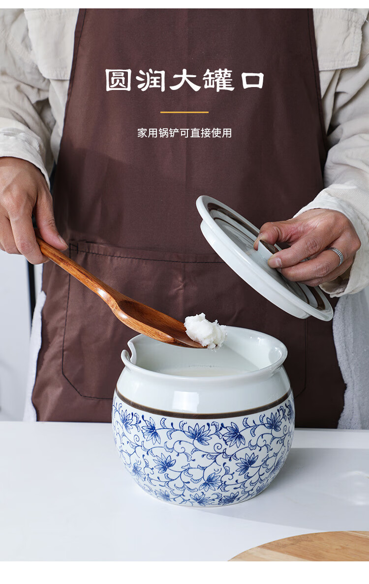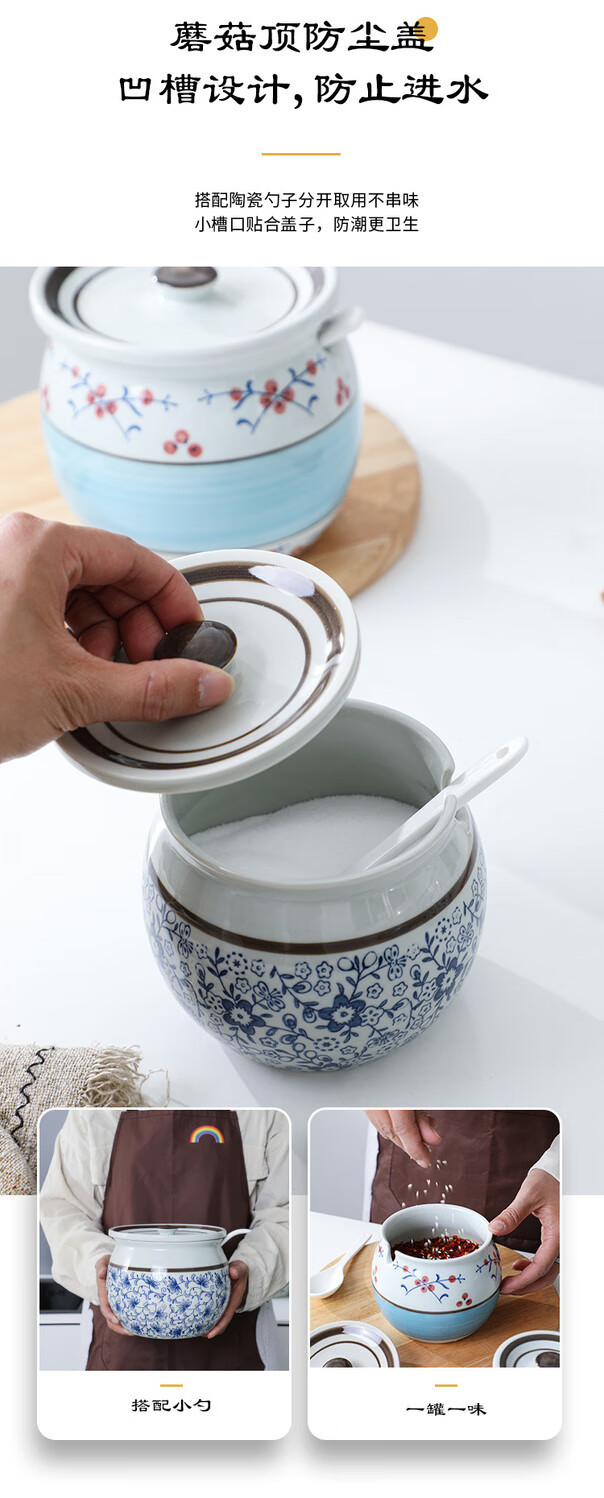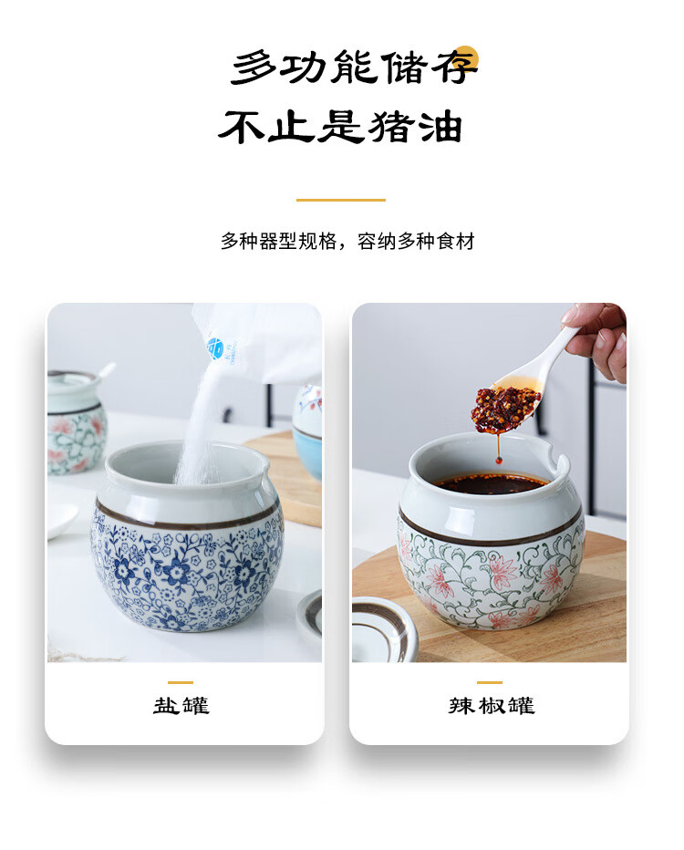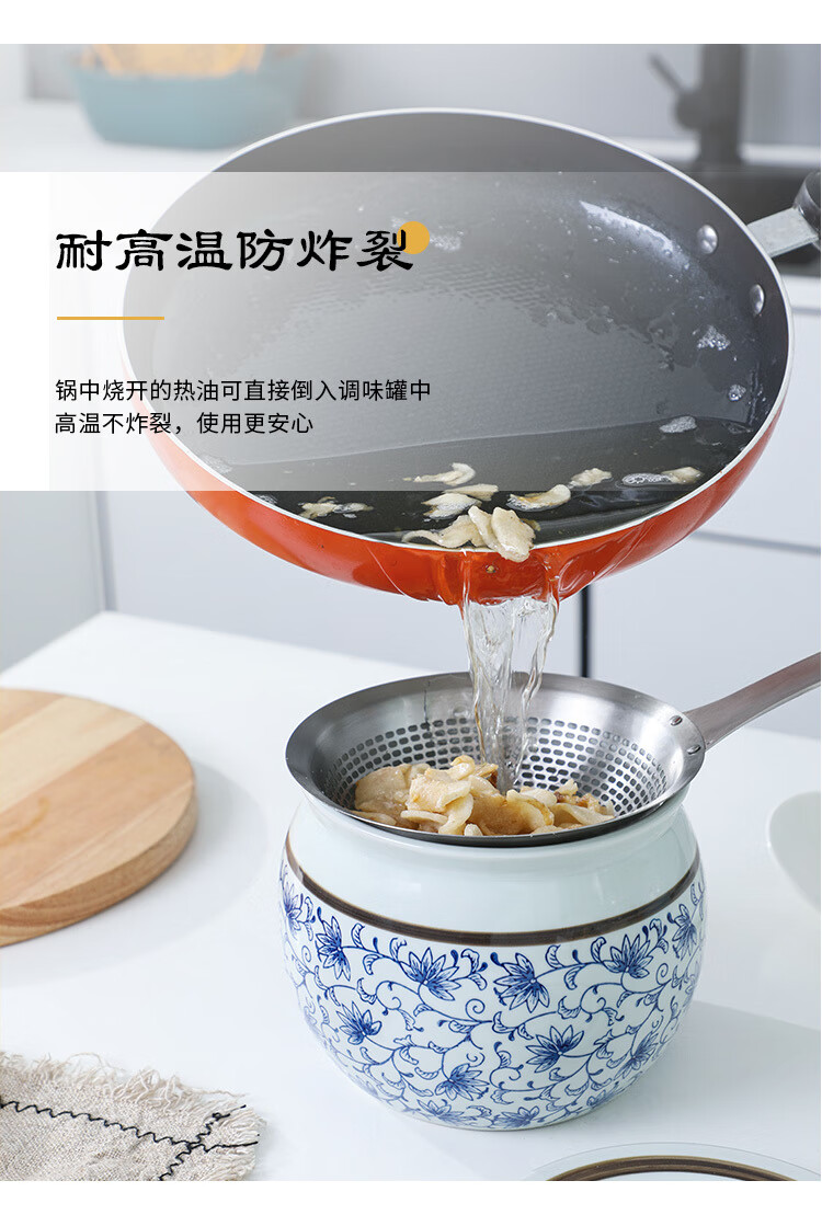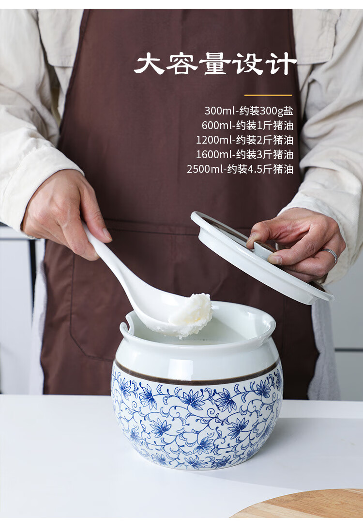 Carole ceramic high temperature resistant lard jar old-fashioned household kitchen oil-splashed pepper special jar with lid salt jar blue and white porcelain anti-cracking small blue and white + spoon 280ml