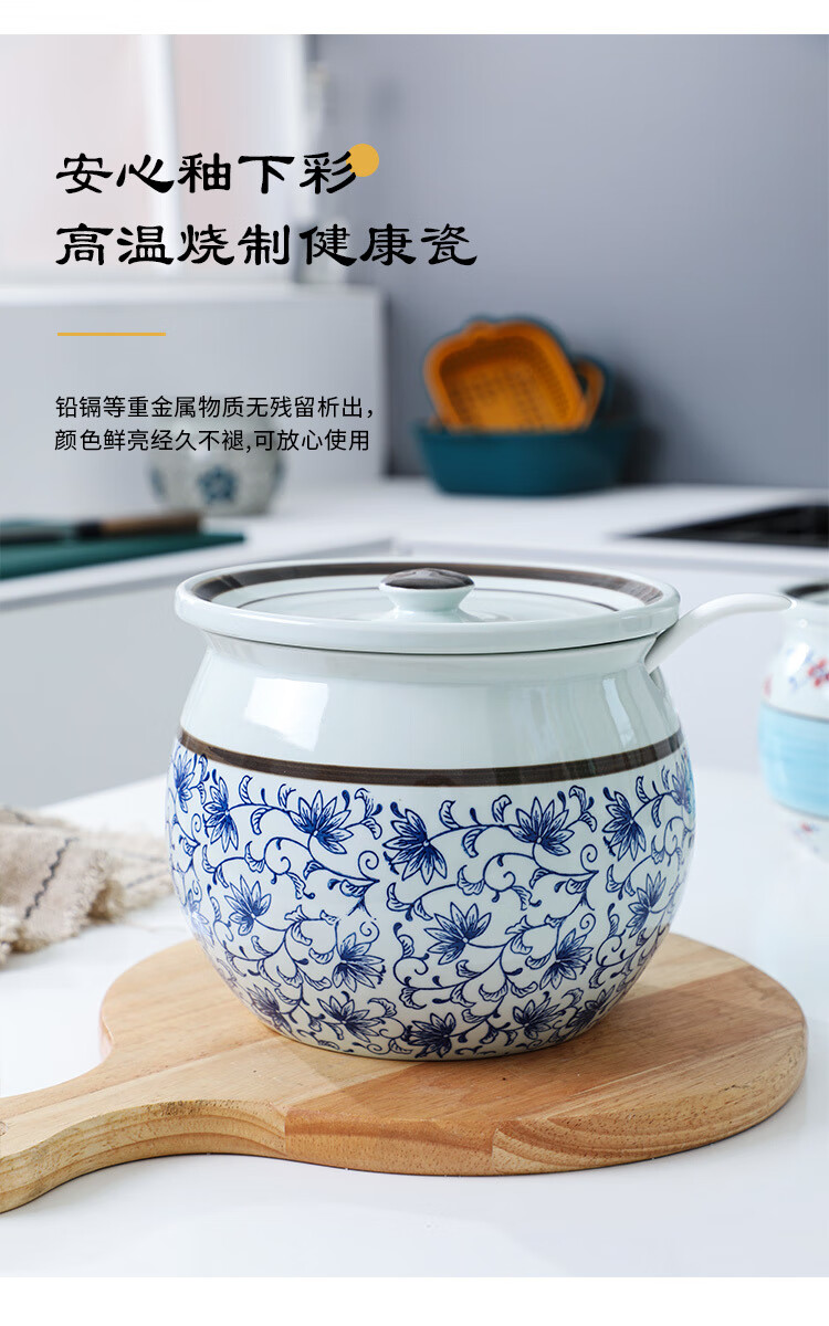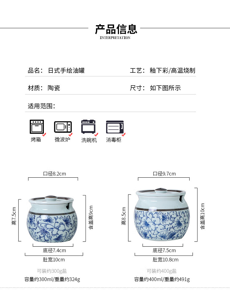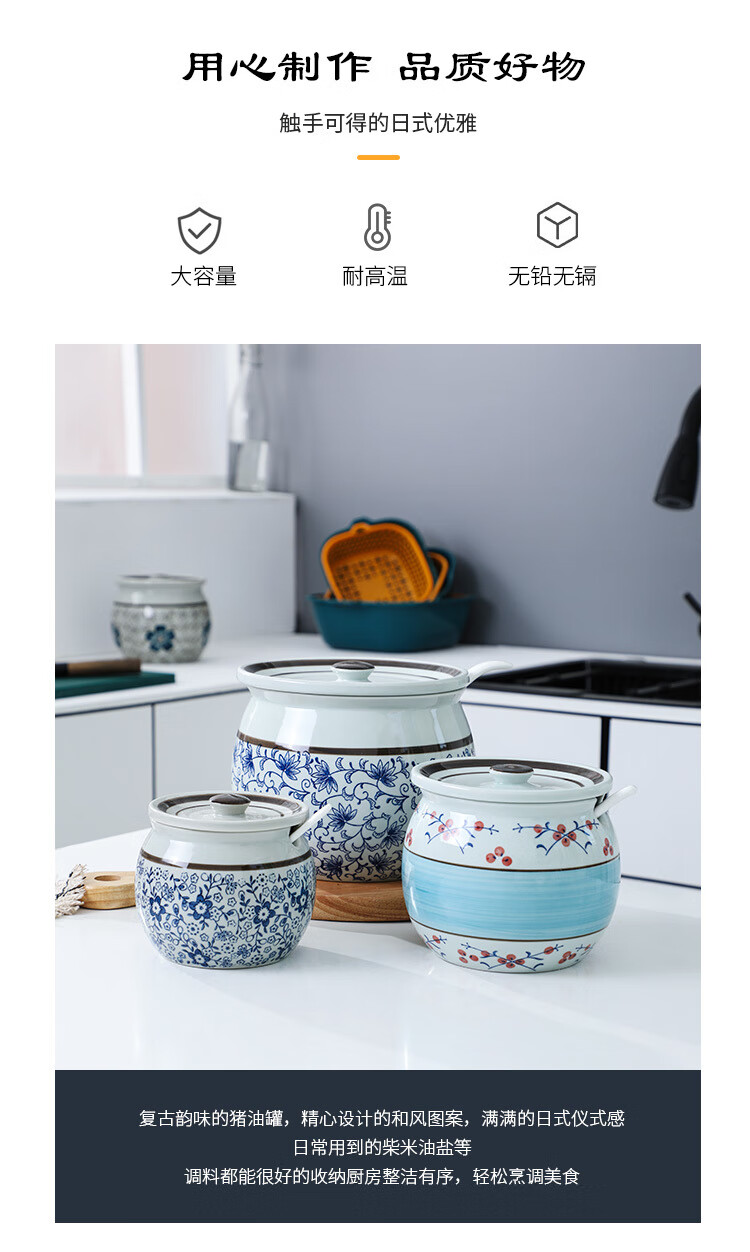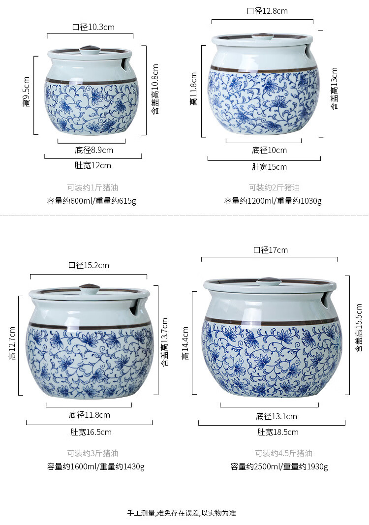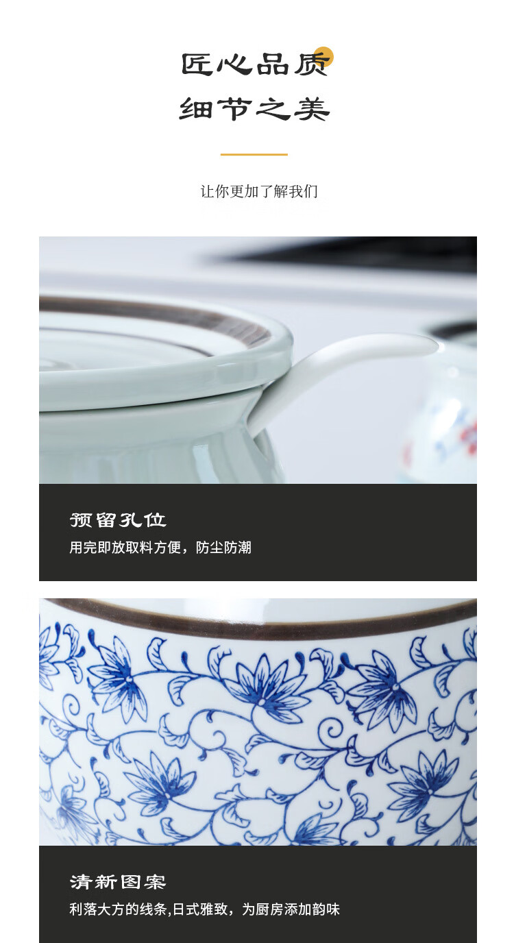 Carole ceramic high temperature resistant lard jar old-fashioned household kitchen oil-splashed pepper special jar with lid salt jar blue and white porcelain anti-cracking small blue and white + spoon 280ml