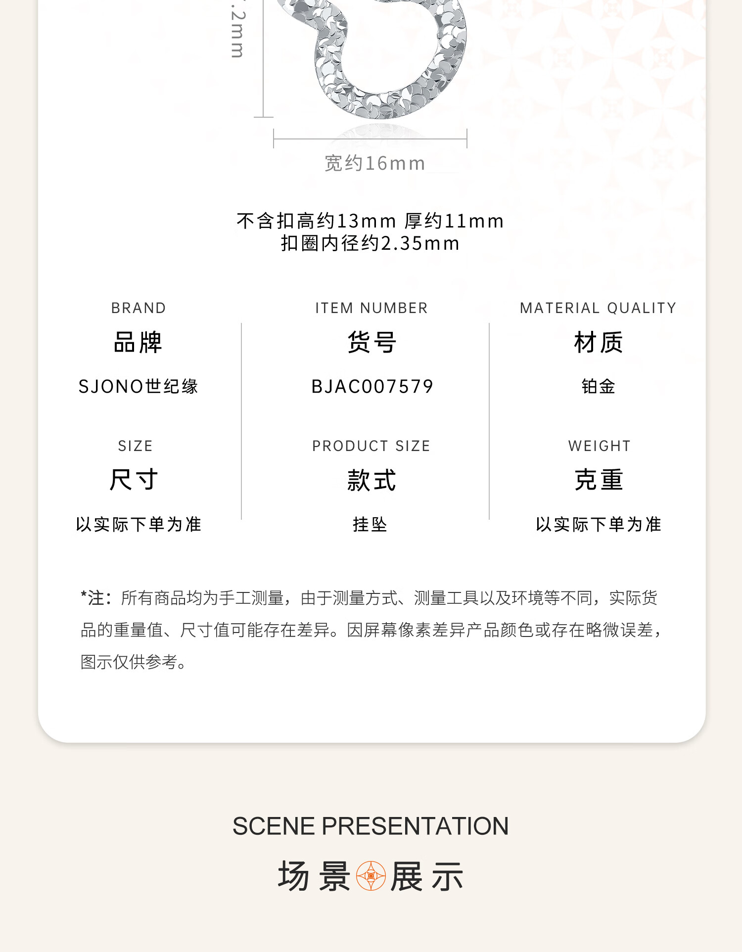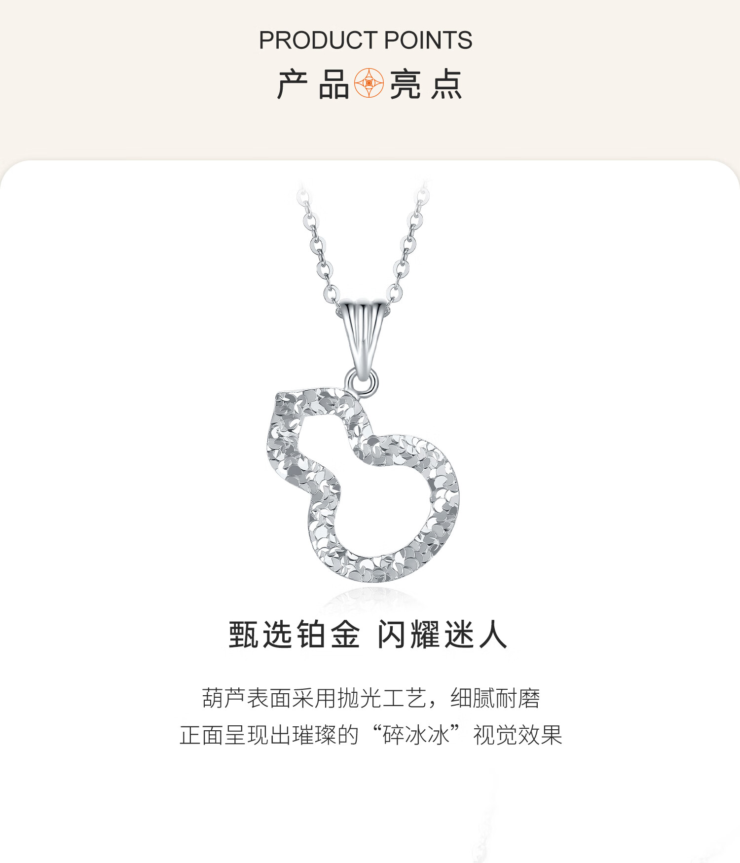 Century Yuan Jewelry Crushed Ice Gourd Platinum Pendant PT950 Casual Versatile Pendant Birthday Gift 1.9g