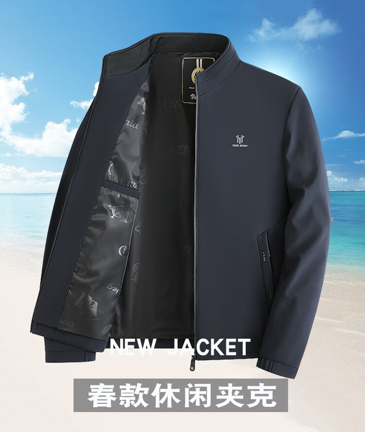 Hengyuanxiang Dad Jacket Spring and Autumn Style Middle-aged Men's Jacket Spring and Autumn Thin Style Middle-aged and Elderly Grandpa Top Jacket 506 Navy Blue (Spring and Autumn Style) XL 180 Suitable for 116-135 Jin Jin equals 0.5 kg