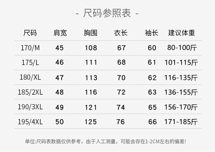China (cm) 165 / 88-90 170 / 96-98 175 / 108-110 180 / 118-122 185 / 126-130