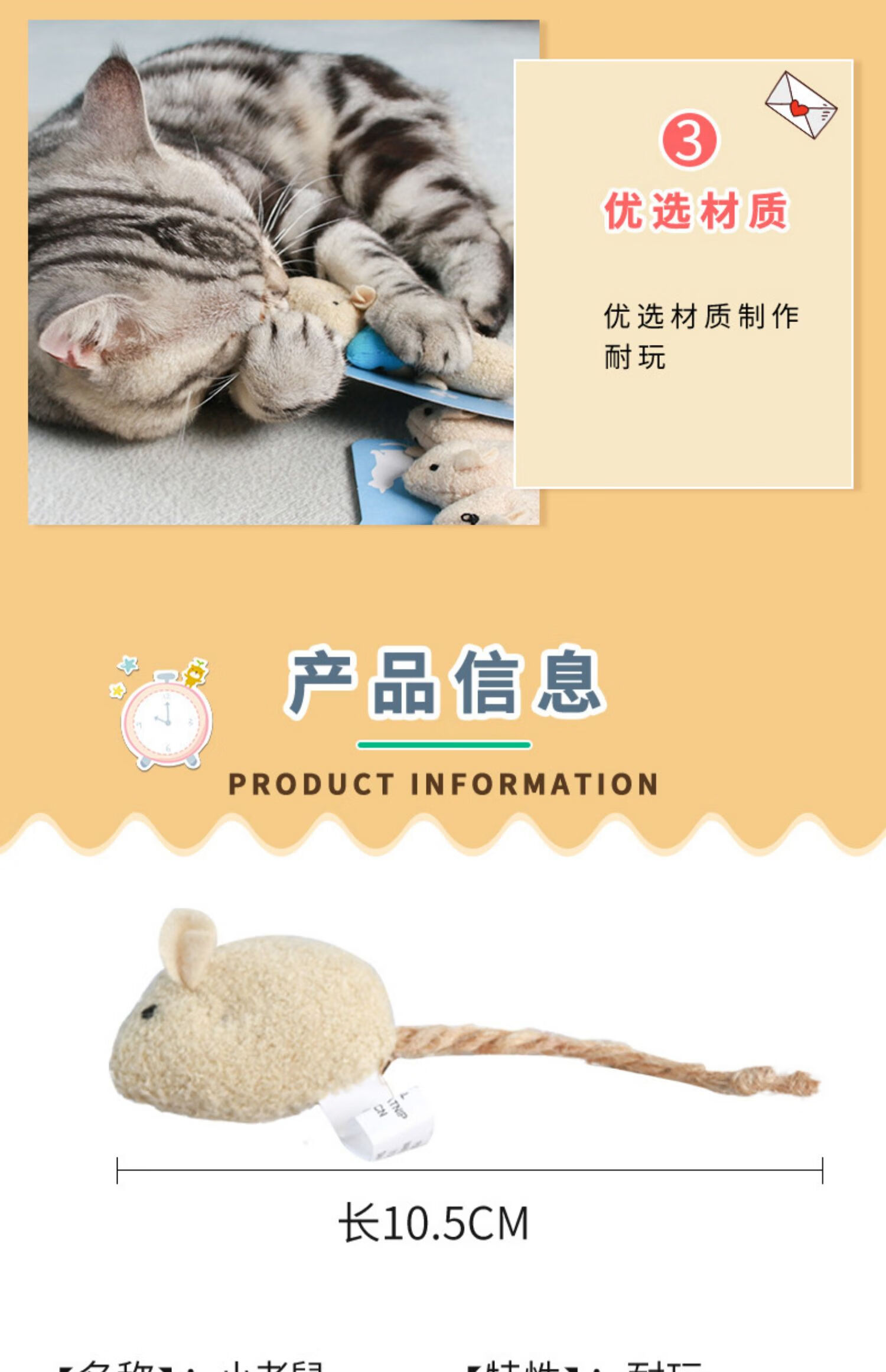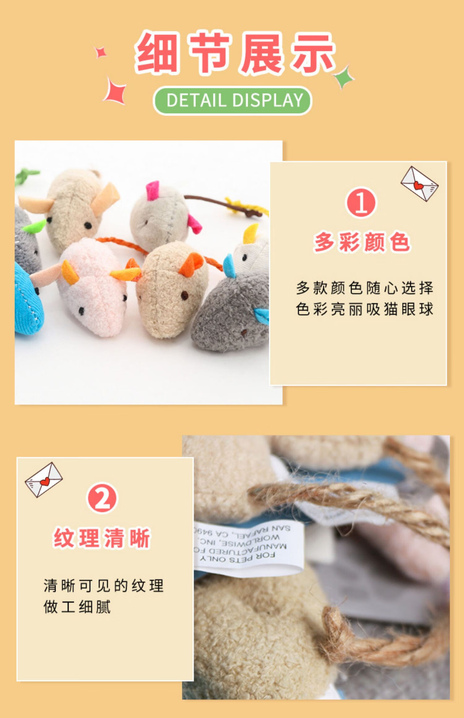 Cat toy little mouse plush simulation self-pleasure relief cat stick chewing dog kitten teeth grinding teasing catnip plush mouse cat toy - random color - 1 piece No Specifications