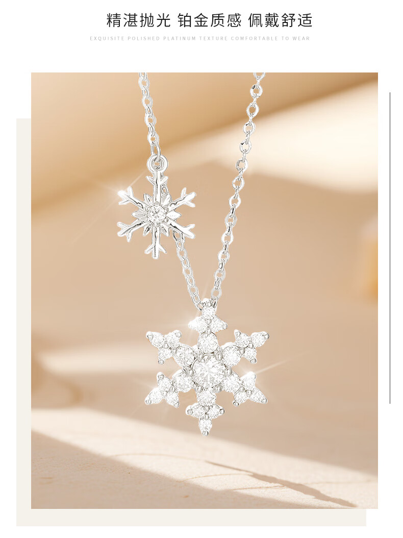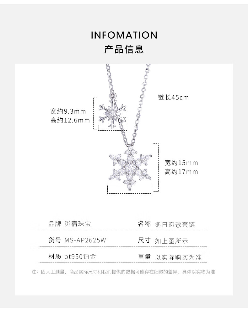 Misu platinum Pt950 six-petal snowflake necklace for women inlaid with diamonds, platinum ice and snow clavicle chain as a birthday gift for girlfriend, inlaid with moissanite, length 40+3+2cm
