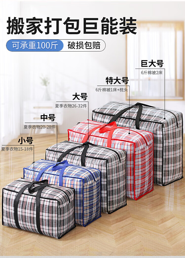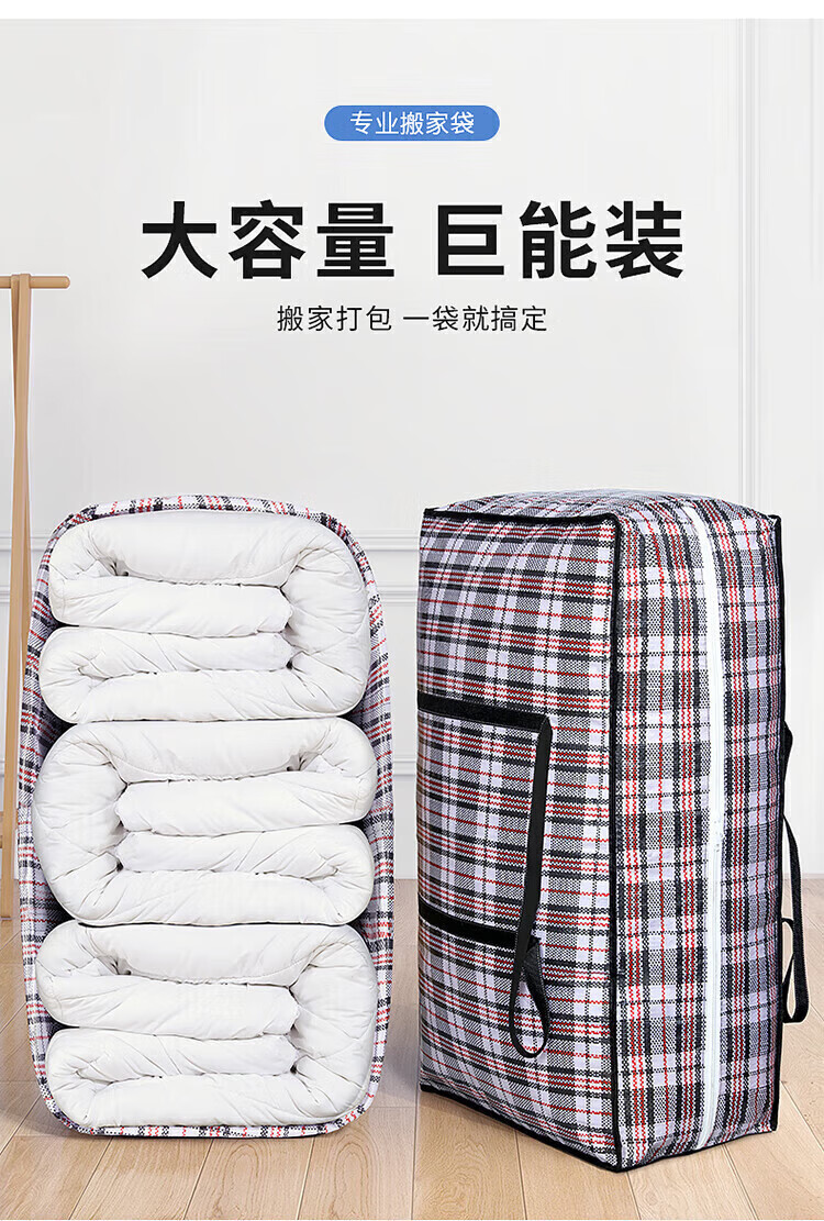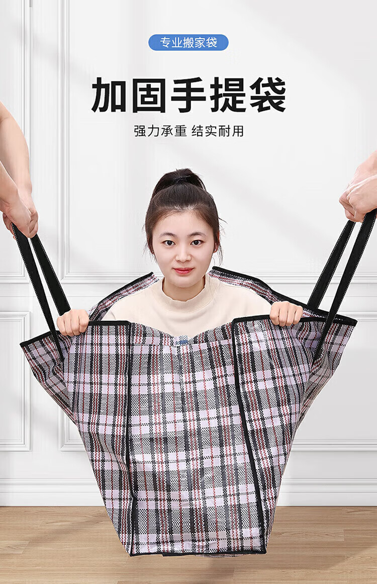 Jingxianju Moving Packing Bag Snakeskin Bag Luggage Woven Bag Sack Large Large Capacity Storage Snakeskin Pocket Extra Large Medium Black Plaid 58*42*23 One Pack