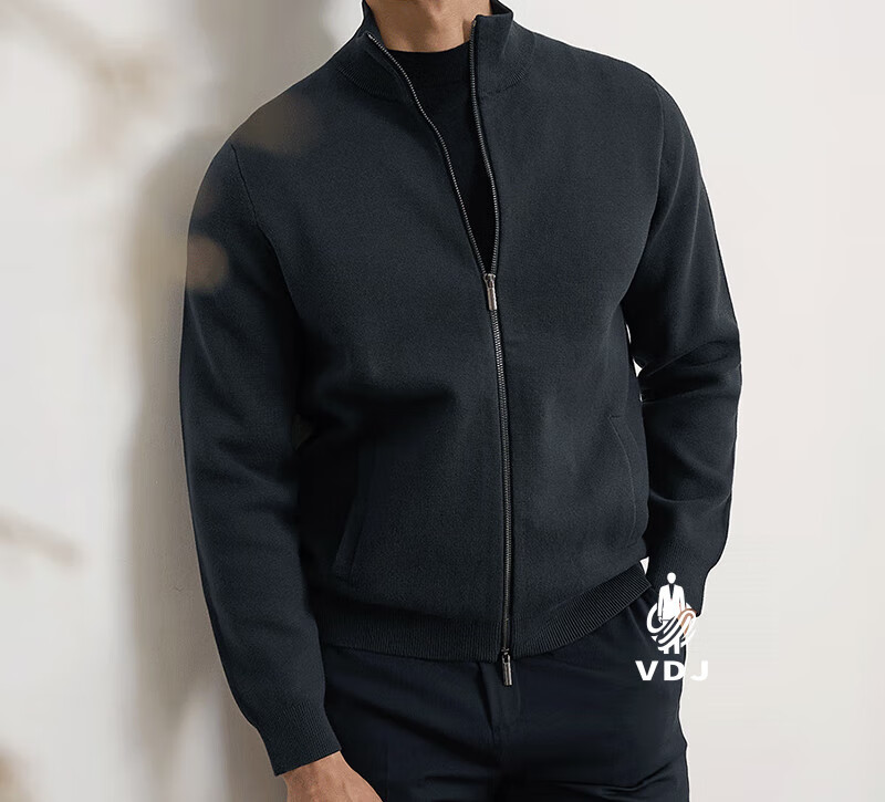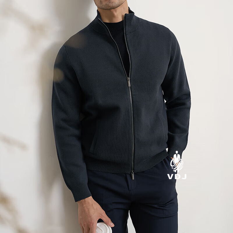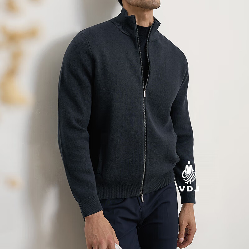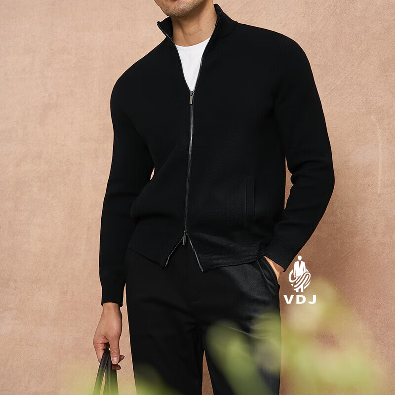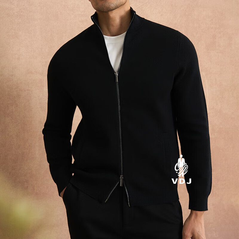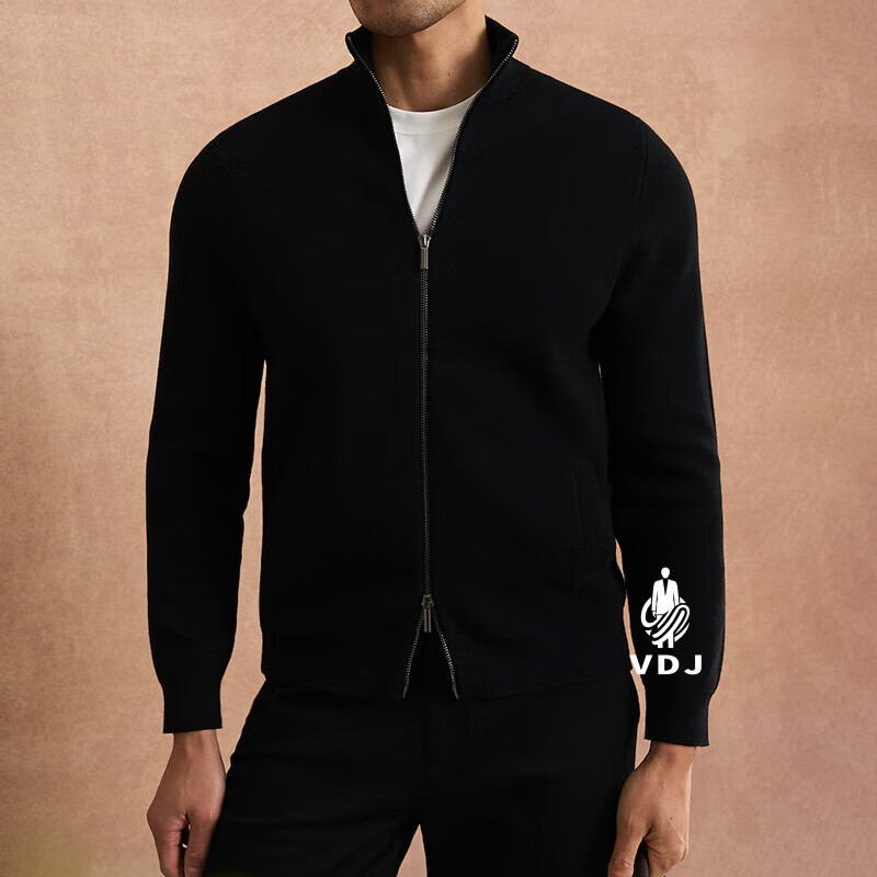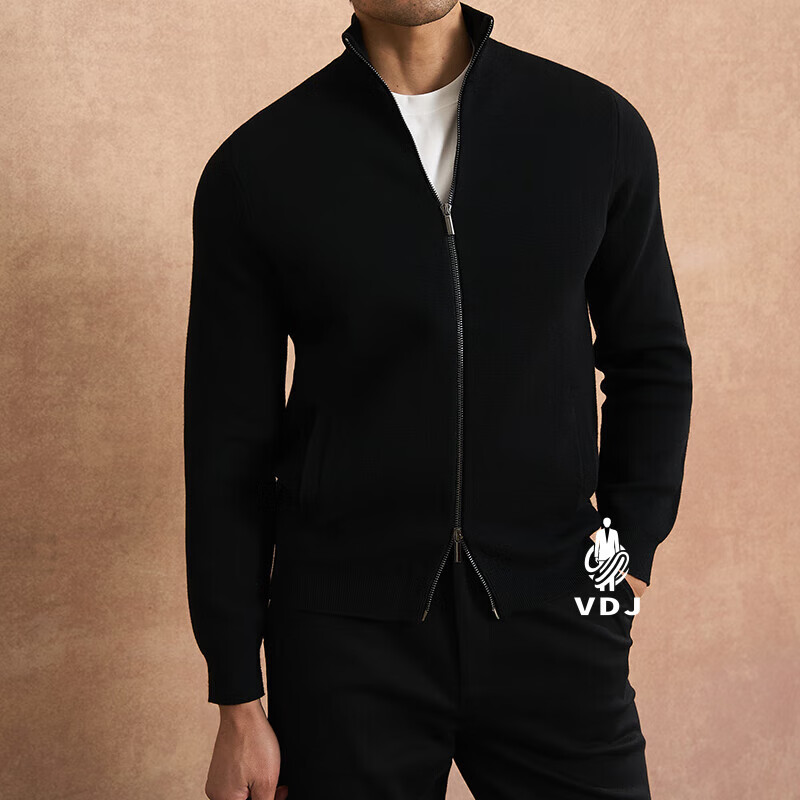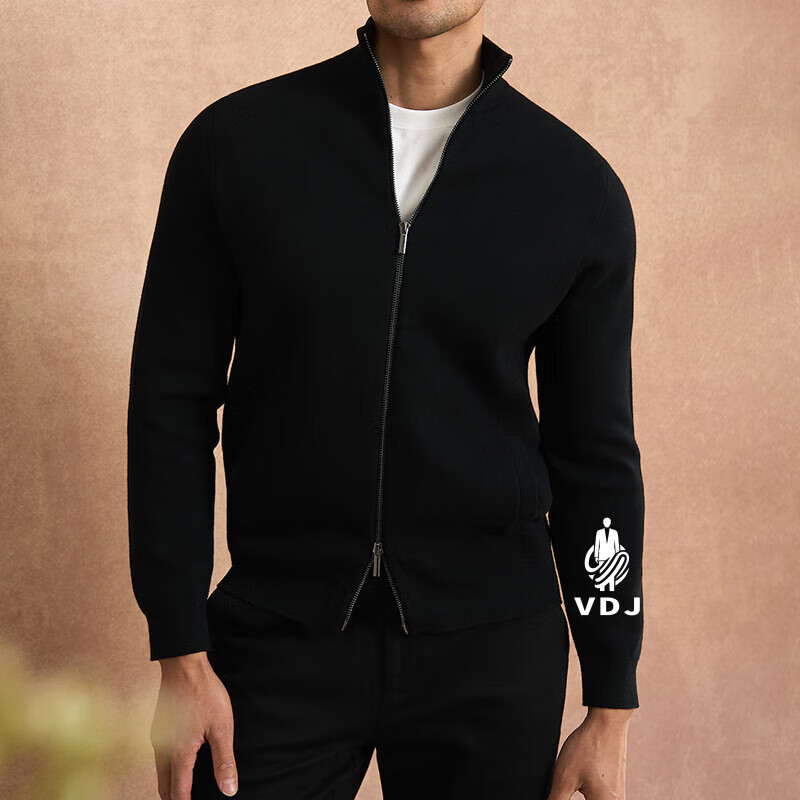 VDJ Brand Cashmere Jacket Men's Winter Jacket Stand Collar Versatile Casual Cardigan Anti-wrinkle Stretch Heavyweight Long Sleeve Black Thick Section-High-End Gift Box XL (180-China-CN-Height)