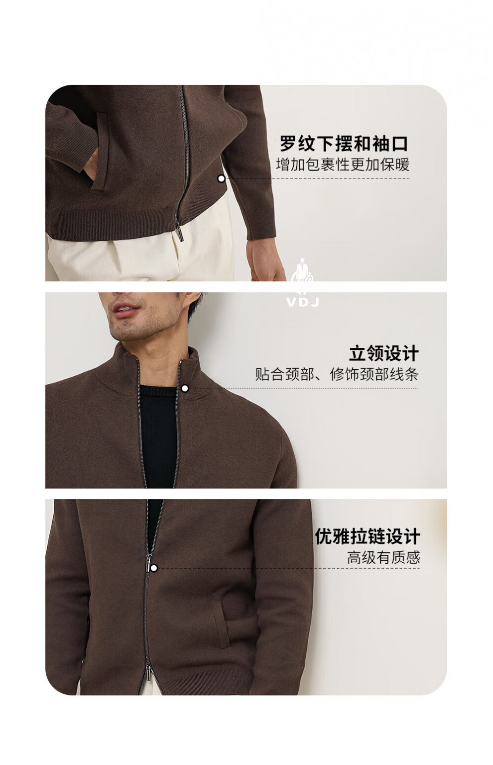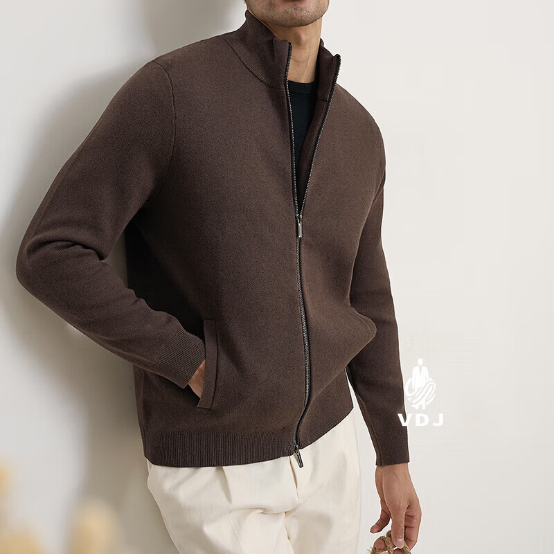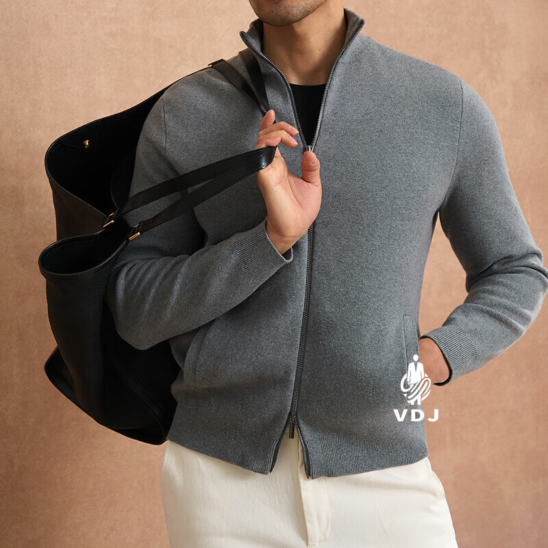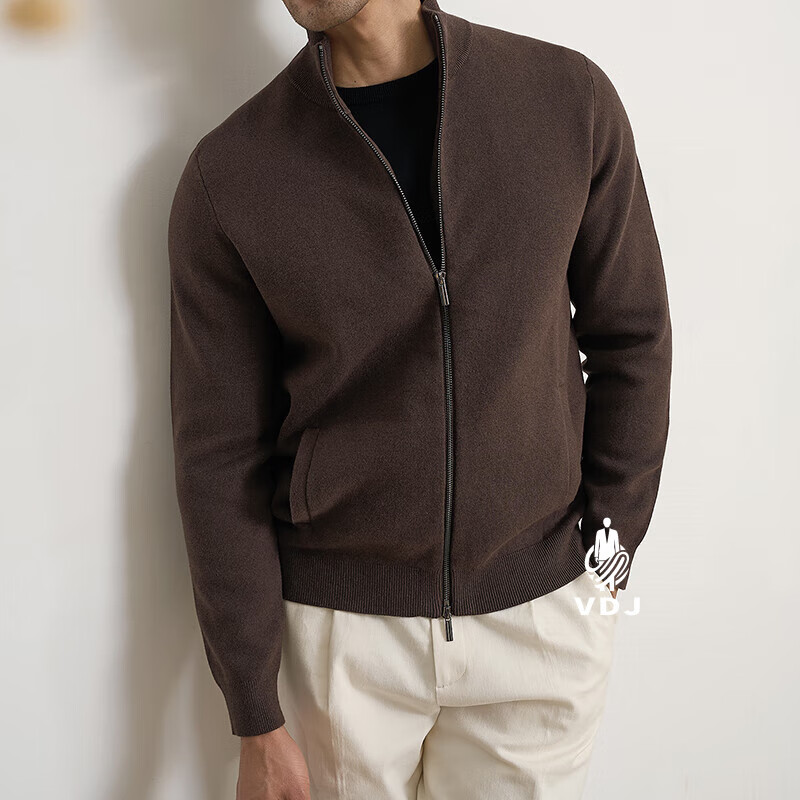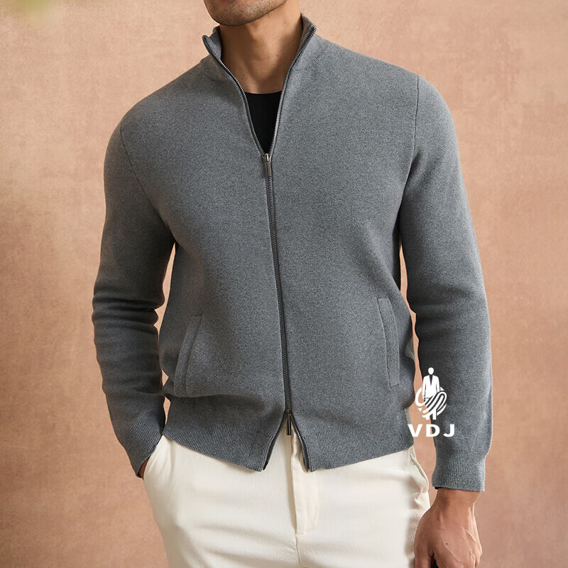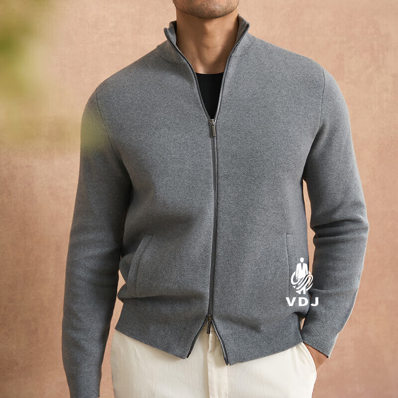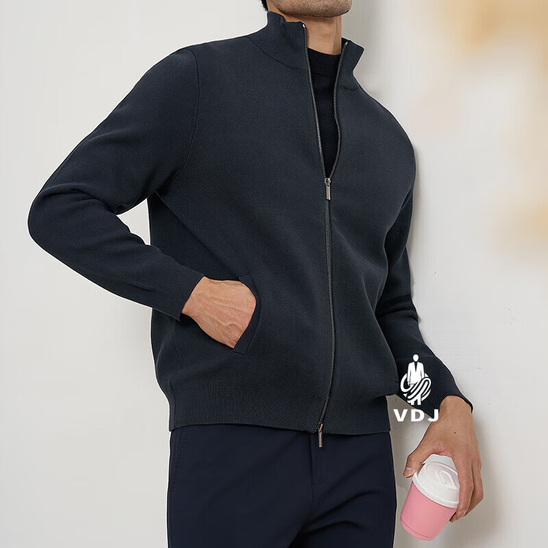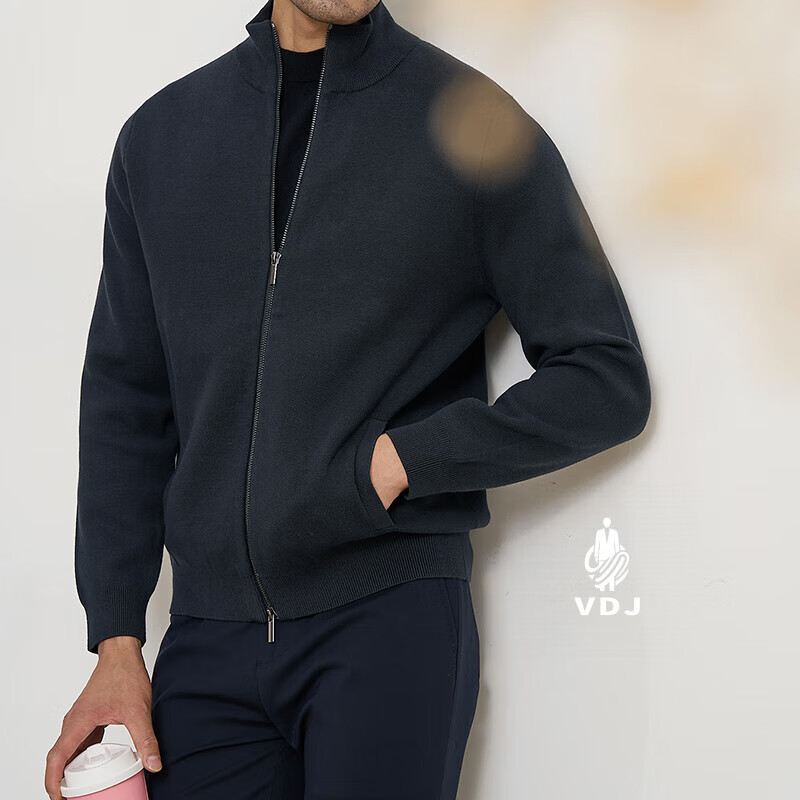 VDJ Brand Cashmere Jacket Men's Winter Jacket Stand Collar Versatile Casual Cardigan Anti-wrinkle Stretch Heavyweight Long Sleeve Black Thick Section-High-End Gift Box XL (180-China-CN-Height)