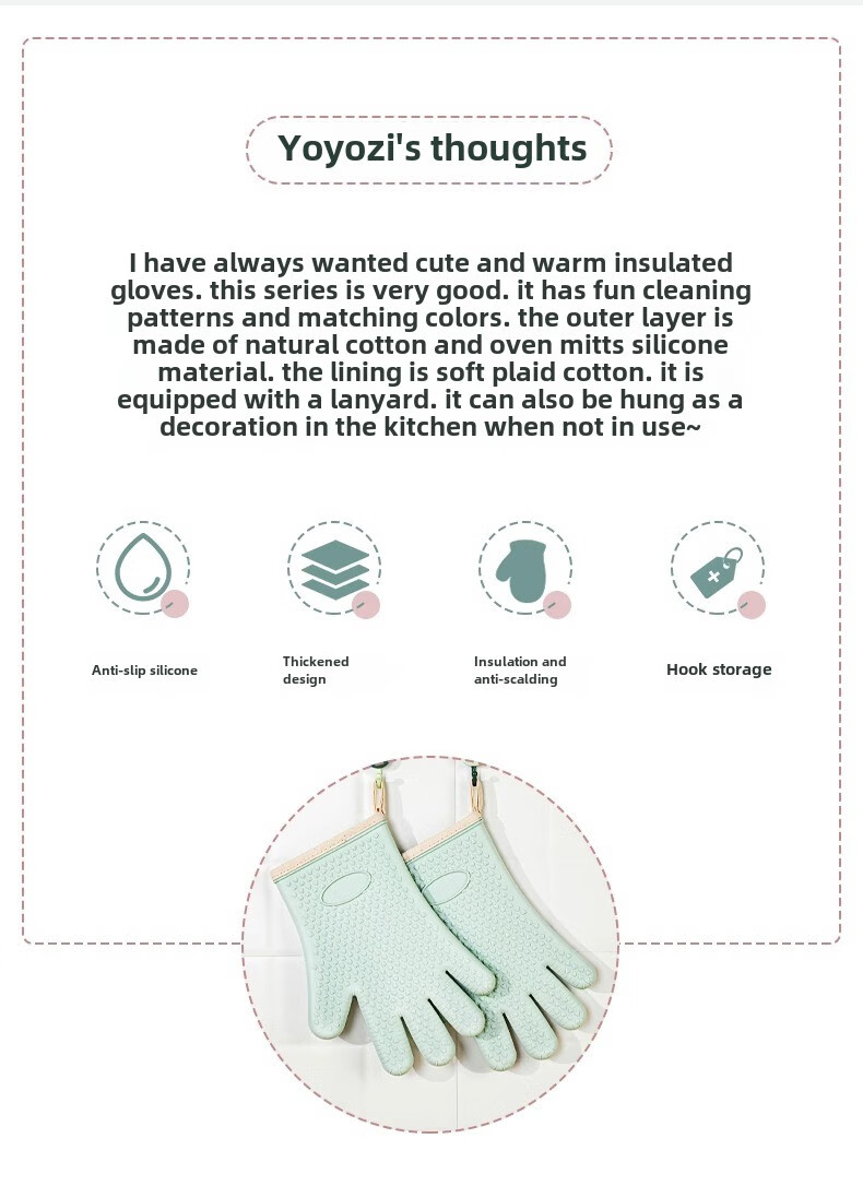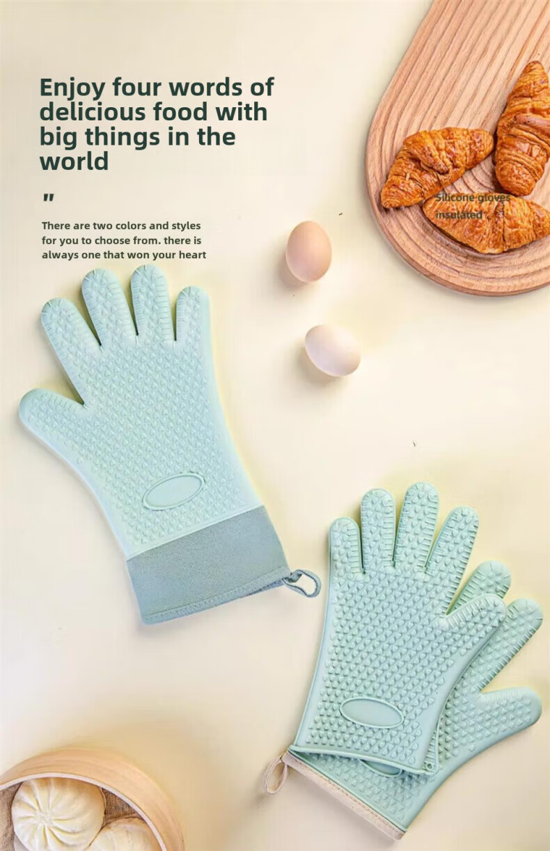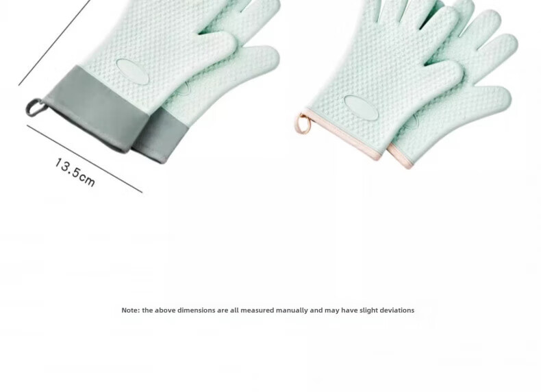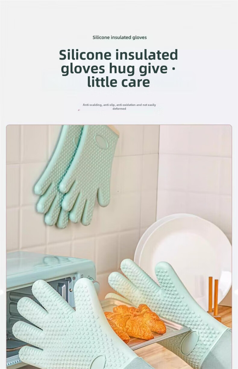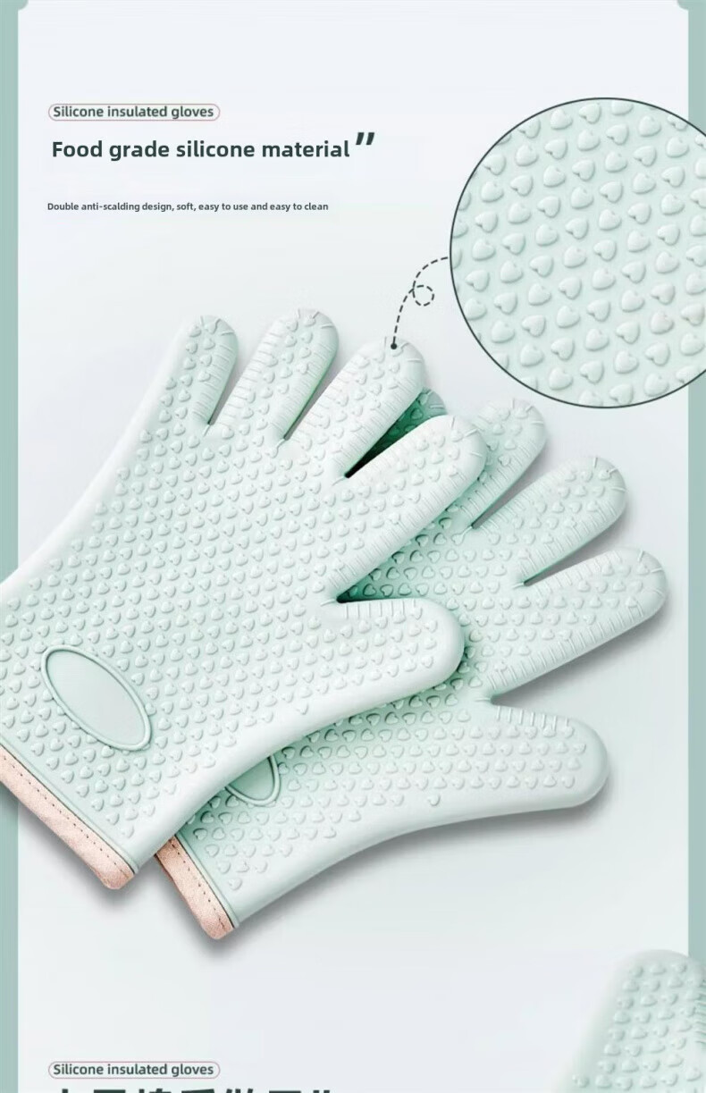 Skingcond insulation gloves anti-scalding gloves silicone kitchen oven baking high temperature resistant thickened microwave food grade anti-slip mint green anti-scalding gloves five fingers