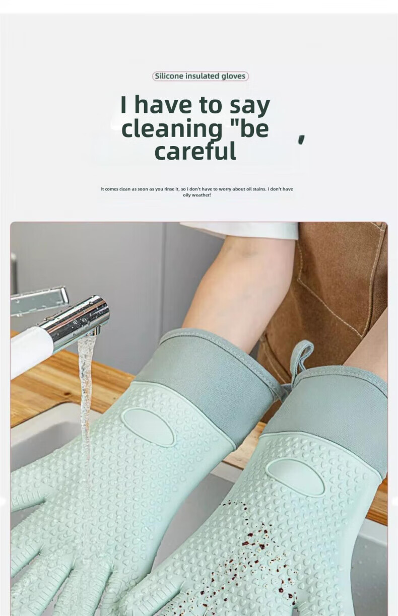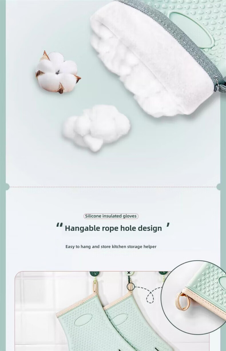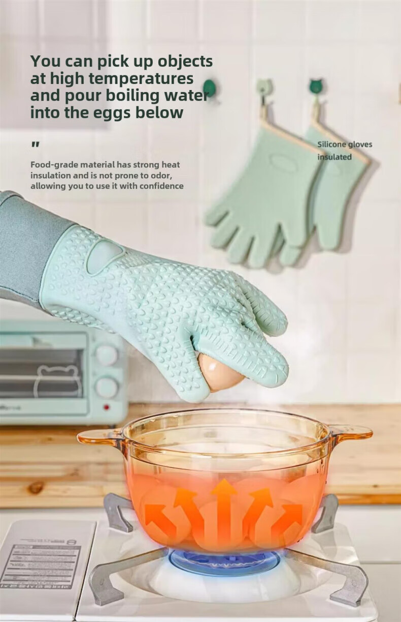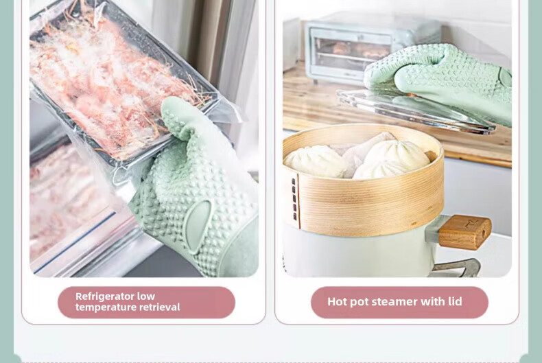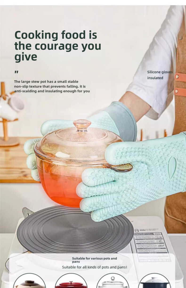 Skingcond insulation gloves anti-scalding gloves silicone kitchen oven baking high temperature resistant thickened microwave food grade anti-slip mint green anti-scalding gloves five fingers