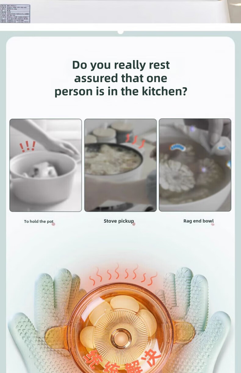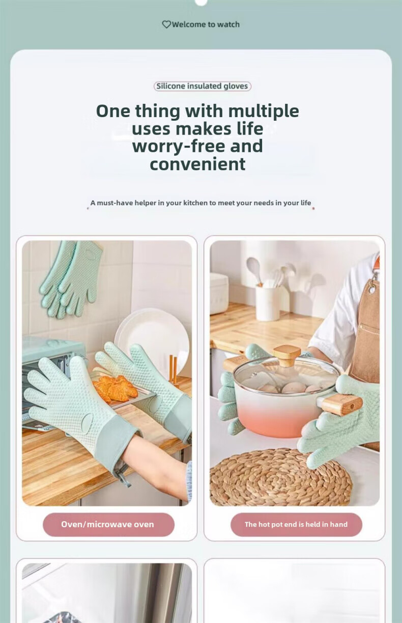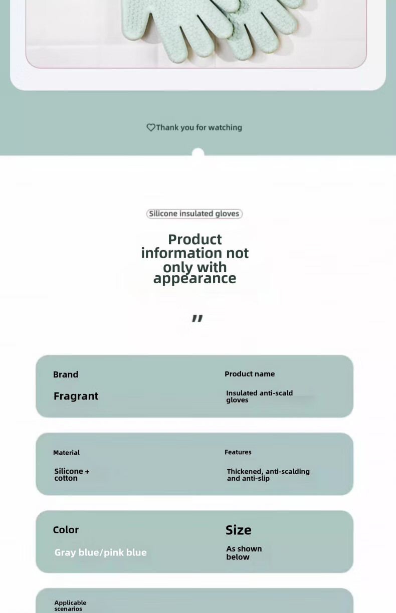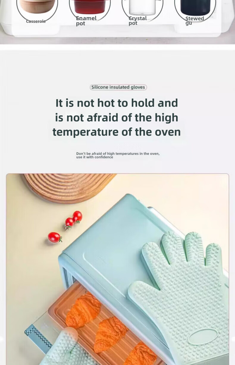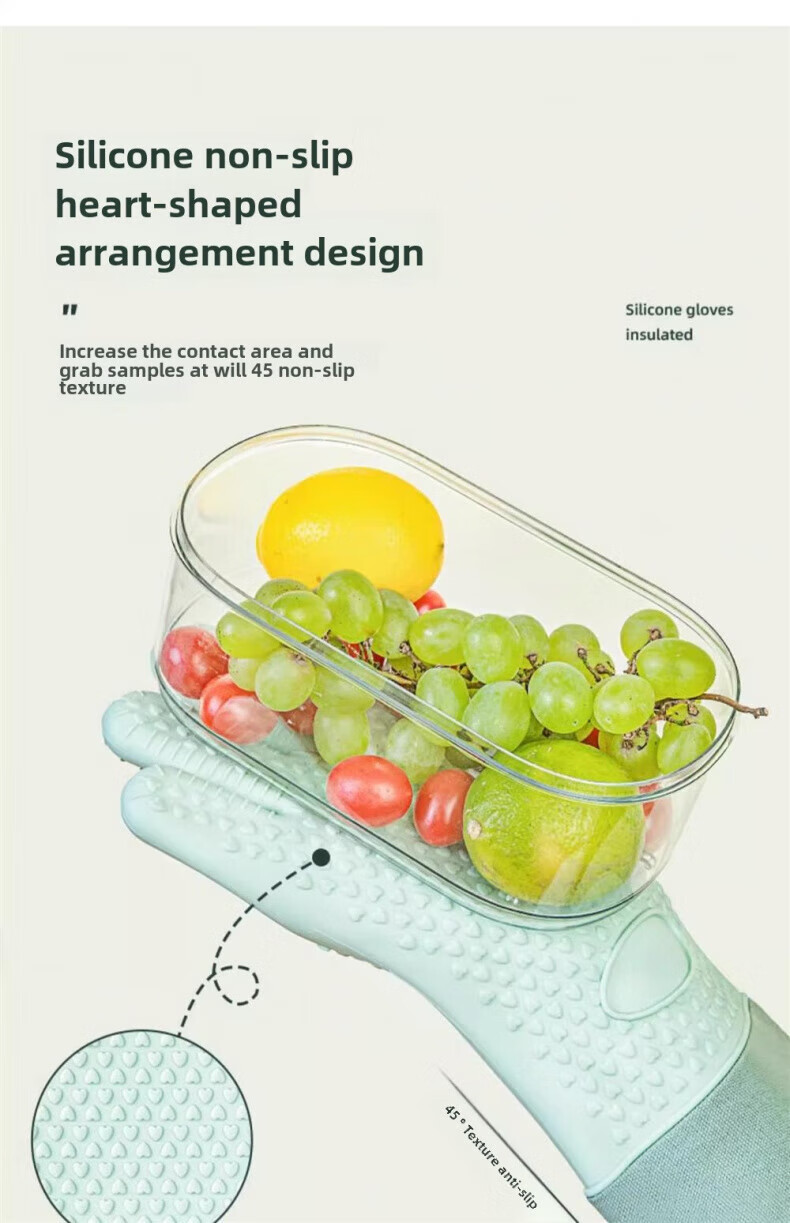 Skingcond insulation gloves anti-scalding gloves silicone kitchen oven baking high temperature resistant thickened microwave food grade anti-slip mint green anti-scalding gloves five fingers