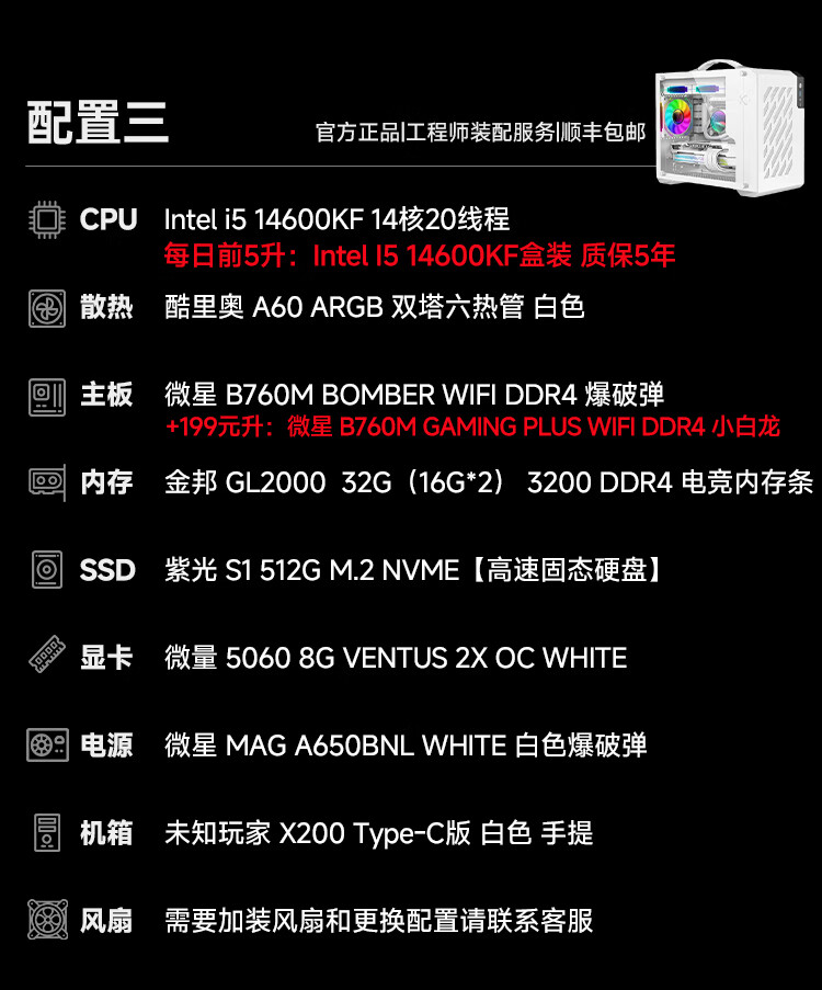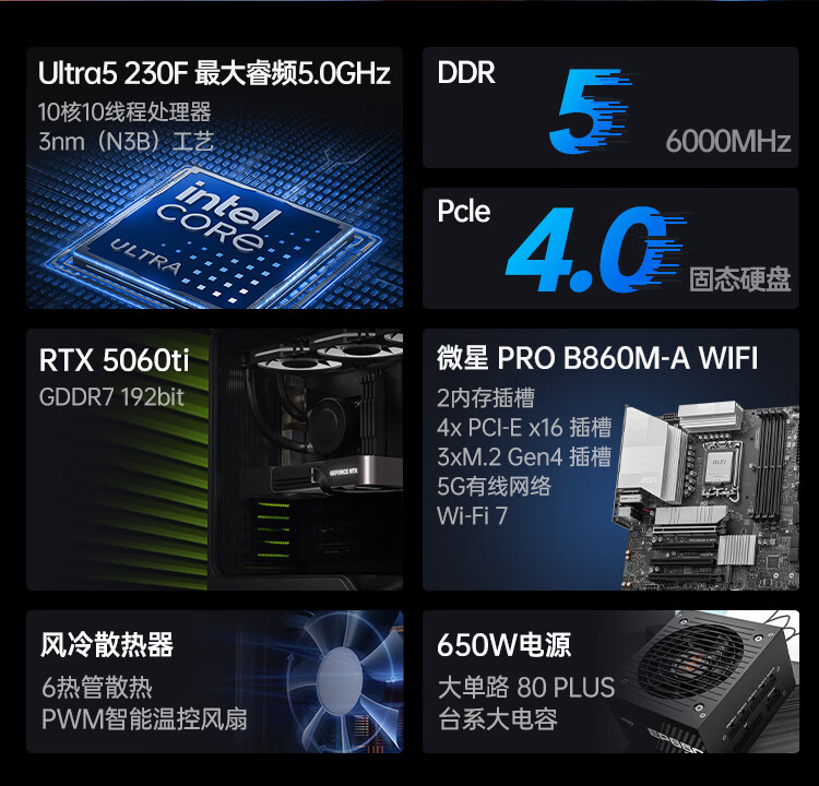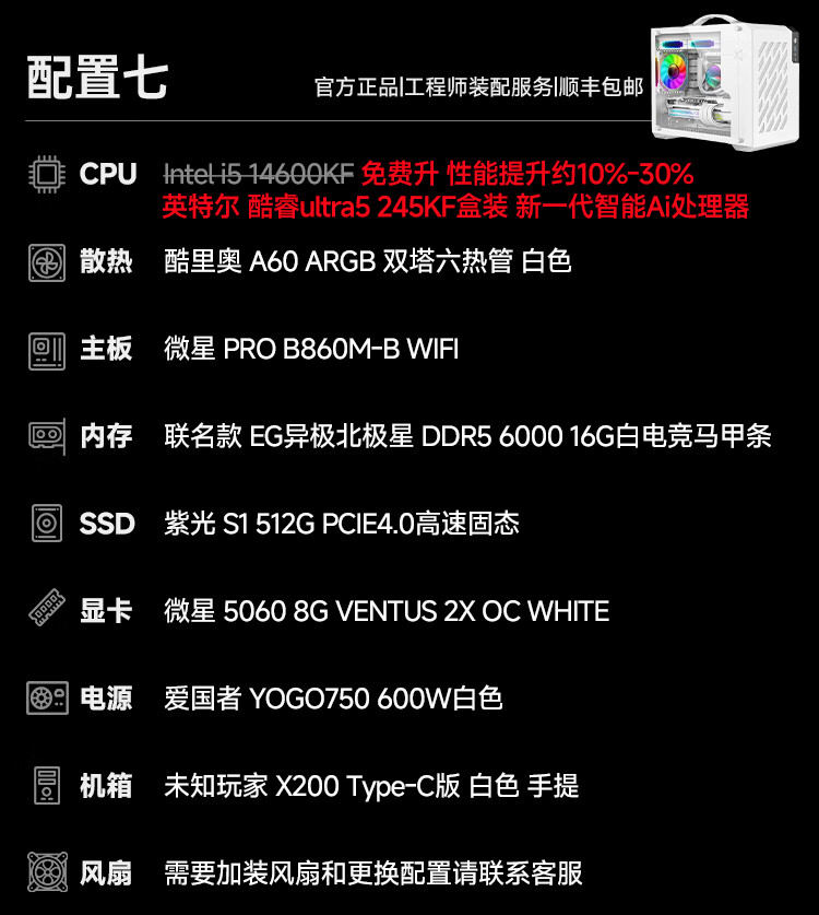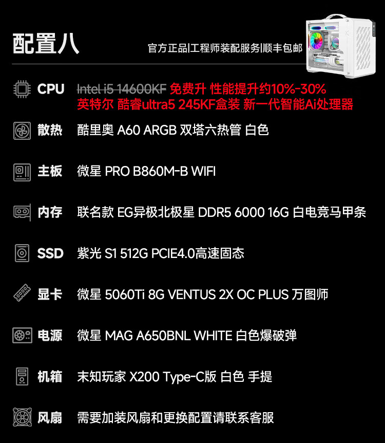 MSI Intel Core 14600KF ultra5 225F 245KF 5050/5060/5060Ti graphics card console game live broadcast portable ITX desktop assembly computer Core new generation U5 245KF|MSI 5060丨Configuration seven