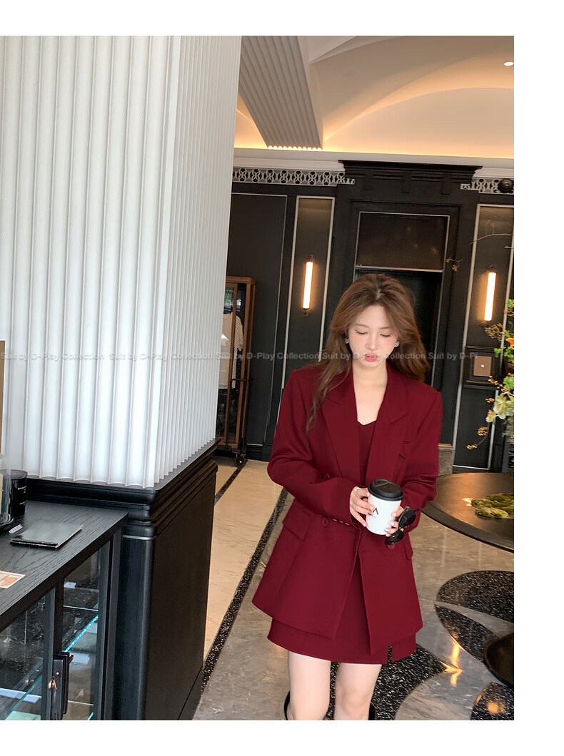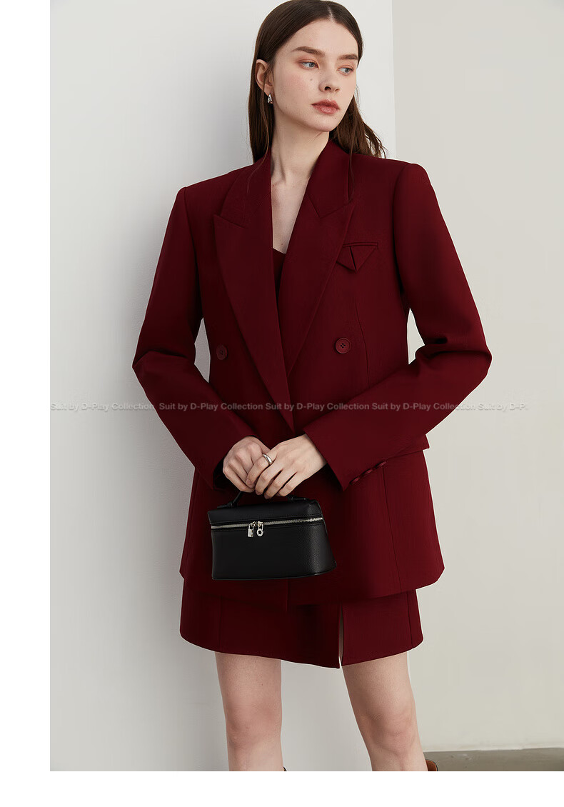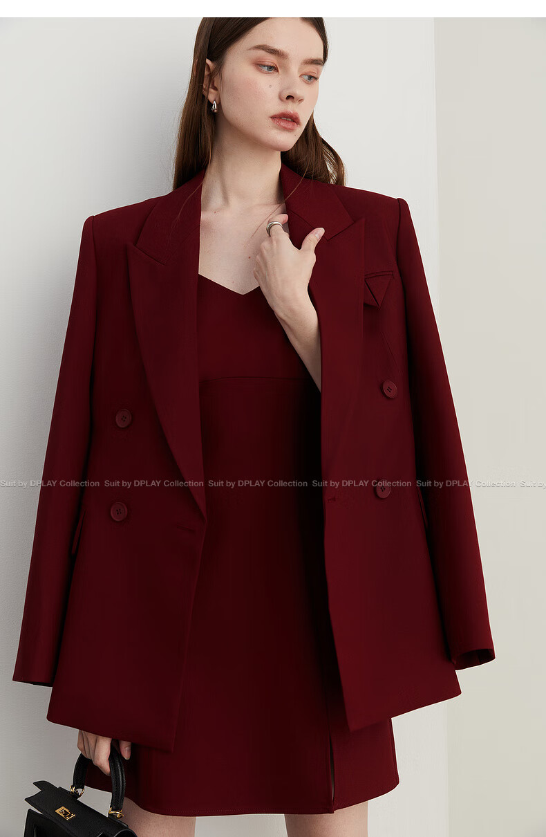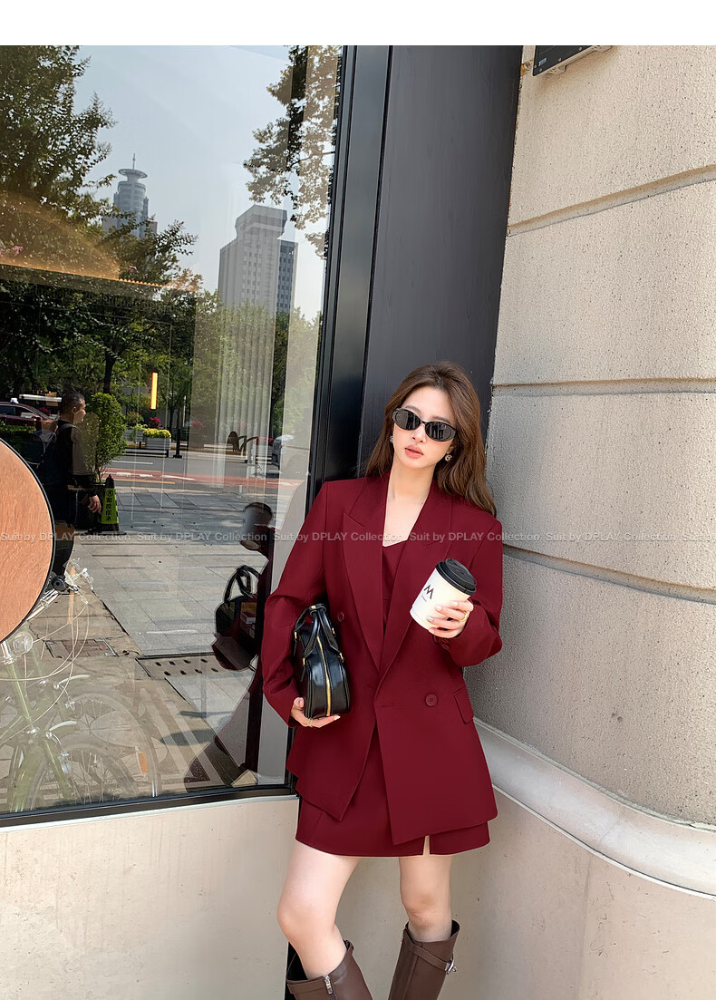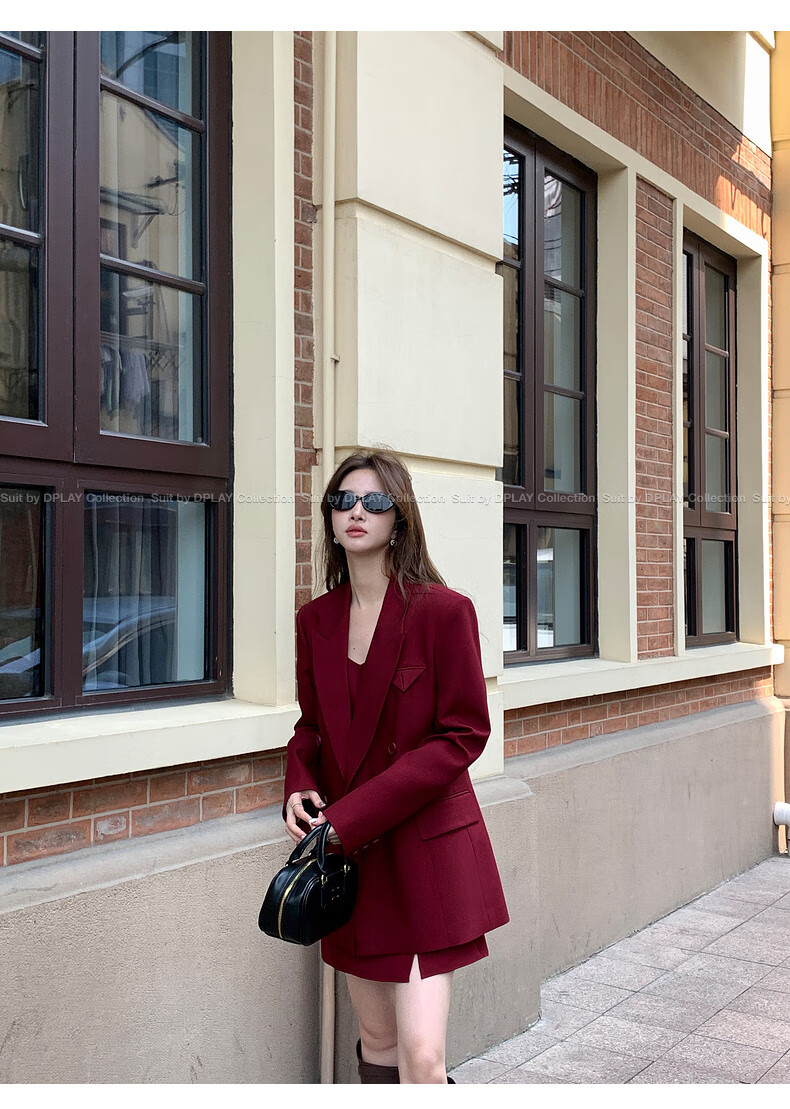 DPLAY 2025 Autumn New Red Minimalist Suit Feminine Fashion Casual Jacket Suit Suit Anchor Red-Suit M