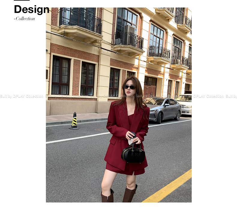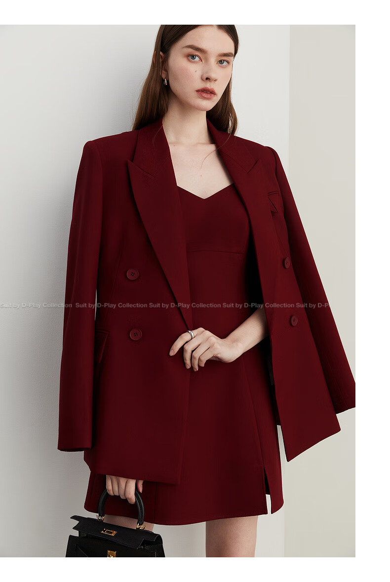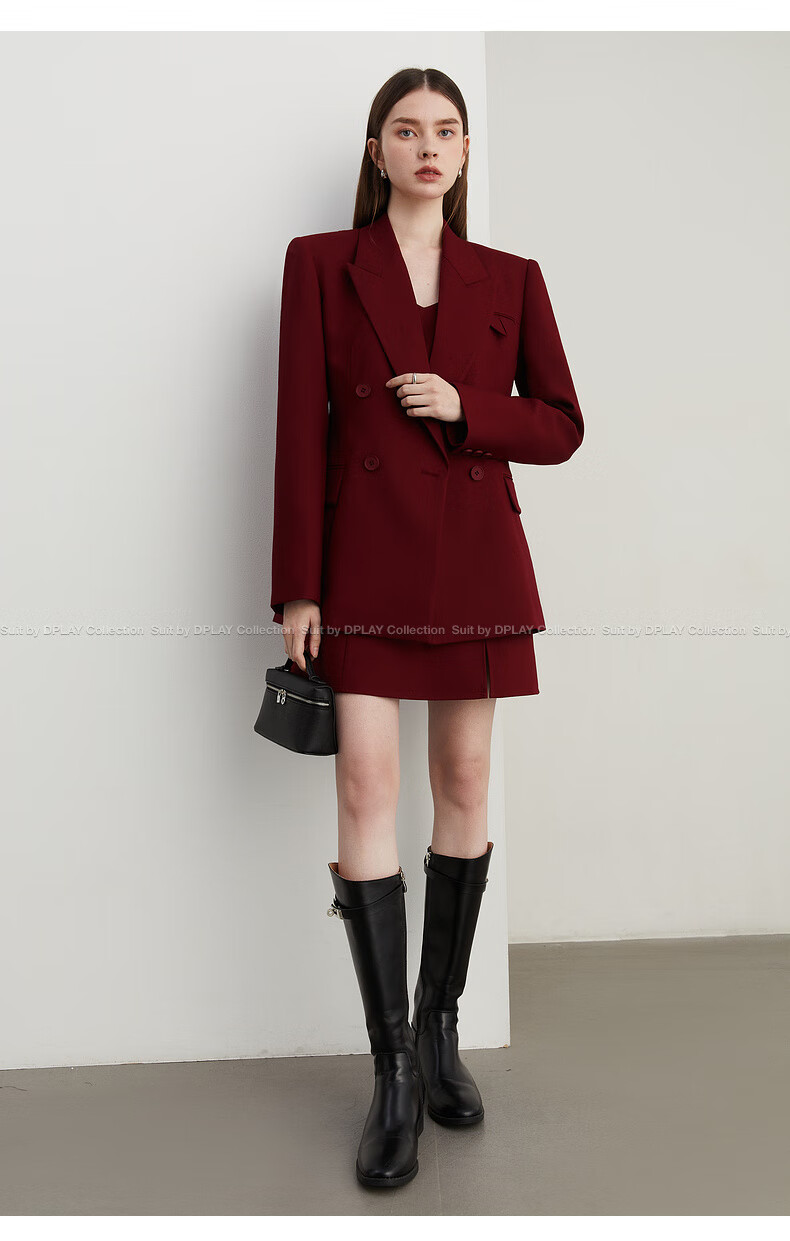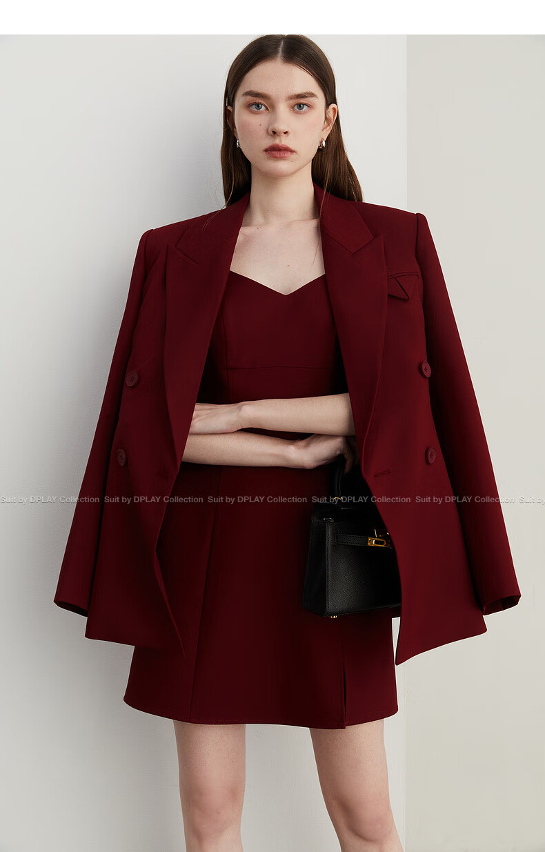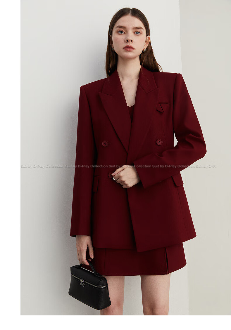 DPLAY 2025 Autumn New Red Minimalist Suit Feminine Fashion Casual Jacket Suit Suit Anchor Red-Suit M