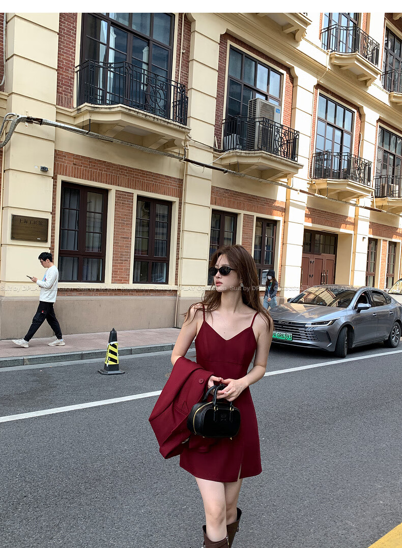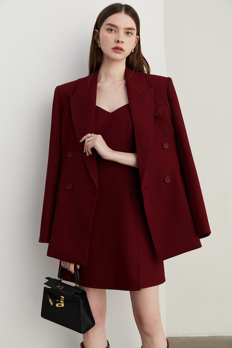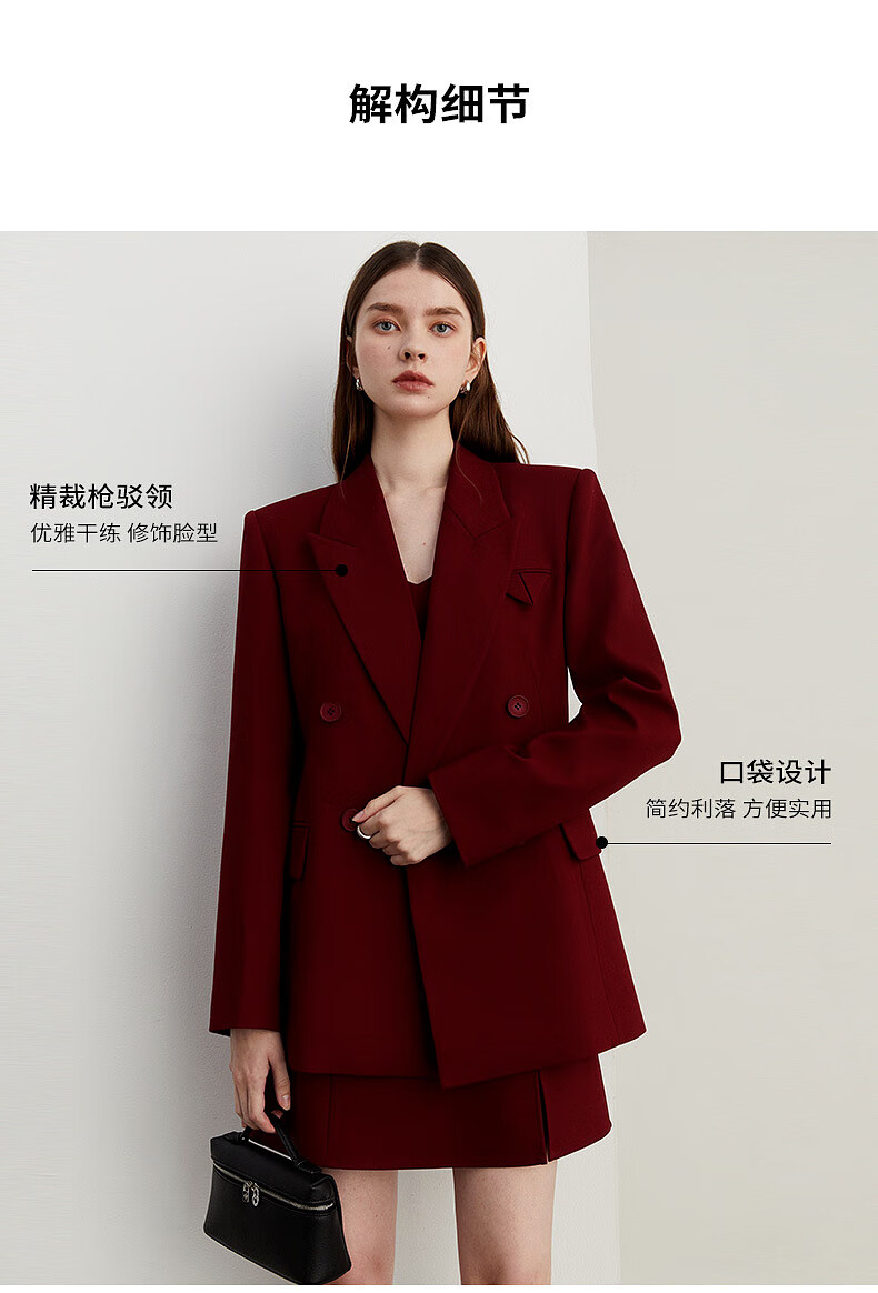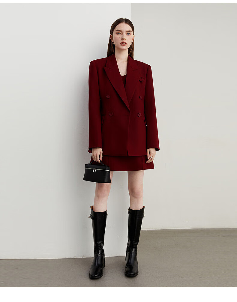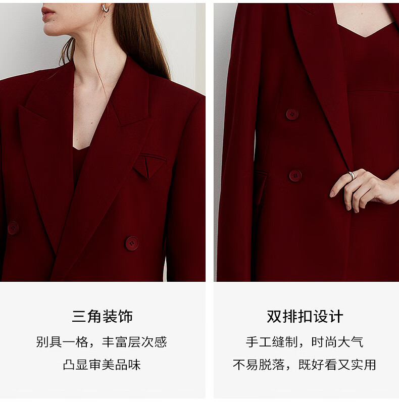 DPLAY 2025 Autumn New Red Minimalist Suit Feminine Fashion Casual Jacket Suit Suit Anchor Red-Suit M