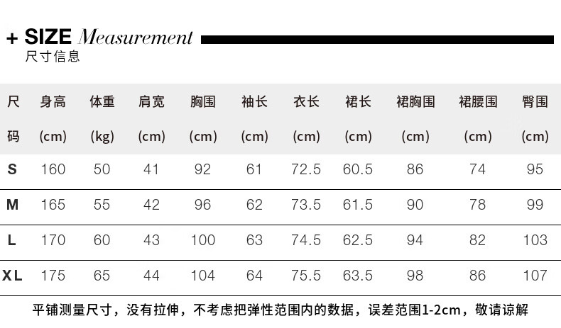 China (cm) 160-165/84-86 165-170 / 88-90 167-172 / 92-96 168-173 / 98-102 170-176 / 106-110