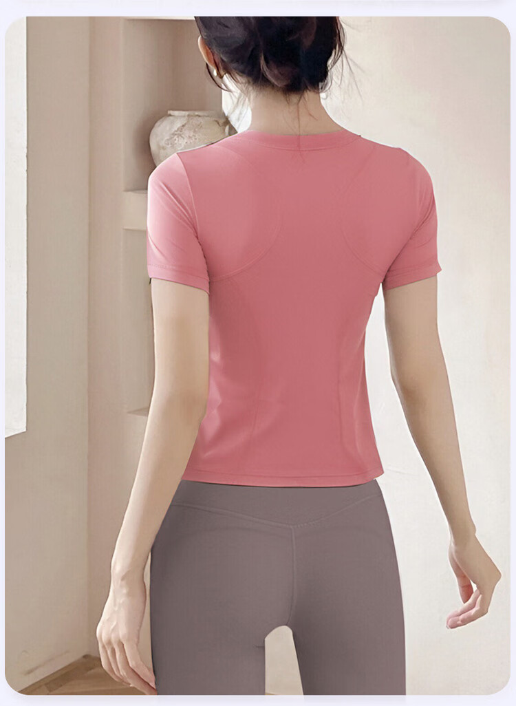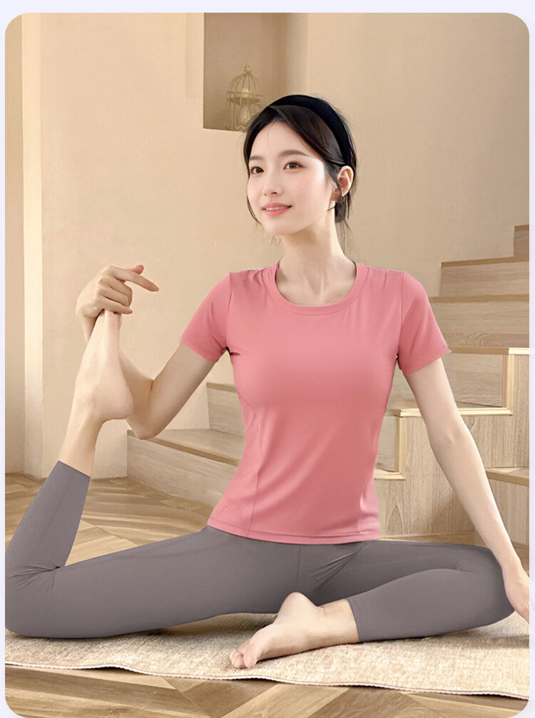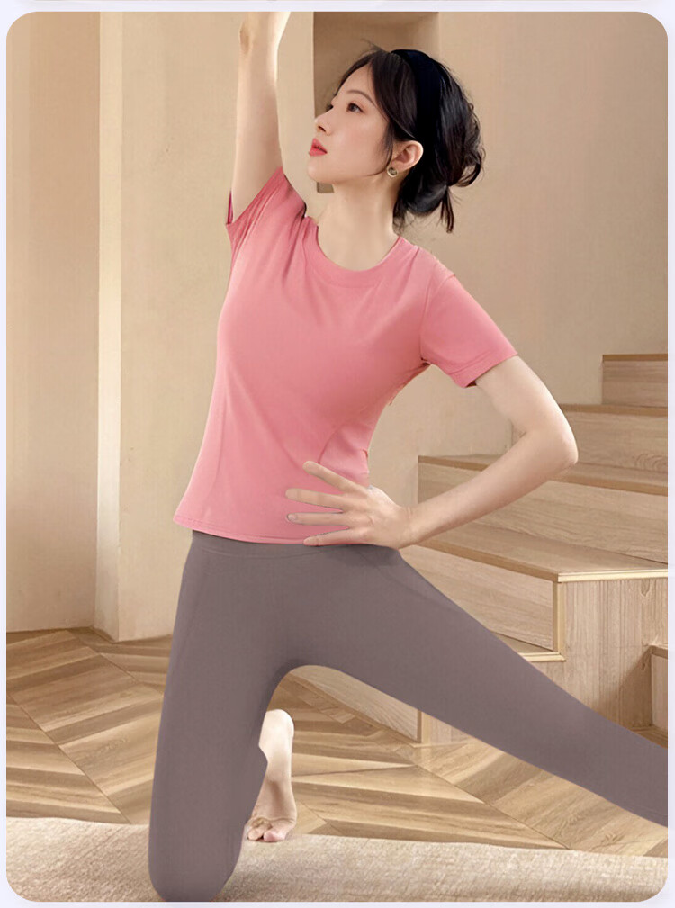 Shuangxiu yoga wear T-shirt for women 2025 new large size belly-covering short-sleeved Pilates training sports suit fitness top withered rose pink top_with chest pad L_110-120Jin Jin equals 0.5 kg