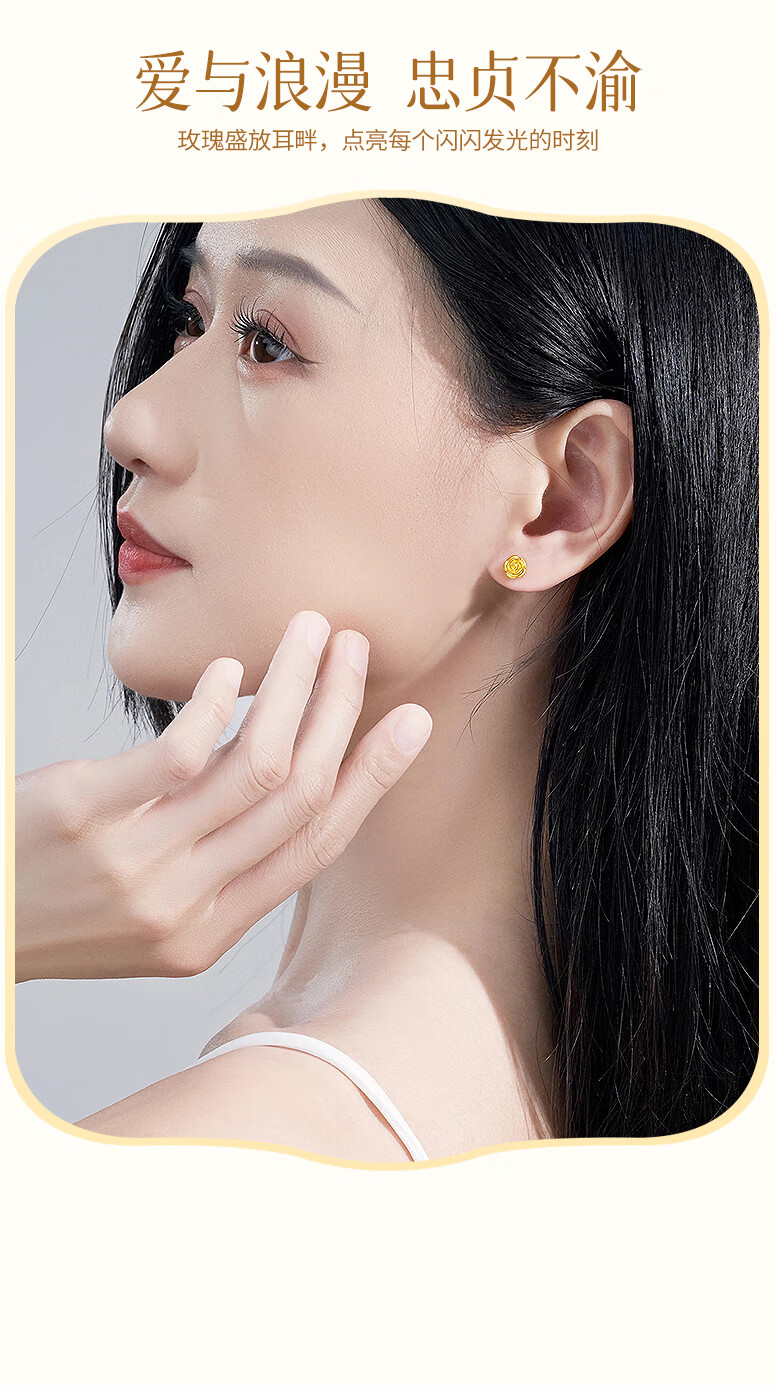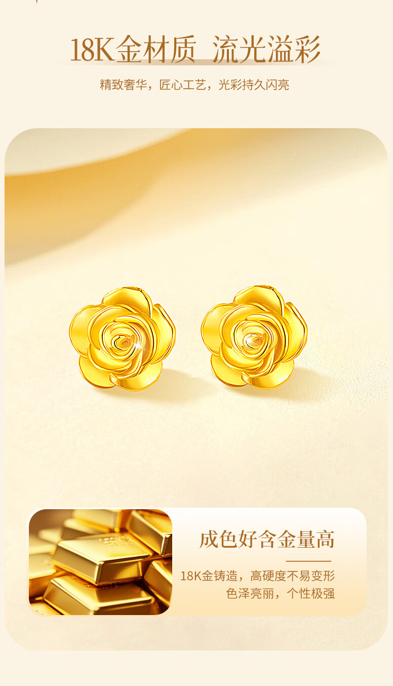 China Gold True Love Rose 18K Gold Stud Earrings for Women Straight Pin Type Ear Hole Earrings Birthday Gift for Girlfriend Wedding Anniversary 18k Rose Stud Earrings