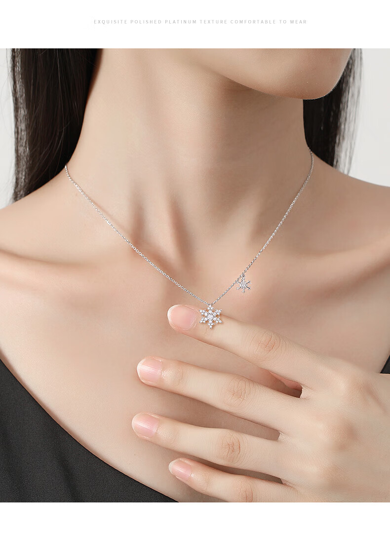 Aido Diamond pt950 platinum snowflake necklace for women, fashionable platinum inlaid moissanite chain set, light luxury gift, platinum snowflake necklace (inlaid with moissanite)