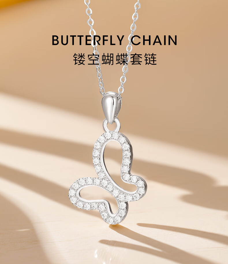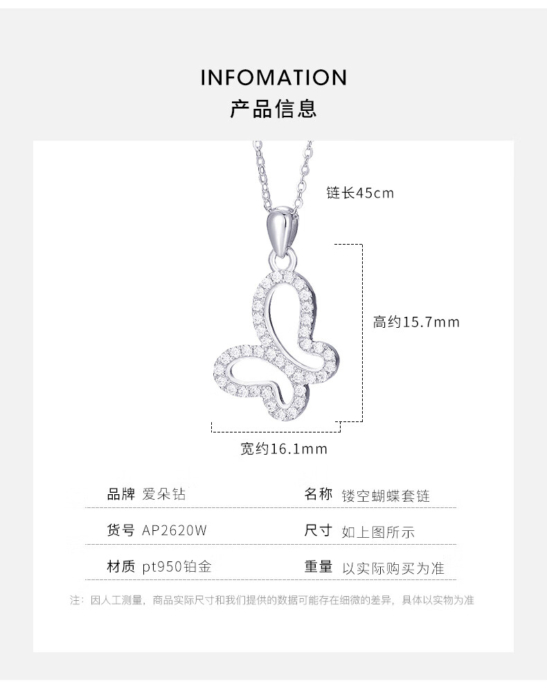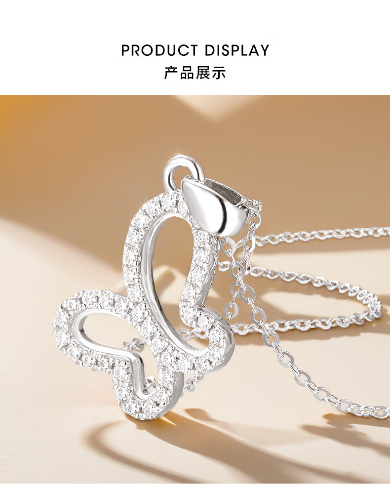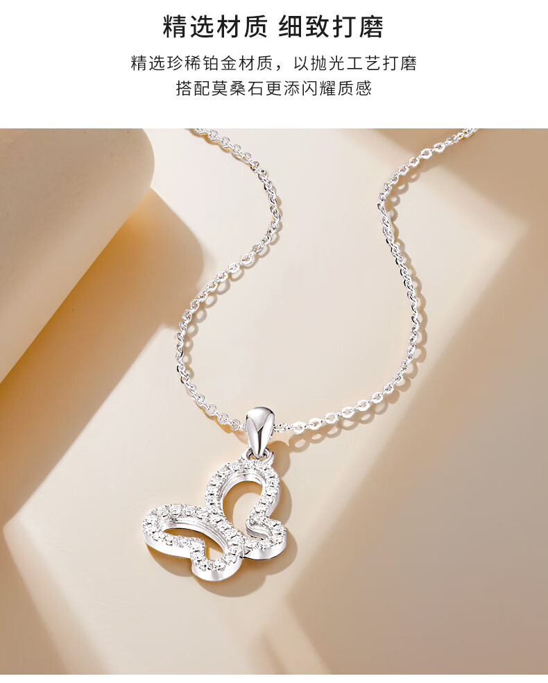 Aido Diamond pt950 Platinum Butterfly Necklace for Women Fashion Light Luxury Platinum Moissanite Diamond Chain Set Gift for Wife Platinum Butterfly Moissanite Diamond Necklace + Rose Gift Box