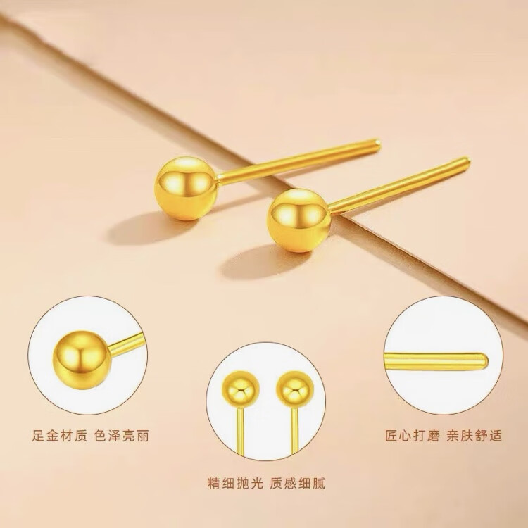 Gold Bean Earrings for Women Pure Gold 999 Pure Gold Earrings Small Gold Bean Ear Hole Earrings for Girlfriend’s Birthday Gift Hook Style + Delivery Gift Box + National Inspection Certificate 4mm Glossy Pair (999 Pure Gold Special Price)