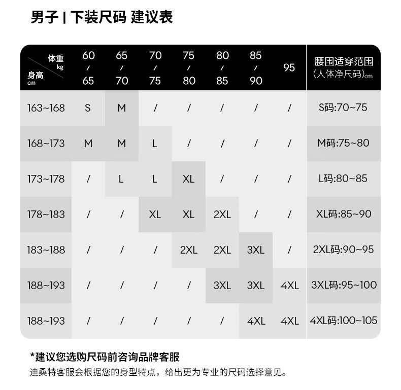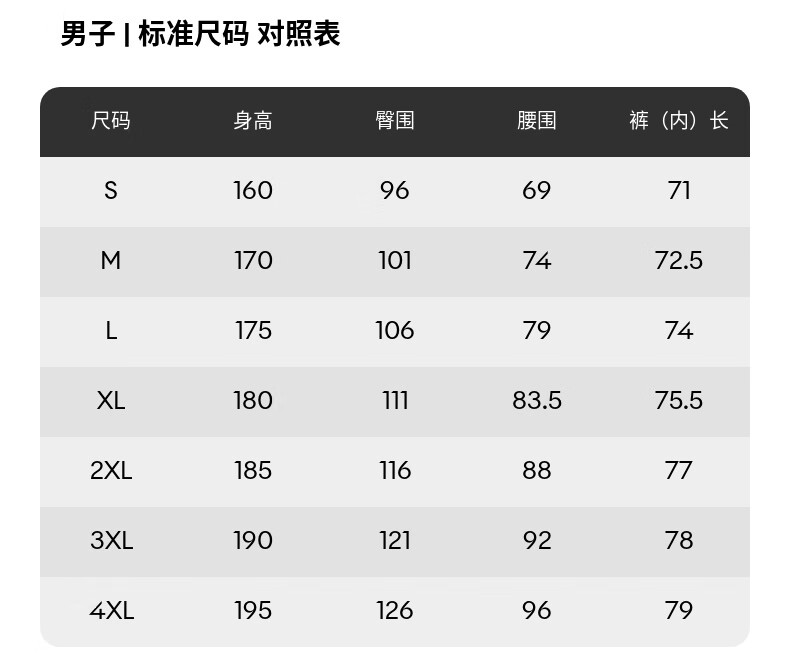China (cm) 160-165/84-86 165-170 / 88-90 167-172 / 92-96 168-173 / 98-102 170-176 / 106-110