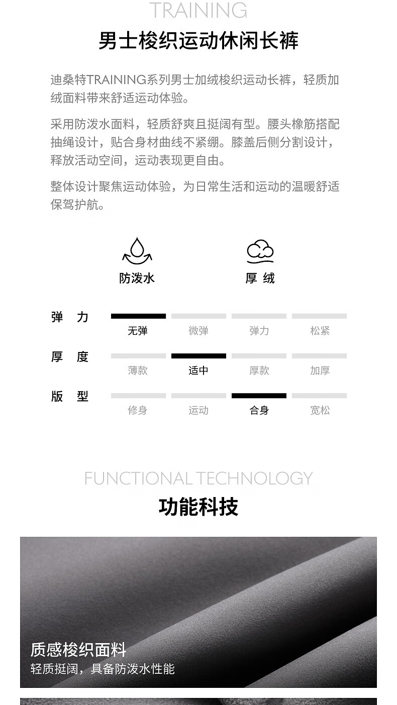 DESCENTE DESCENTE TRAINING series comprehensive training sports and fitness men's water-repellent woven sports trousers BK-black L (175/84A)